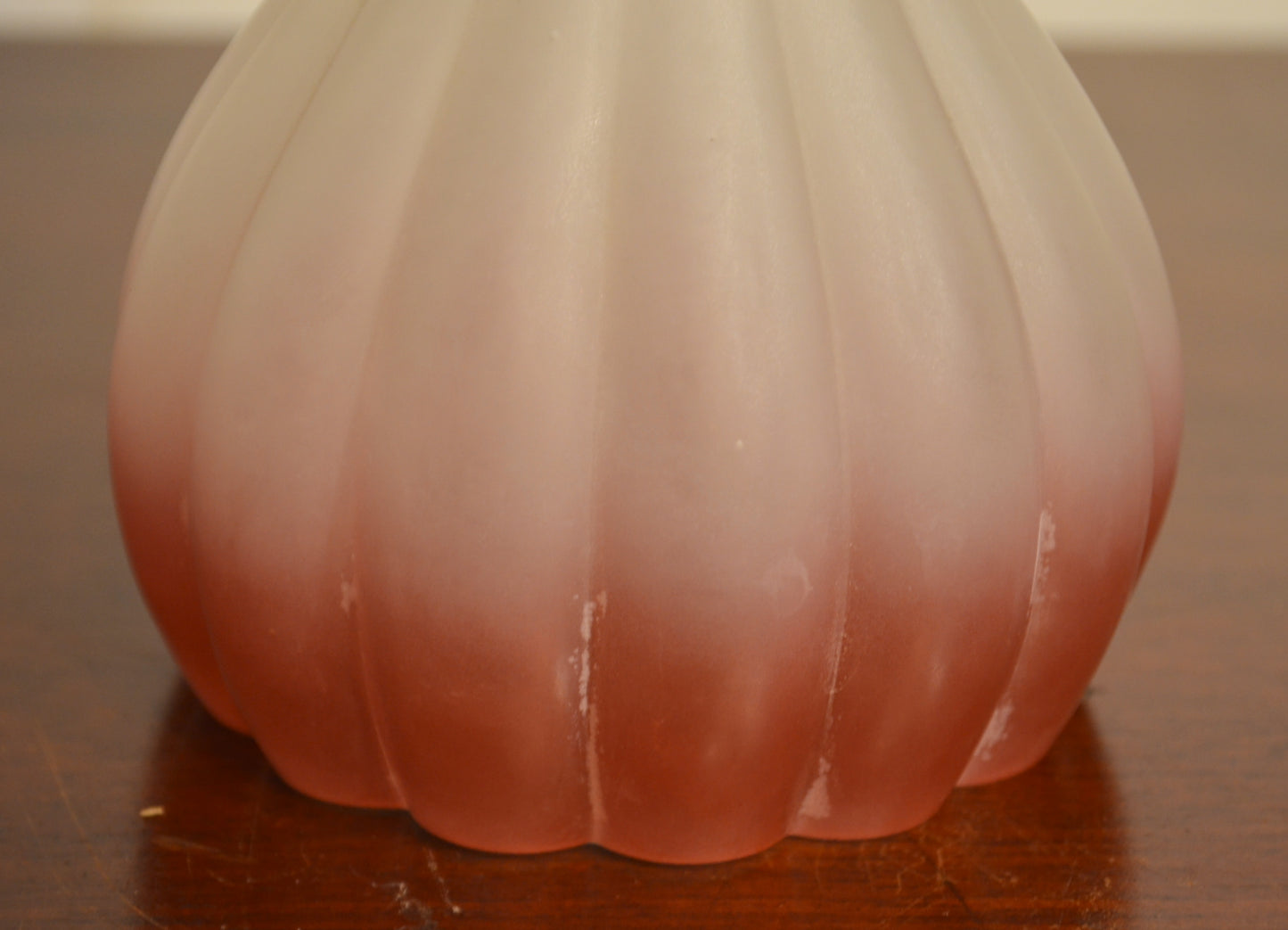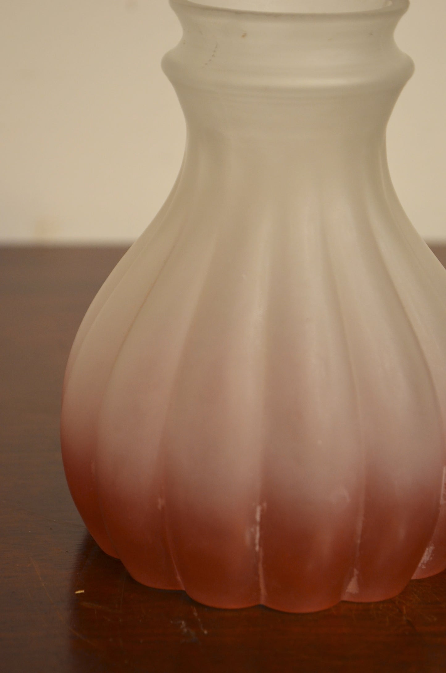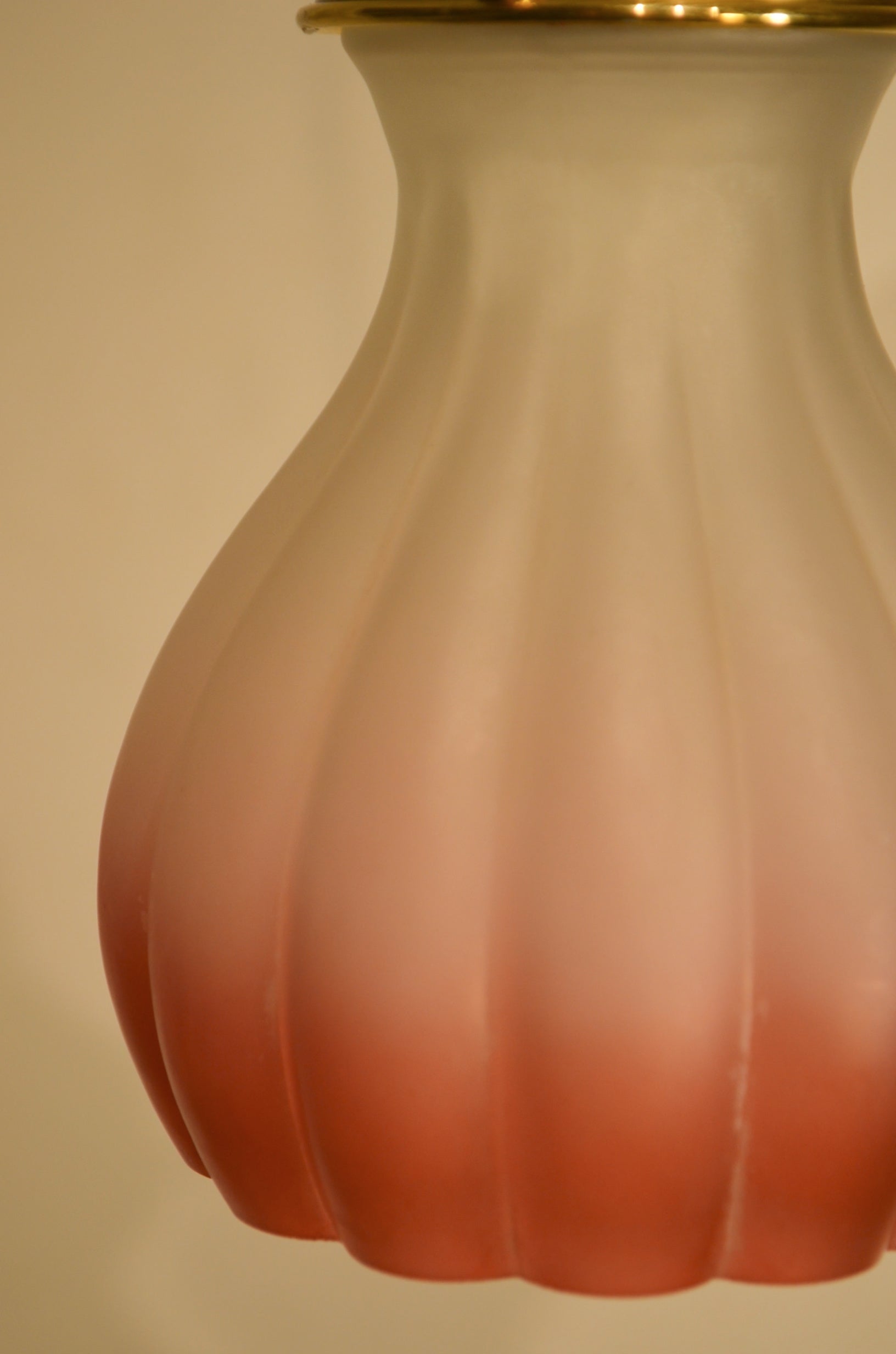 A vintage glass pendant light/lamp shade with bulbous form in frosted design with cranberry fade. Priced each and for the glass pendant only but if you would like bulb holder and gallery please send me a message to discuss.