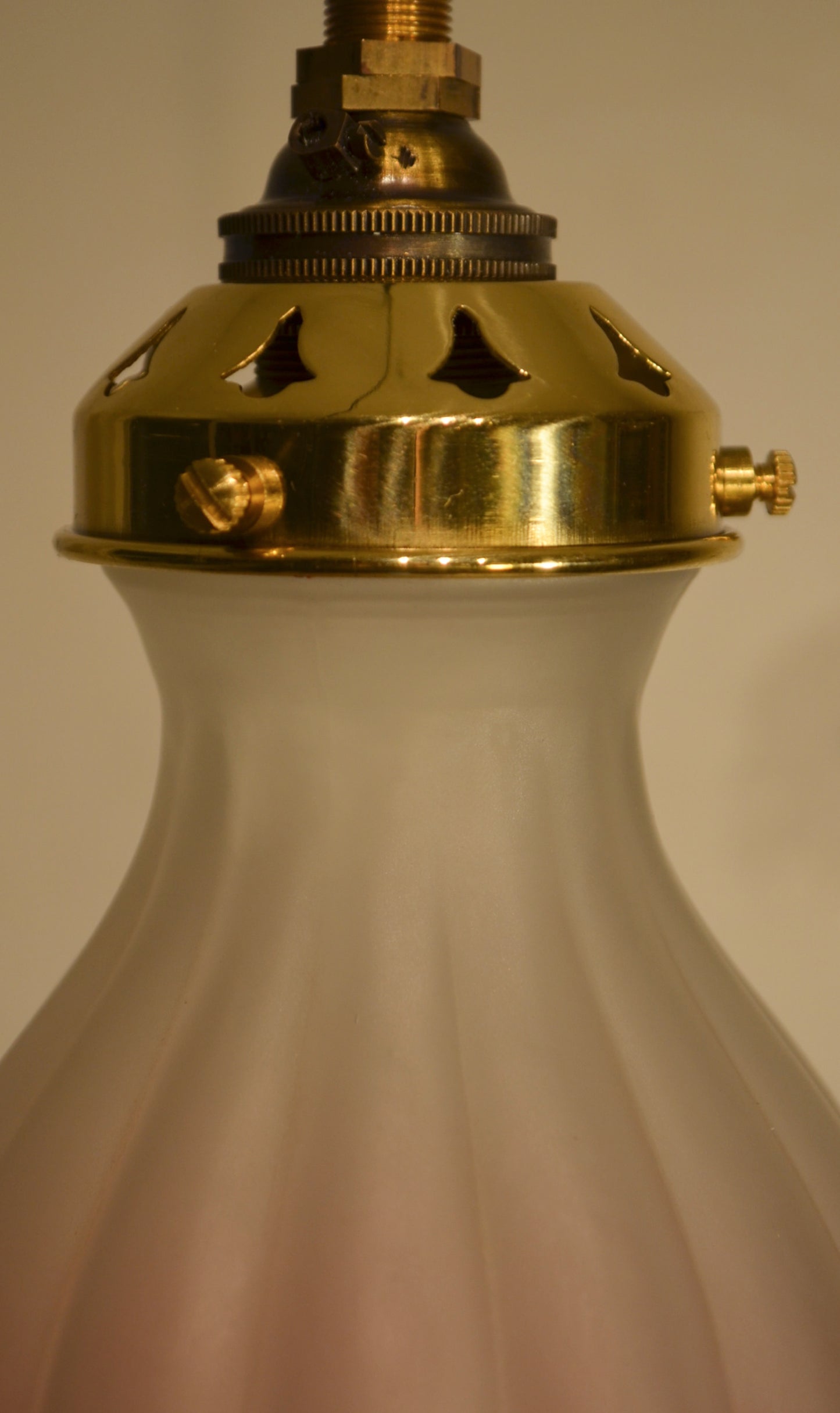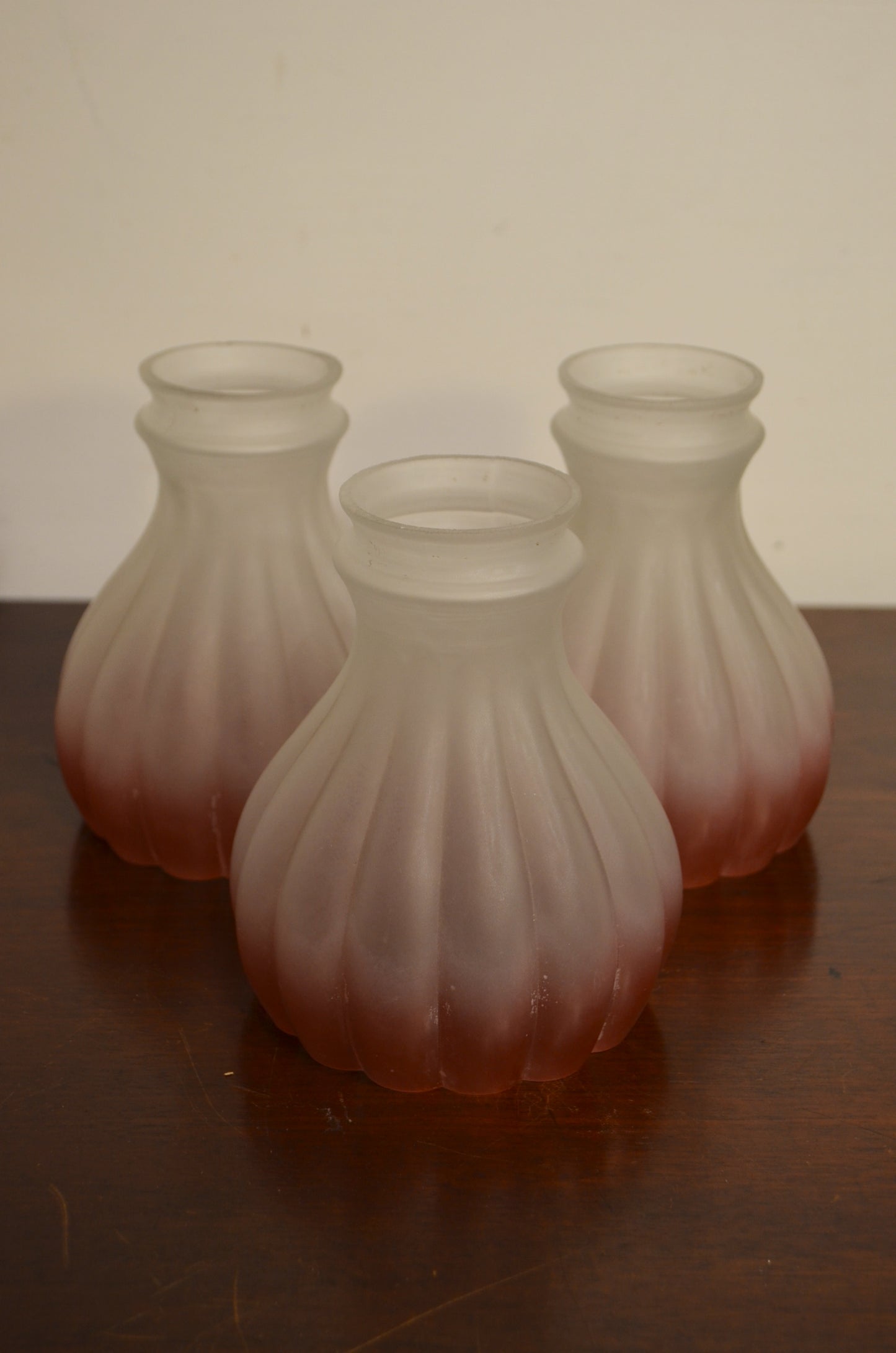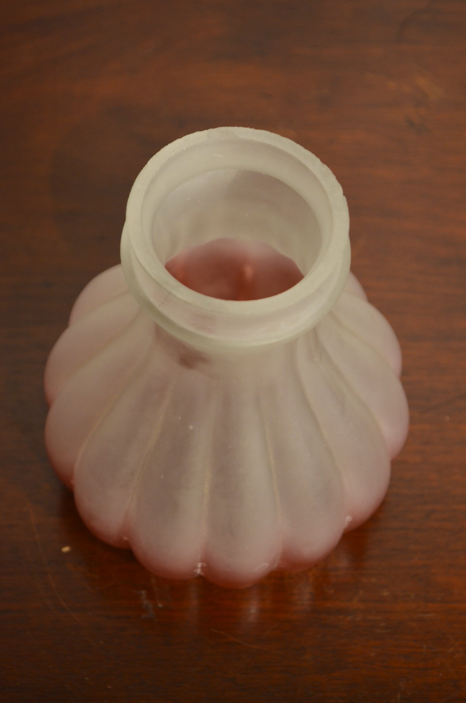 A vintage glass pendant light/lamp shade with bulbous form in frosted design with cranberry fade. Priced each and for the glass pendant only but if you would like bulb holder and gallery please send me a message to discuss.