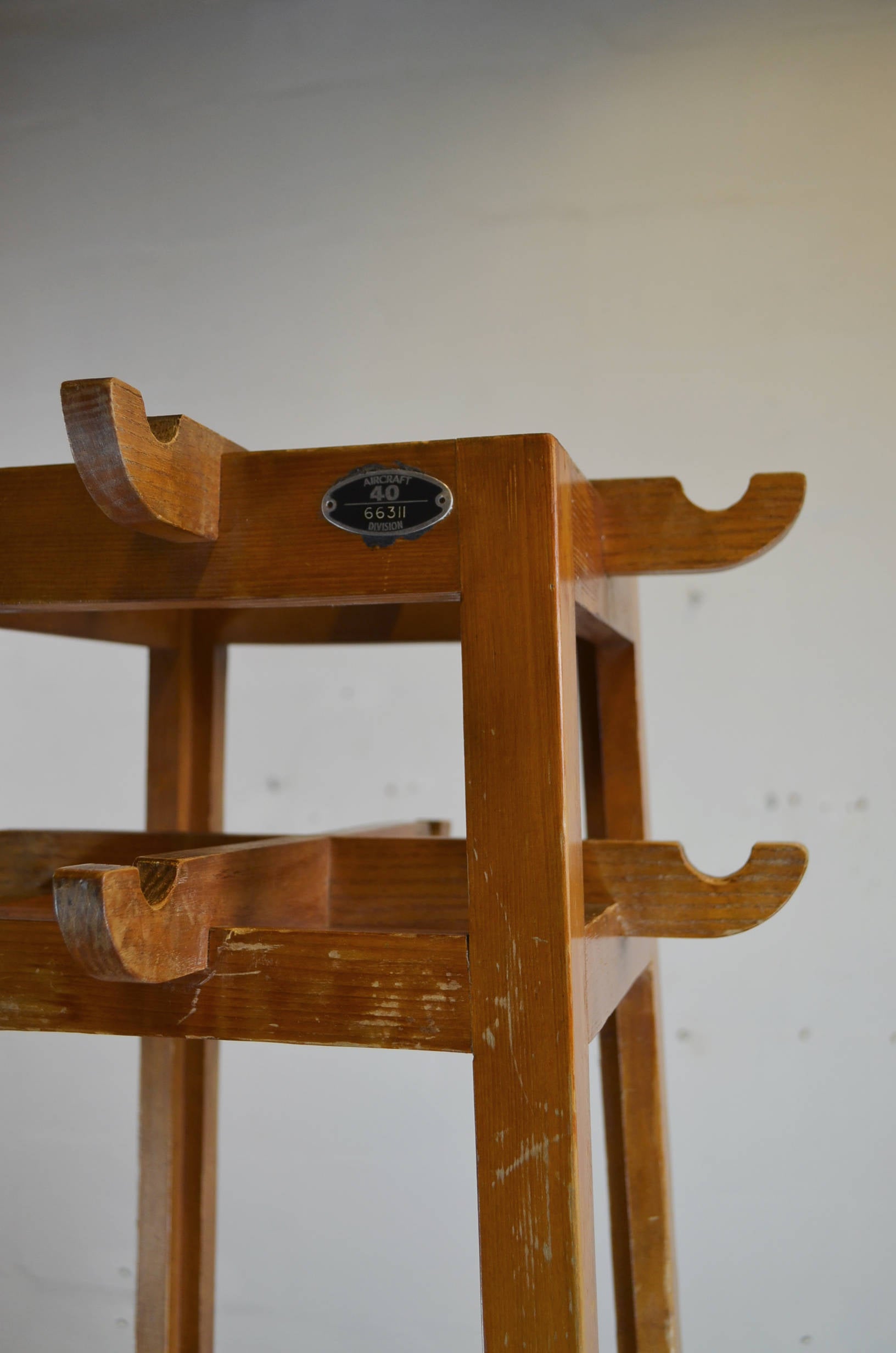A 1940's retro vintage stained beech hall/coat stand with a metal drip plate/tray to the bottom and cross section to the middle for umbrellas.