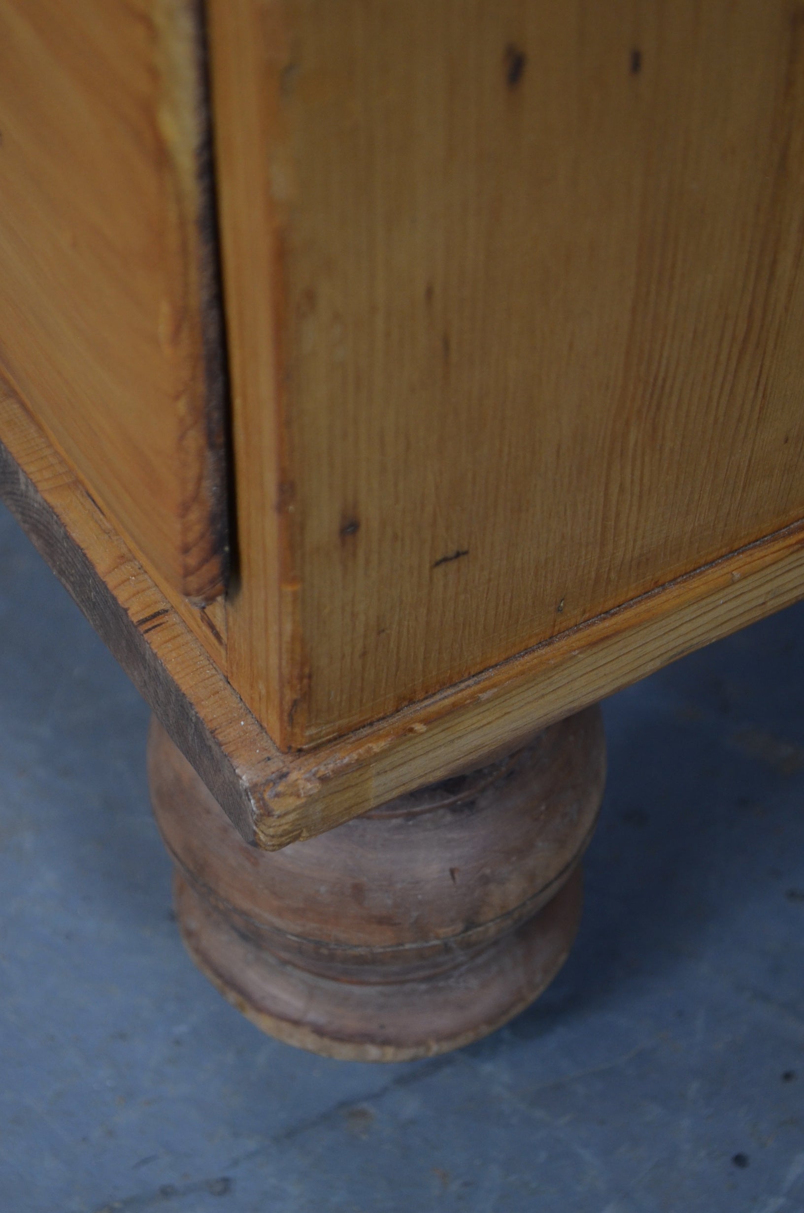 A late 19th century Victorian pine chest of drawers. Two short and two long drawers all with original handles, on bun feet. A genuine rustic feel and look to it which shows the history.