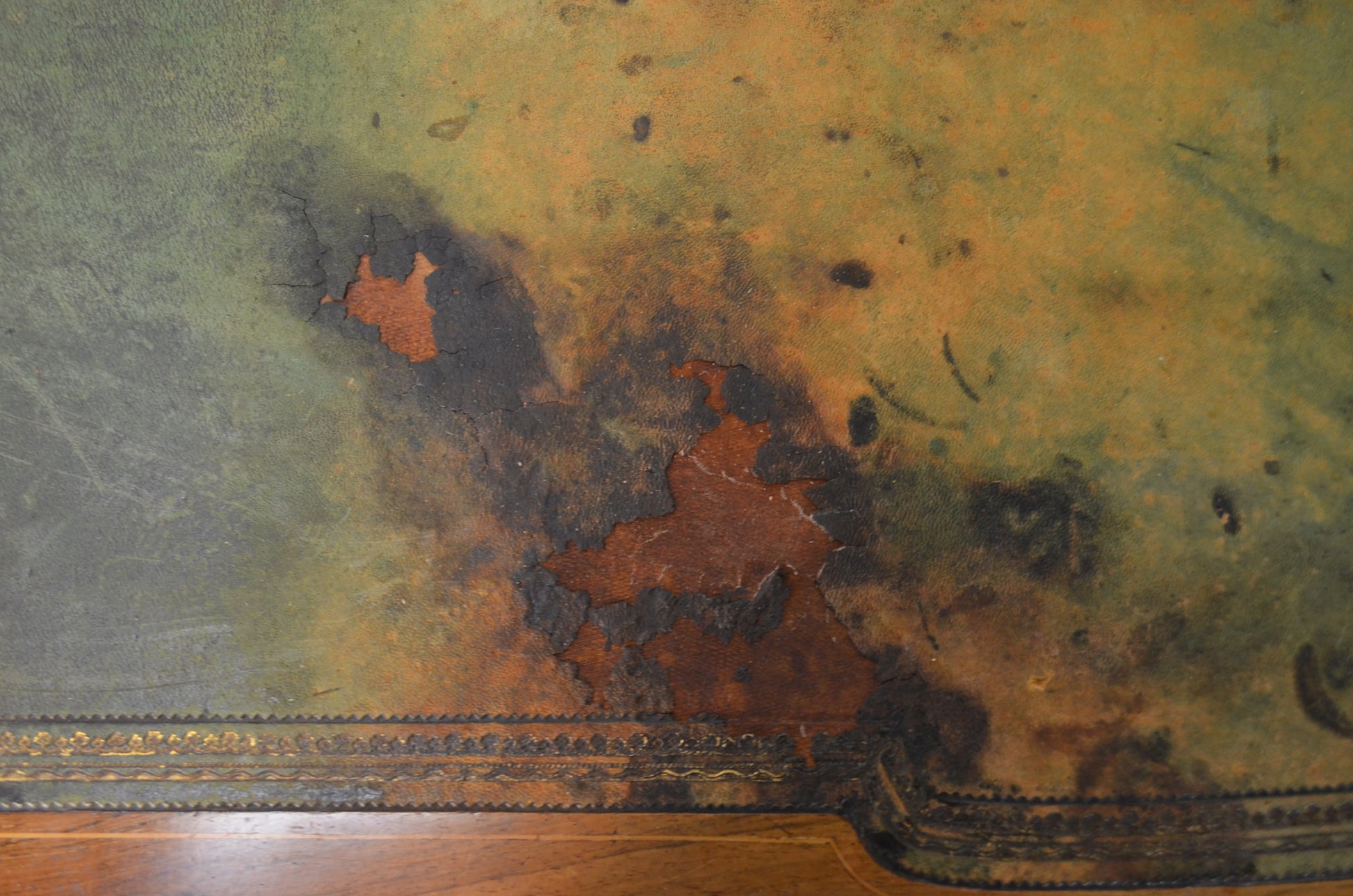 In great antique condition with the exception of the leather top which is stained and and has loses/damage. Personally the wear to the leather makes the desk but it might not be for everyone so it can be replaced at cost please message for details.