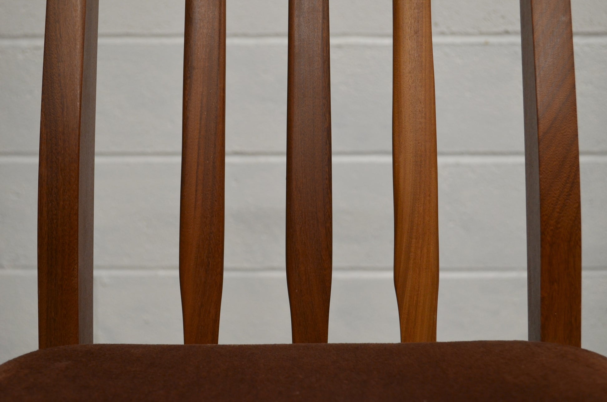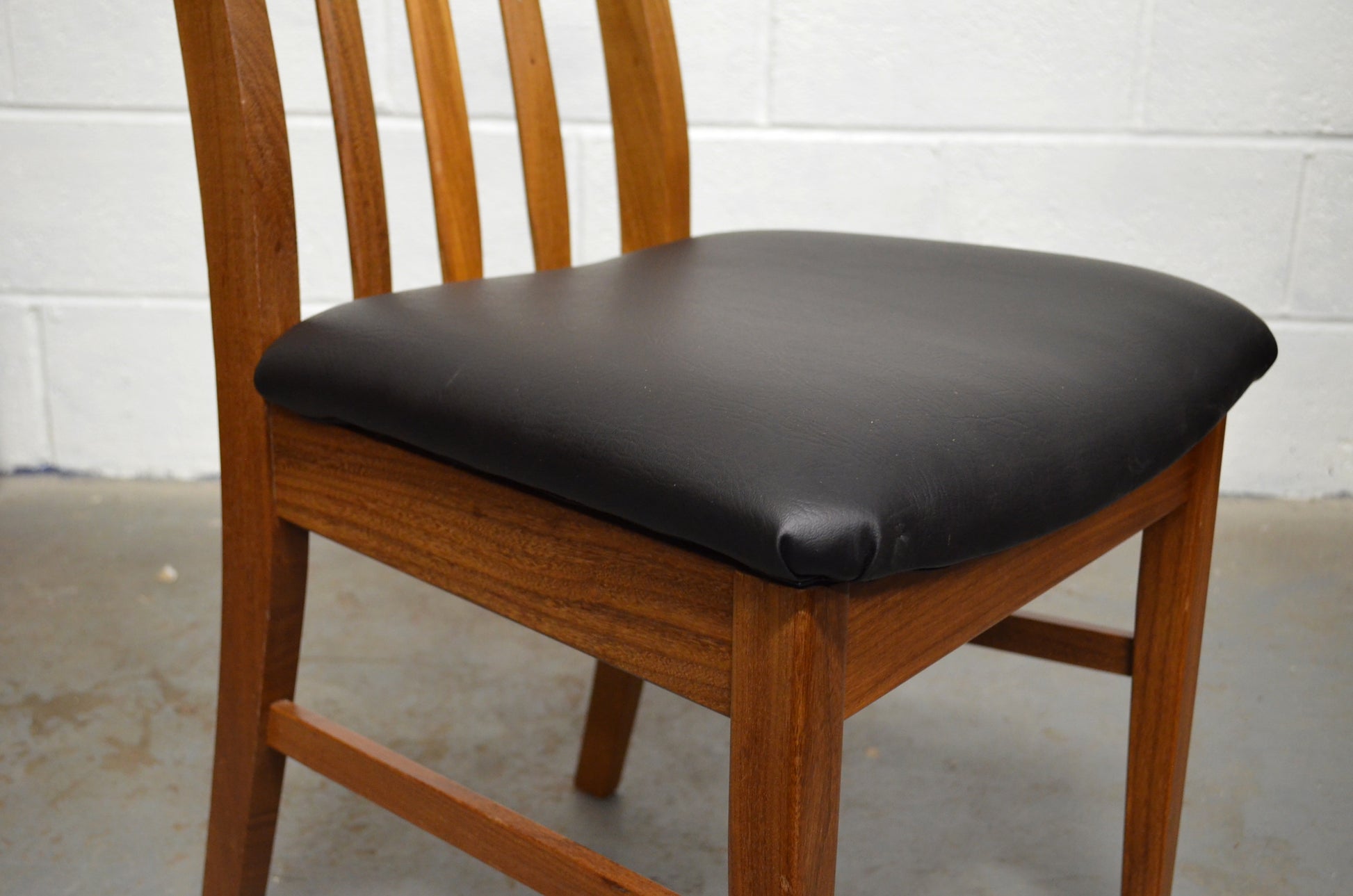 In great overall vintage condition in terms of the teak frames the original velvet seats have be replaced with a quality black faux leather and the foam replaced with new.