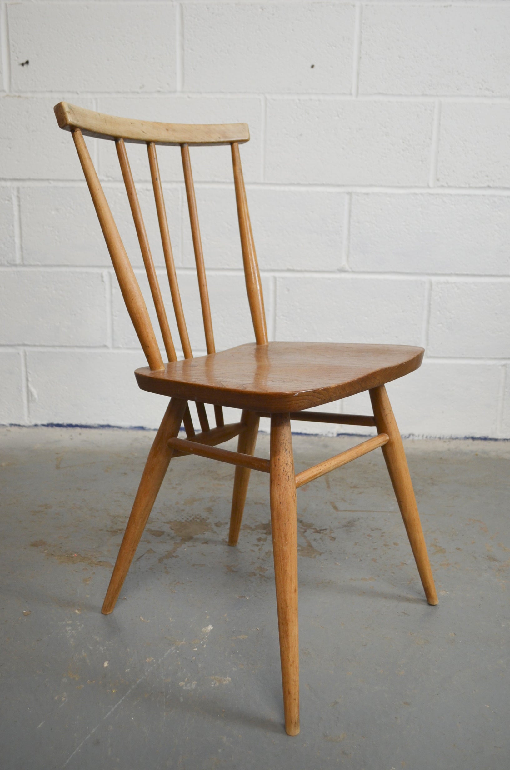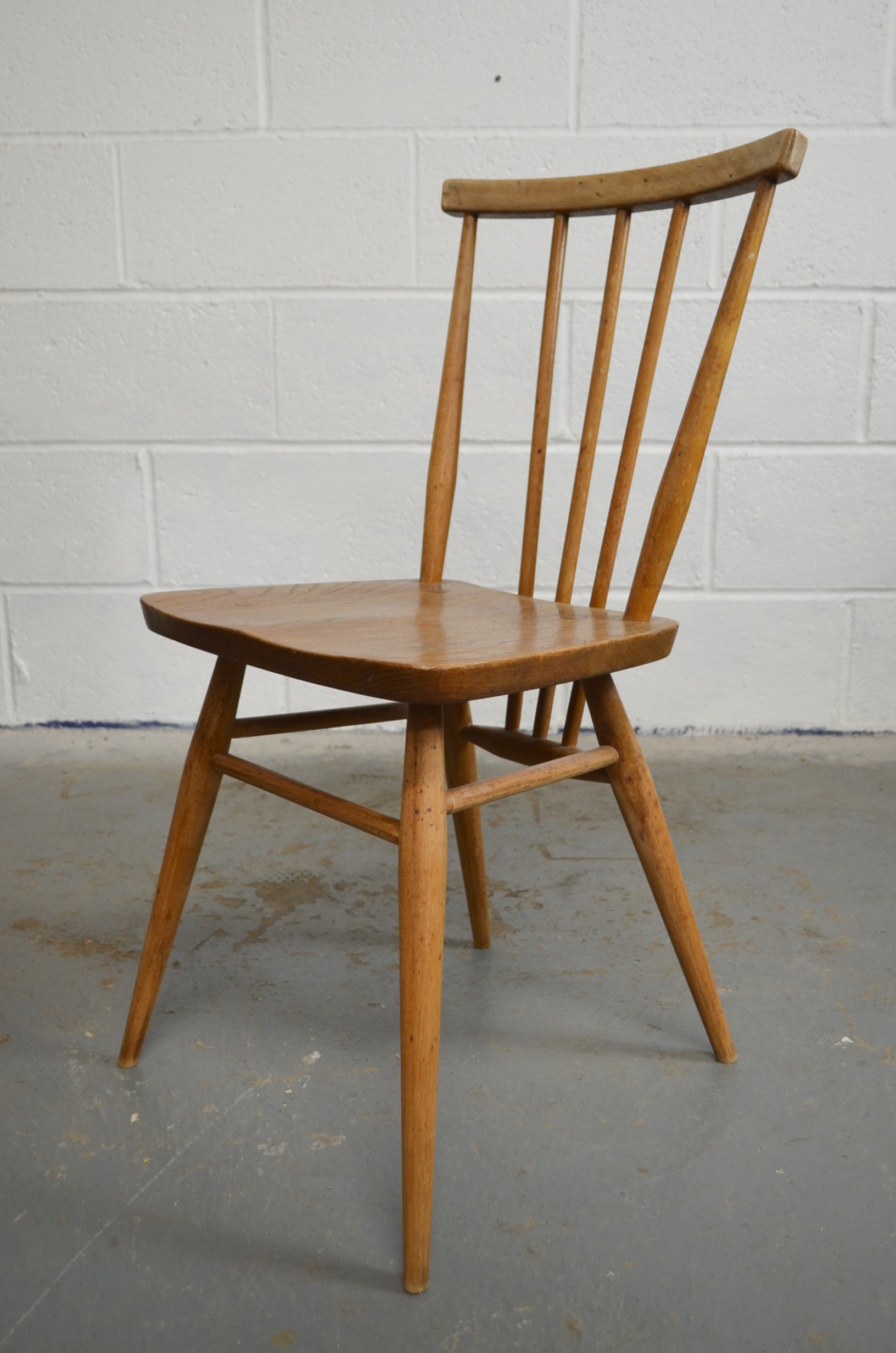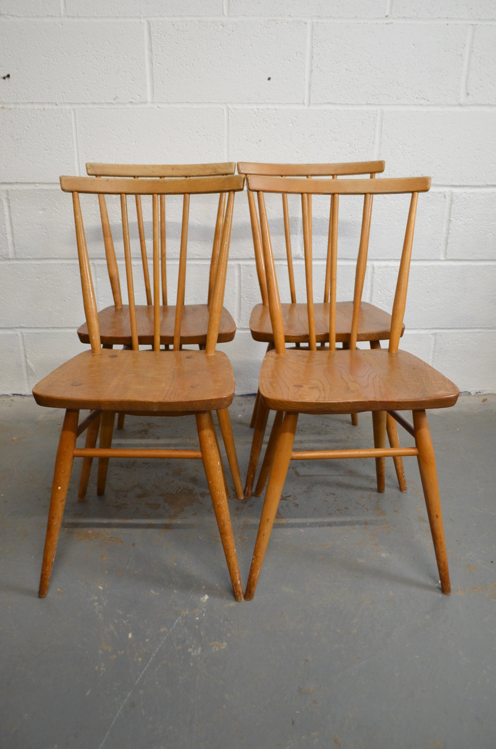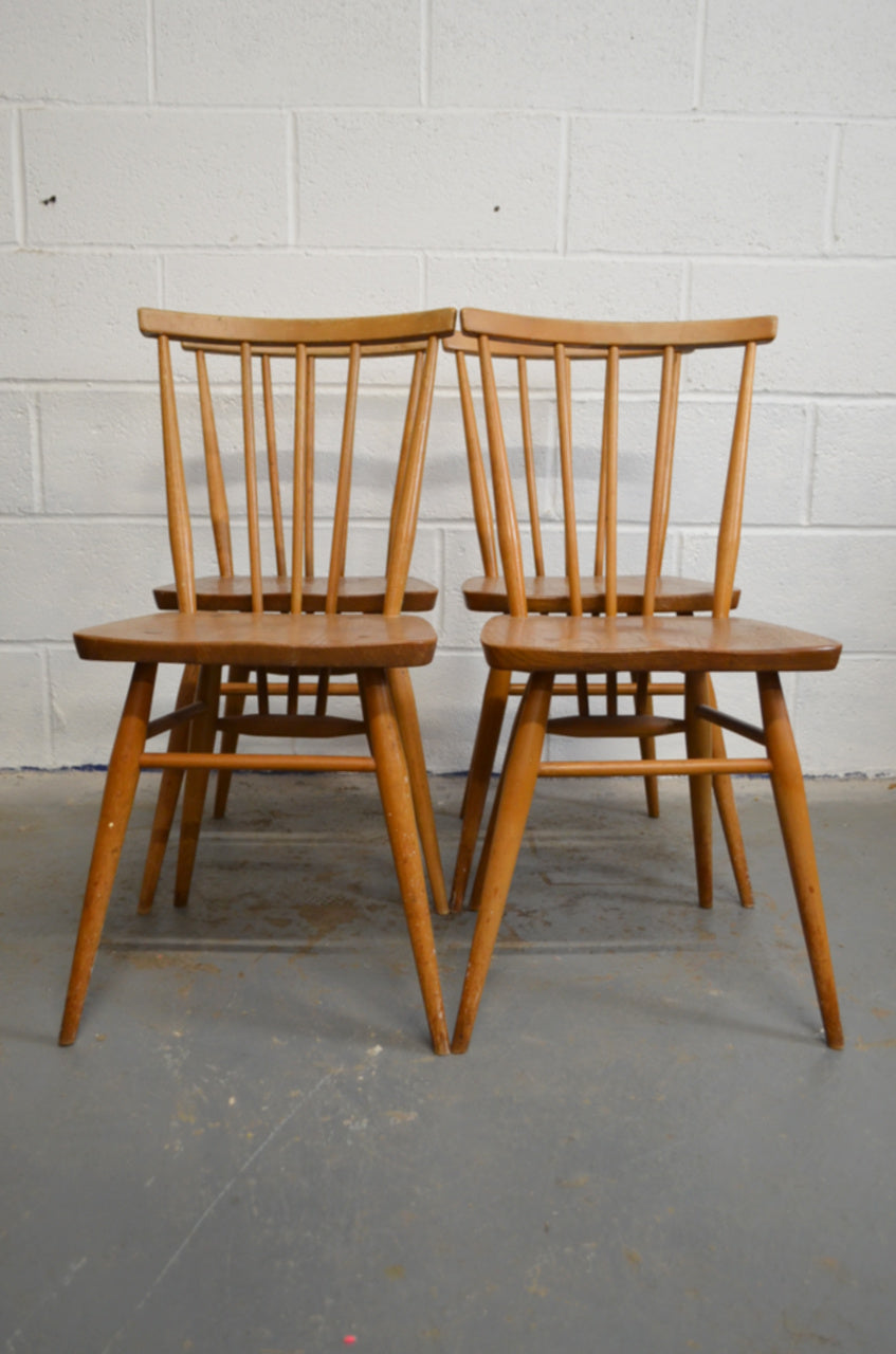 A set of four 1960s Ercol stick back model 391. Comprising of beach frames and elm seats and boasting the iconic and distinctive design and workmanship we expect with Ercol.