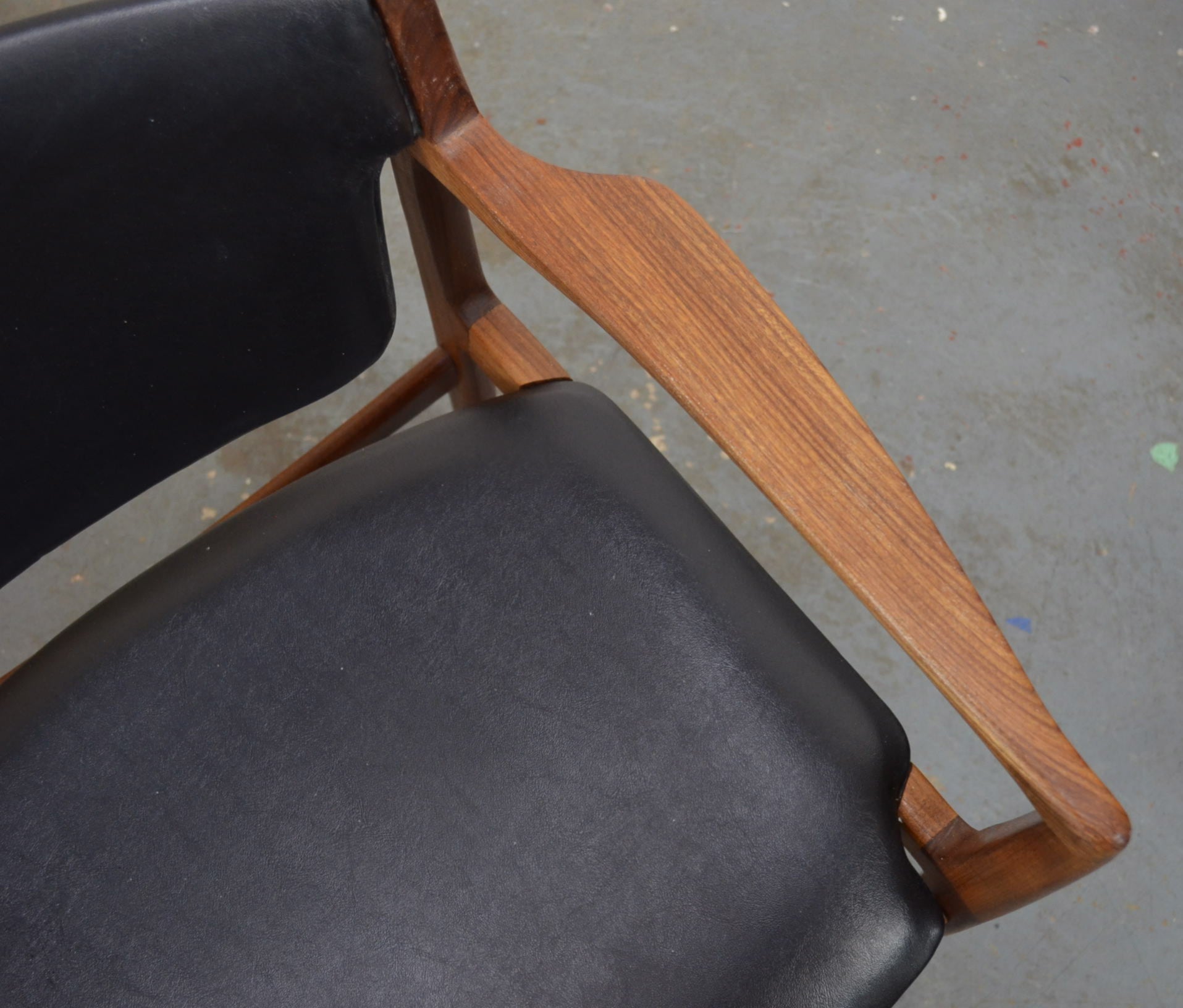 G-Plan - A Kofod Larsen, Chair for G Plan Danish Range, Model 4513 with teak wood frame and original black vinyl upholstery. Fantastic design, a pretty rare chair i think only a few available for sale.