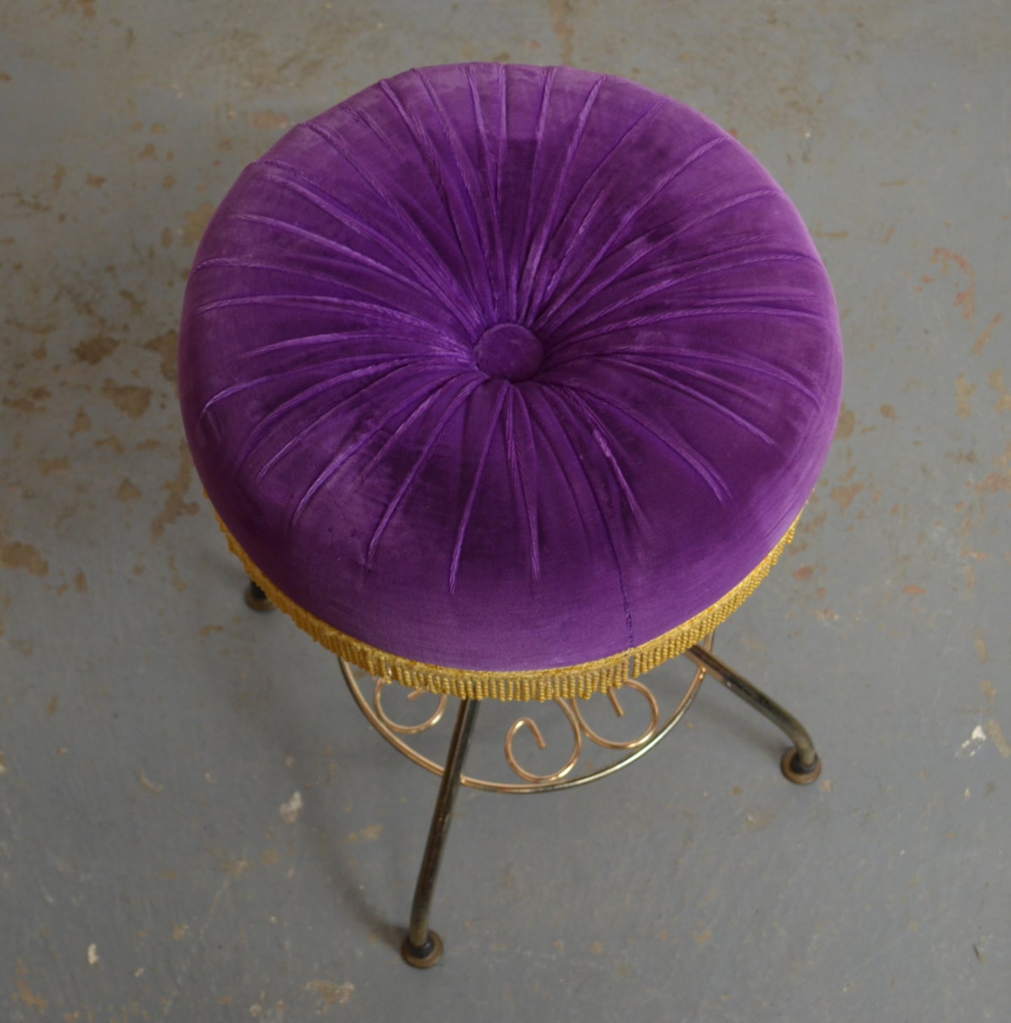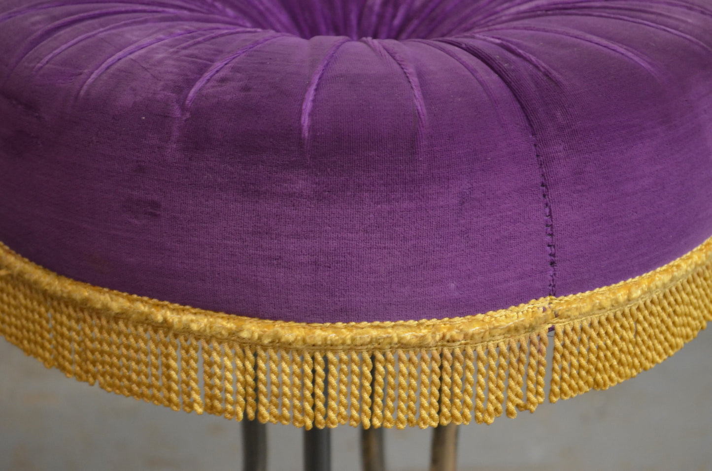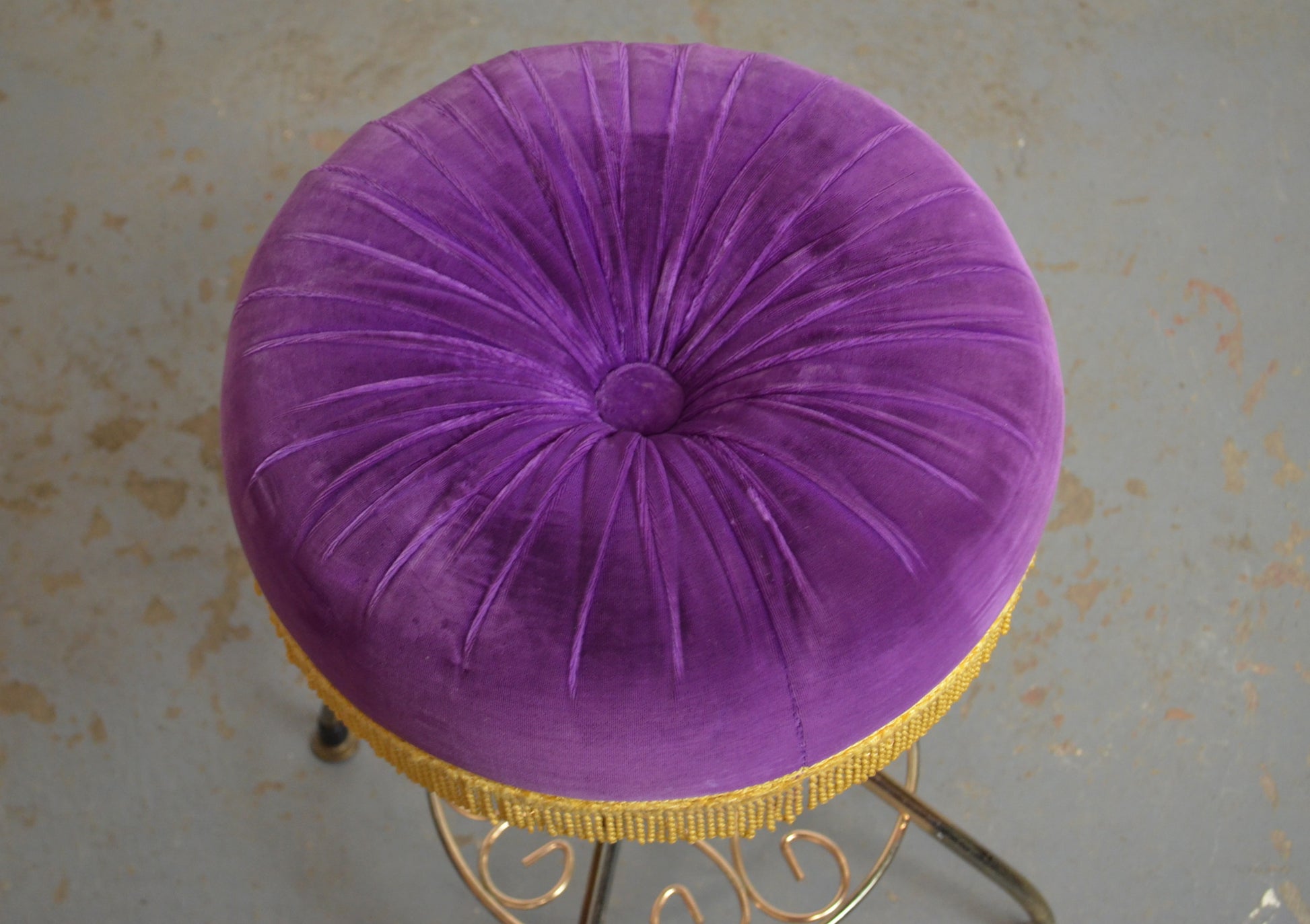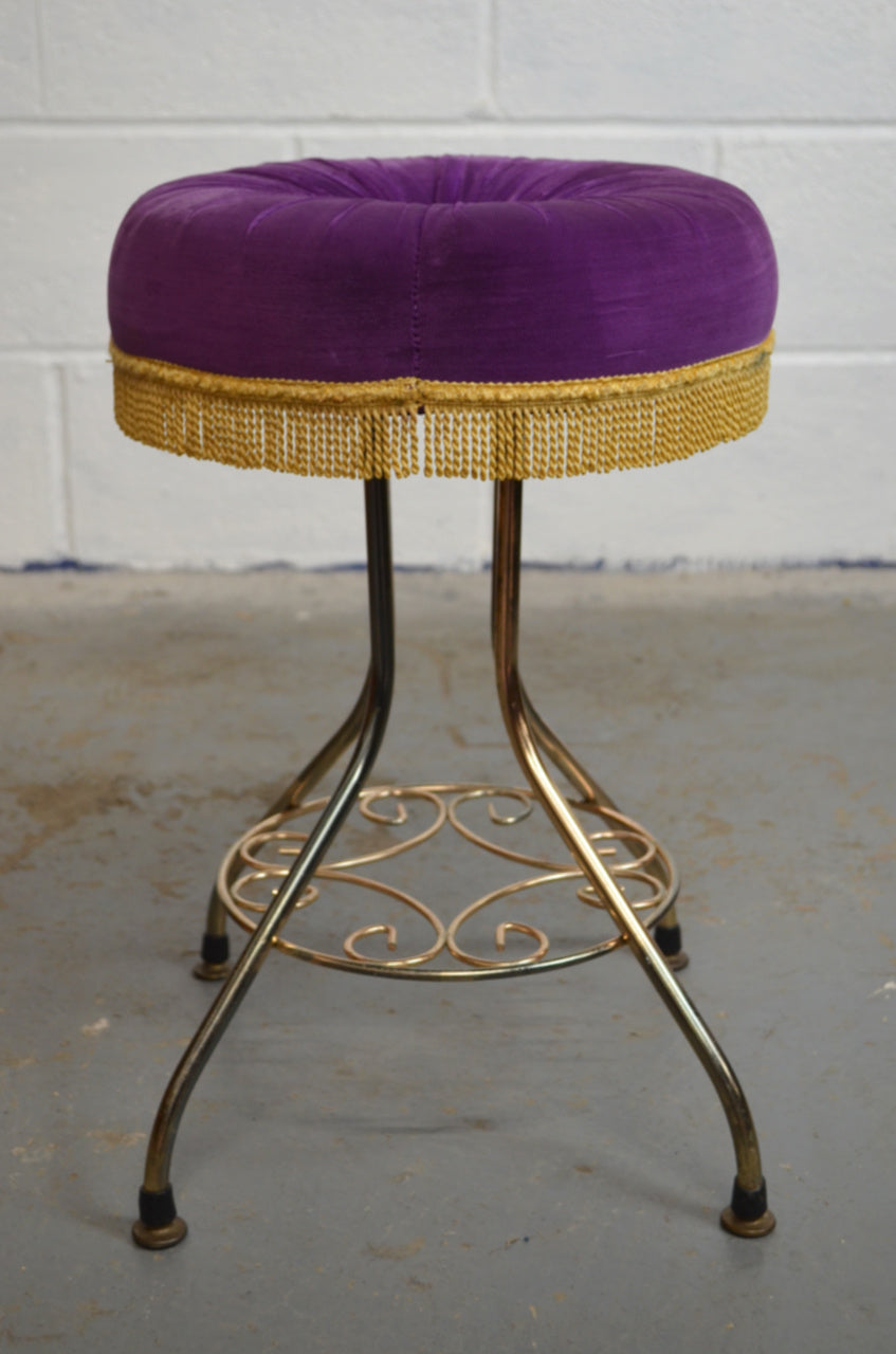 A vintage mid 20th century Holywood regency influenced stool, perfect for a dressing table. Having a glamorous seat with trim raised on splayed supports and detailed centre.
