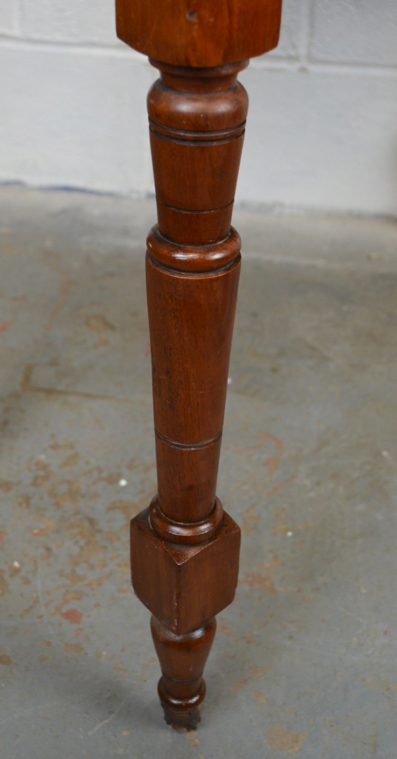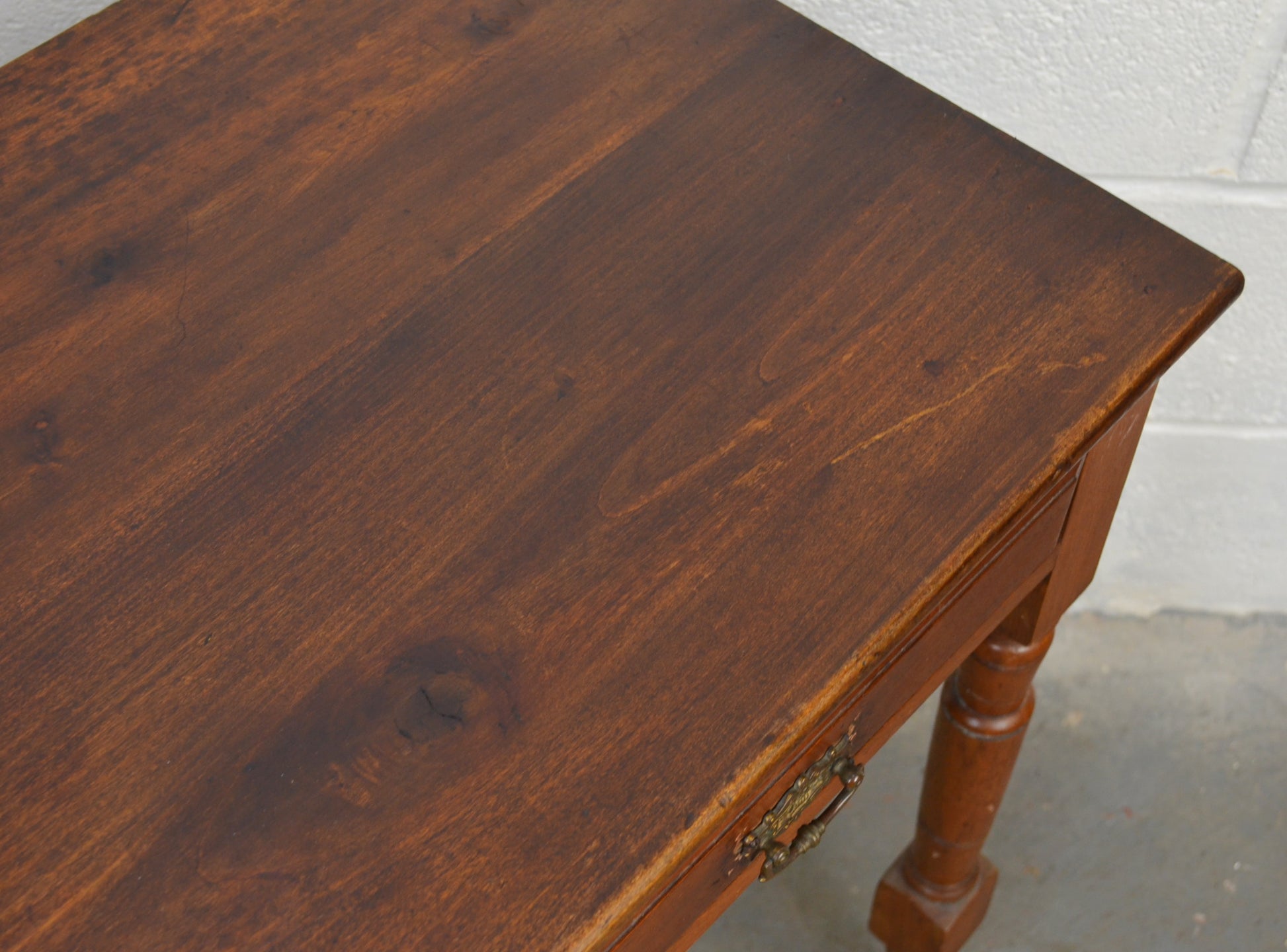 19th century Victorian mahogany writing desk of small proportion. The desk having twin drawers, each with brass swan neck handles and being raised over turned supports. Brass handles to the drawers this desk is perfect for use at home with a laptop.