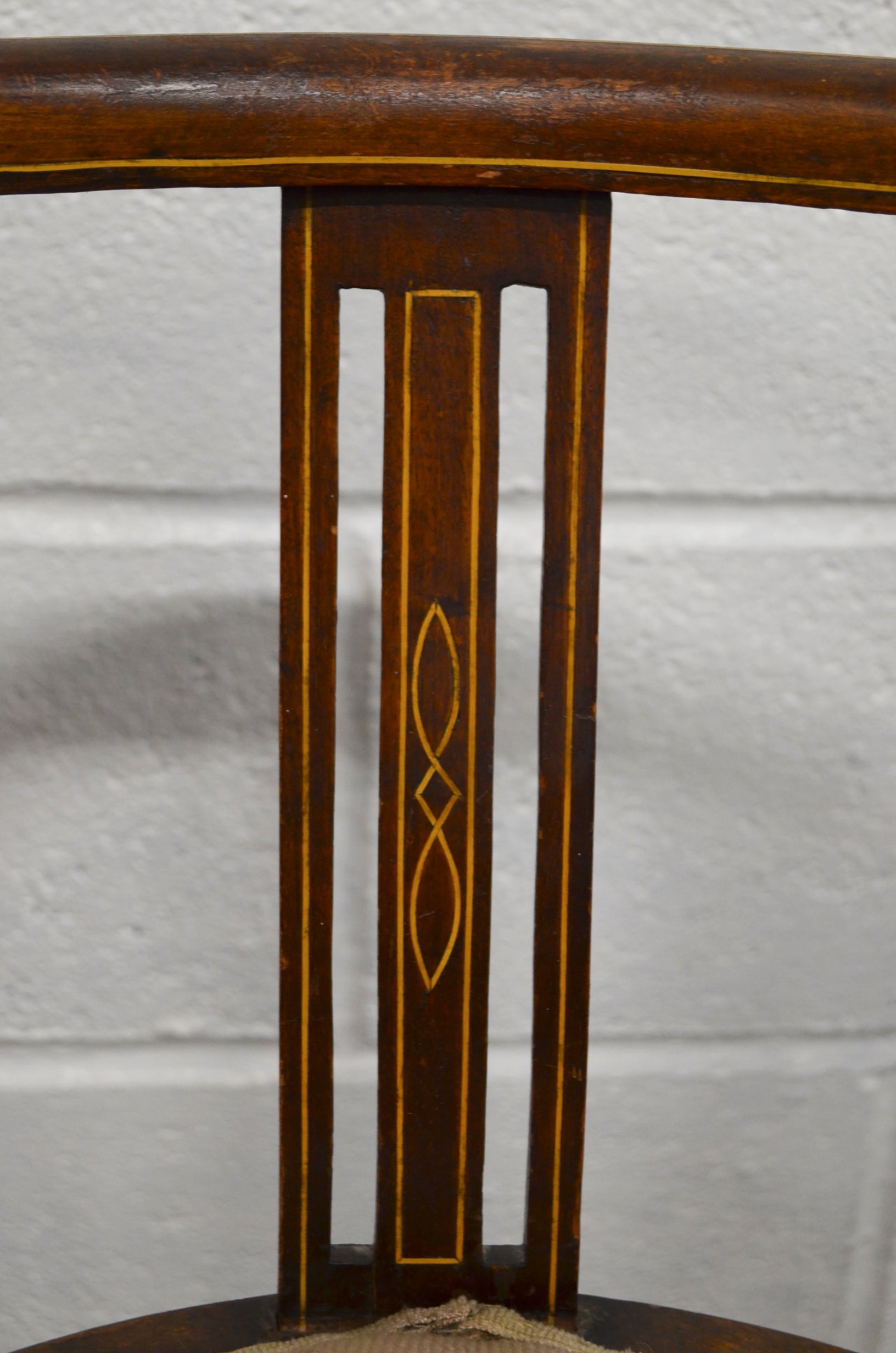 In good antique condition with wear and patina and a couple losses to the inlay. The seat cover is original but the foam has been renewed for comfort and safety.