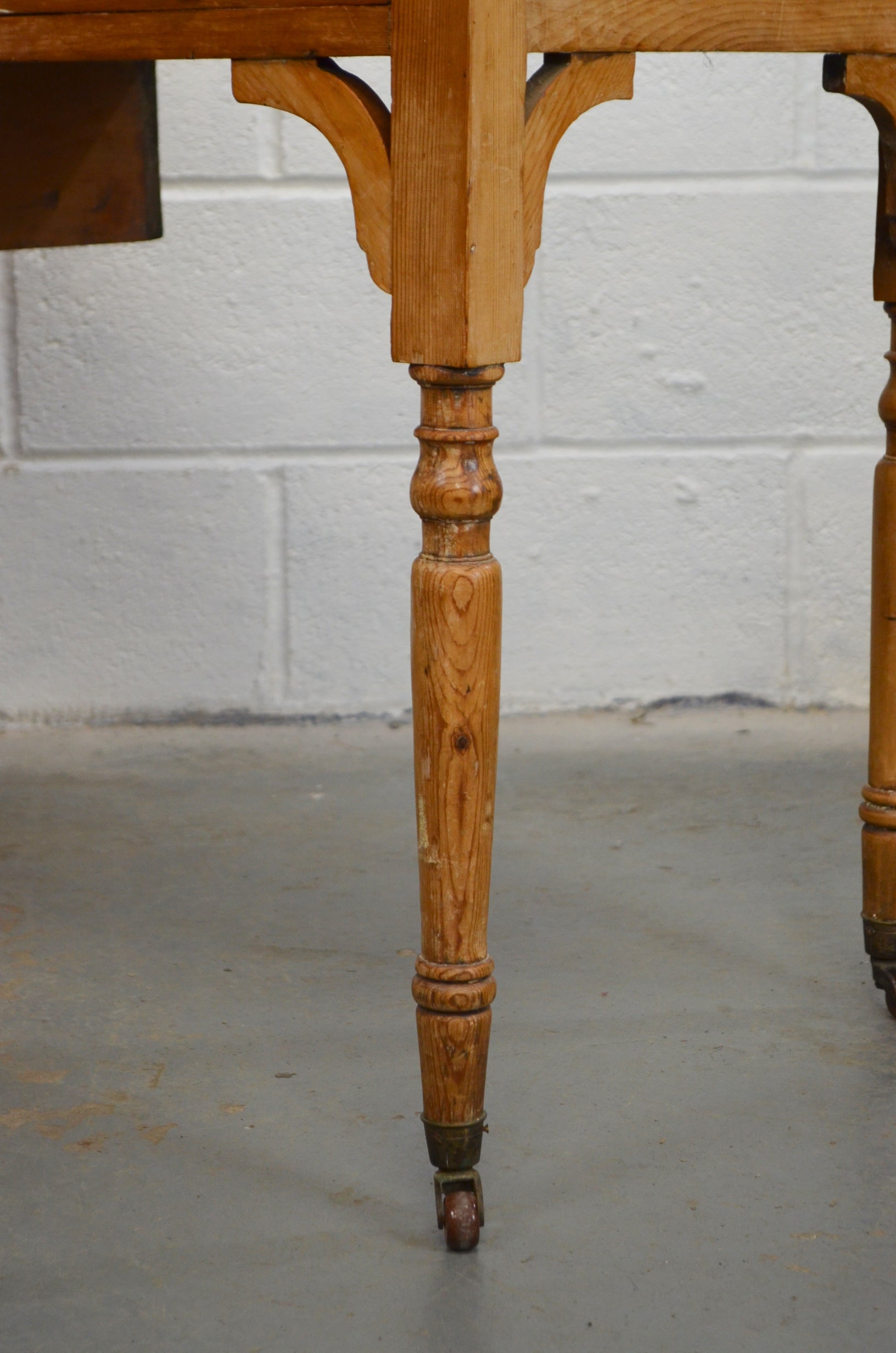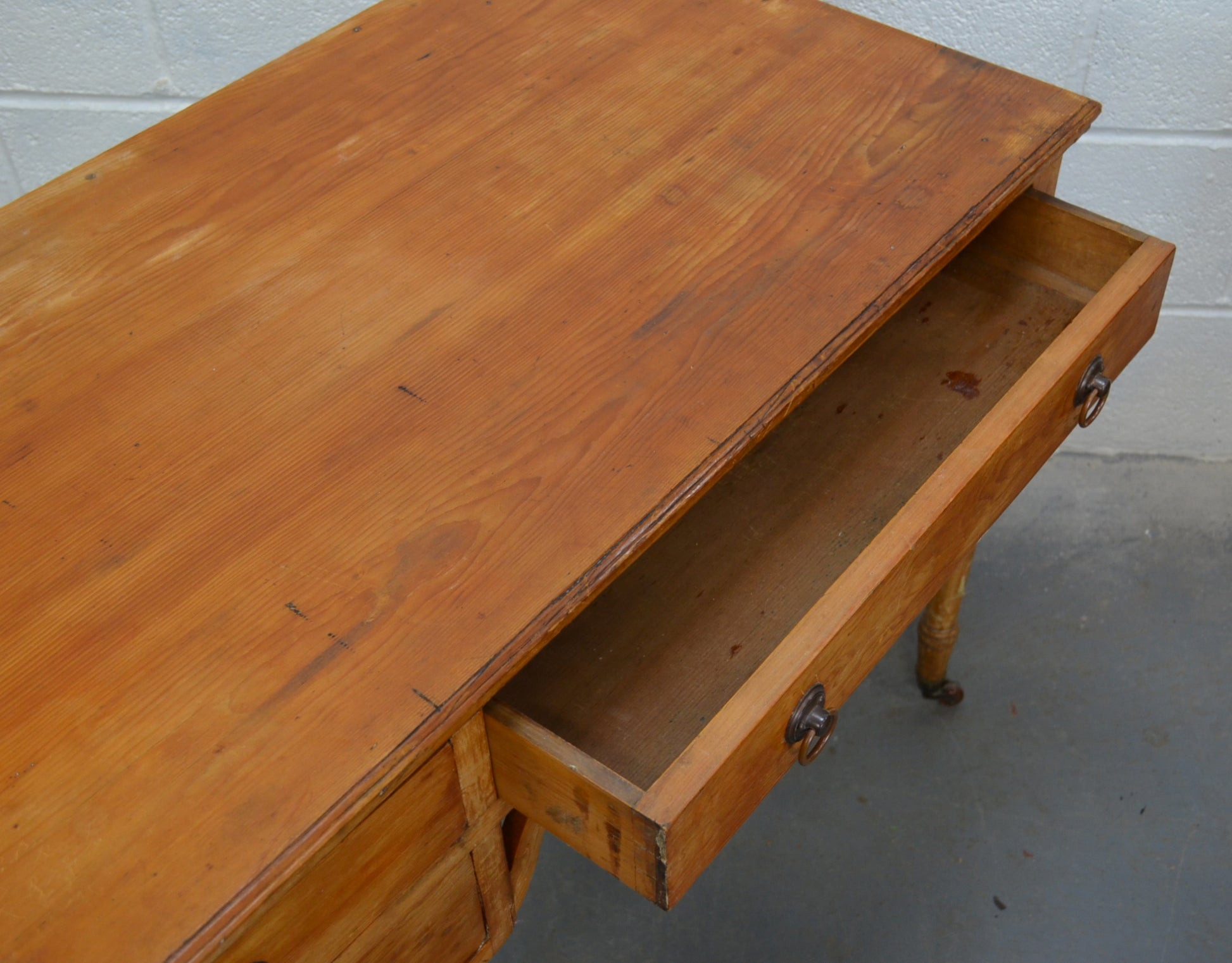 A 19th century Victorian ash / oak wood writing table desk. The desk raised on turned legs terminating in castors. Having a bank of two drawers to the left of the knee hole with one long drawer above.