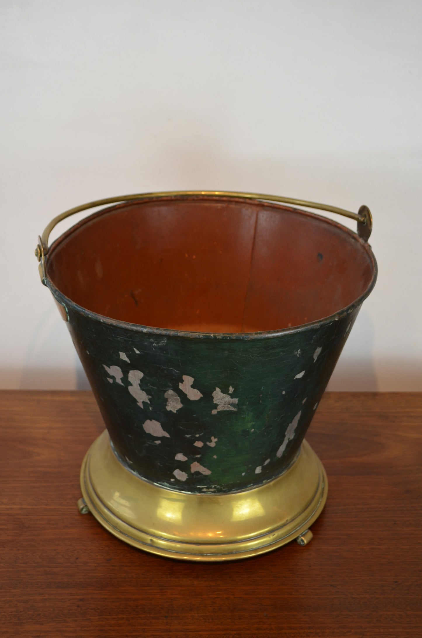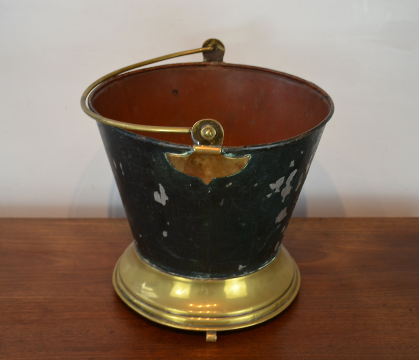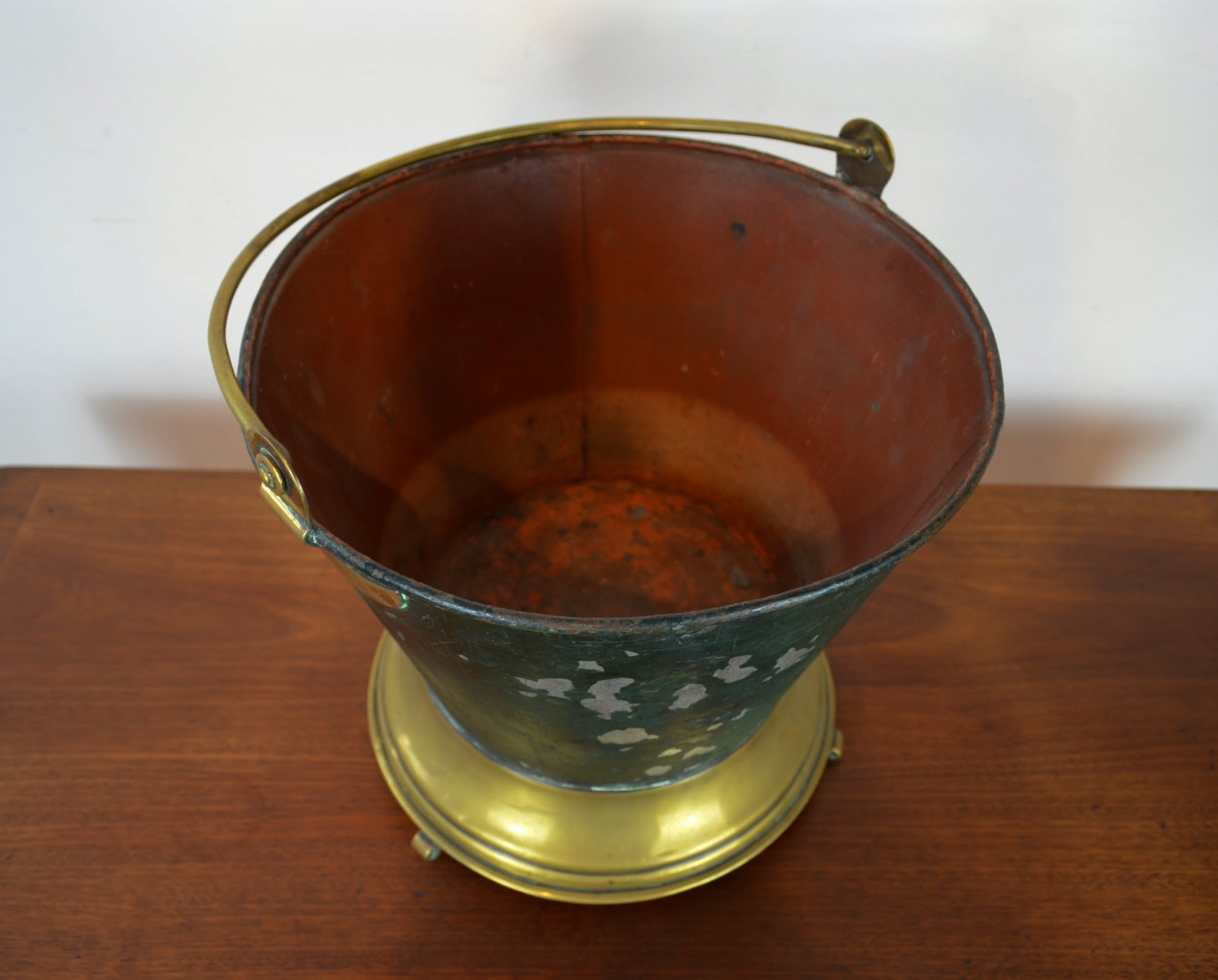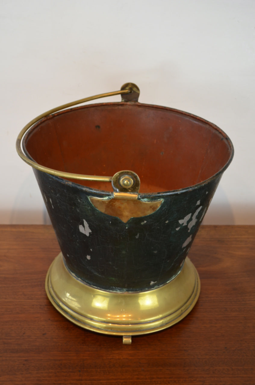 A 19th Century Victorian tin and brass wine cooler champagne ice bucket of tapering form terminating to a circular brass raised on shaped feet.