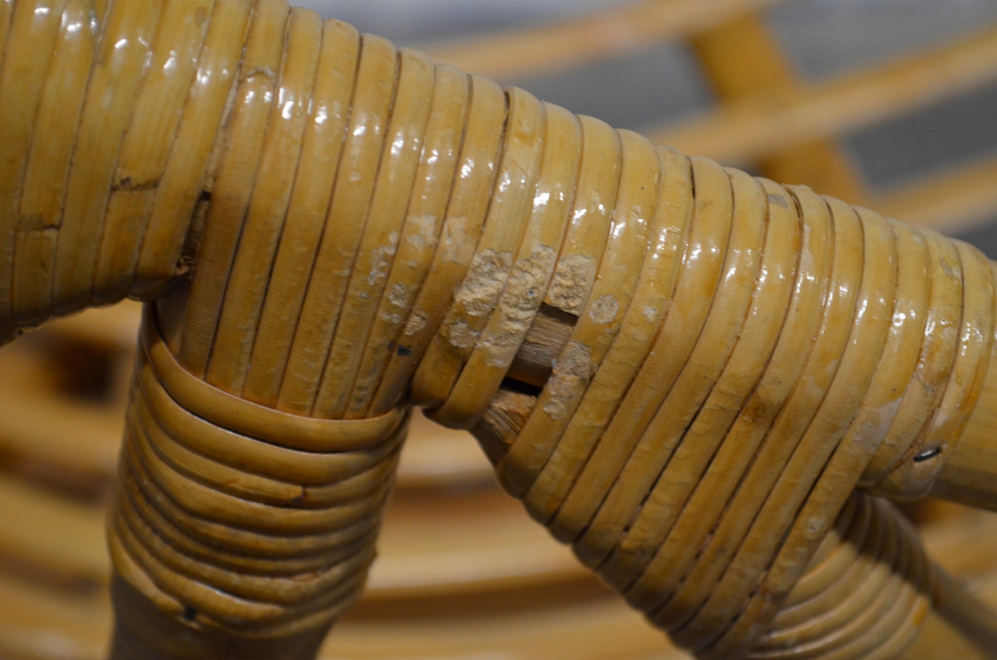 A great vintage condition with the exception a couple scuffs and one broken section of bamboo neither of which effects functional or overall look. A new custom made cushion is being made for each and is included in the price.