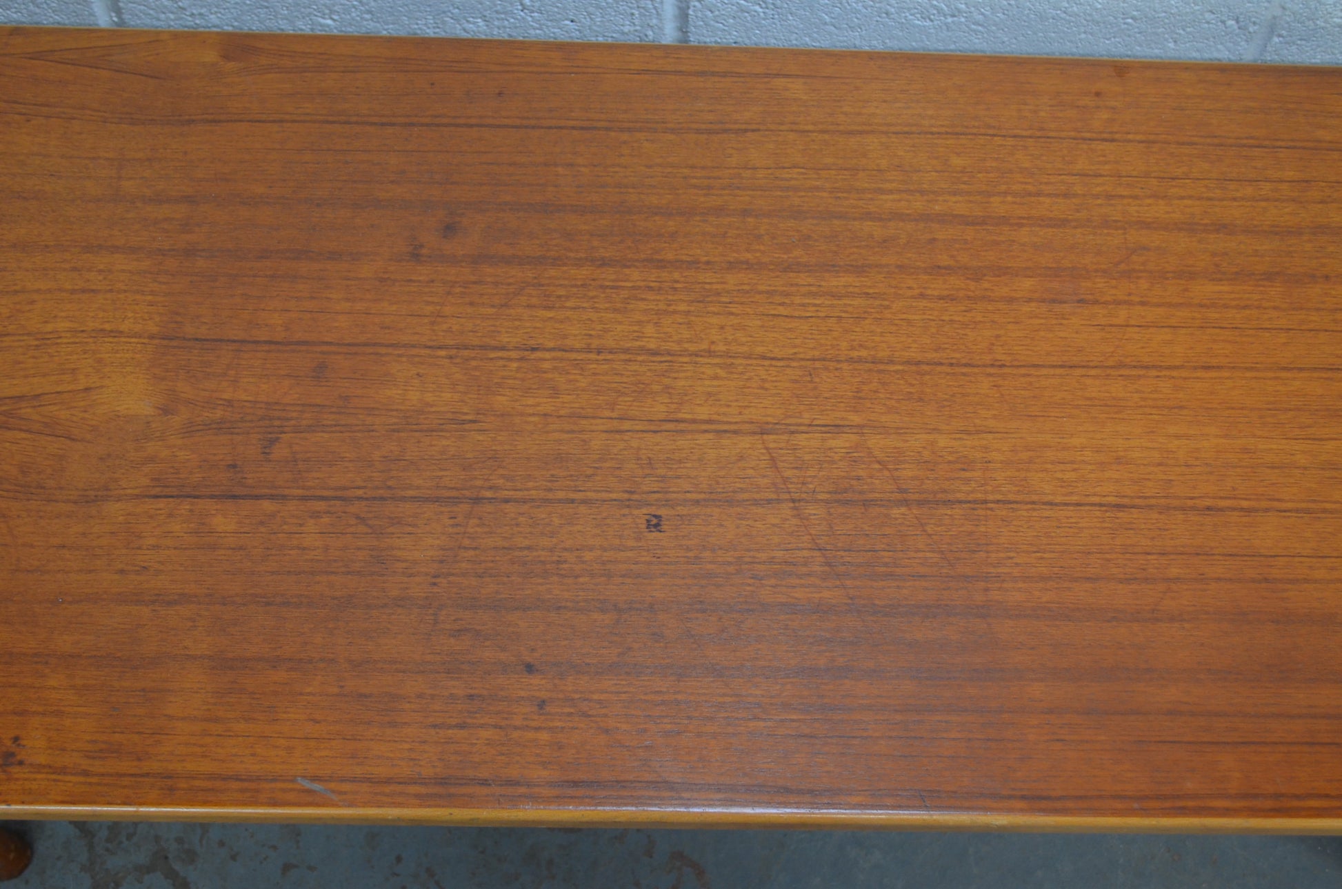 A vintage danish teak coffee table by Admis. The table is of a rectangular form with rounded edges and tapered legs. Makers mark to the underside as photo.
