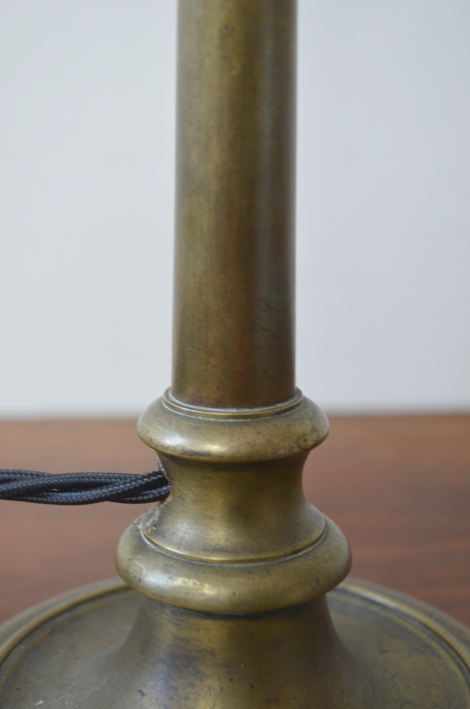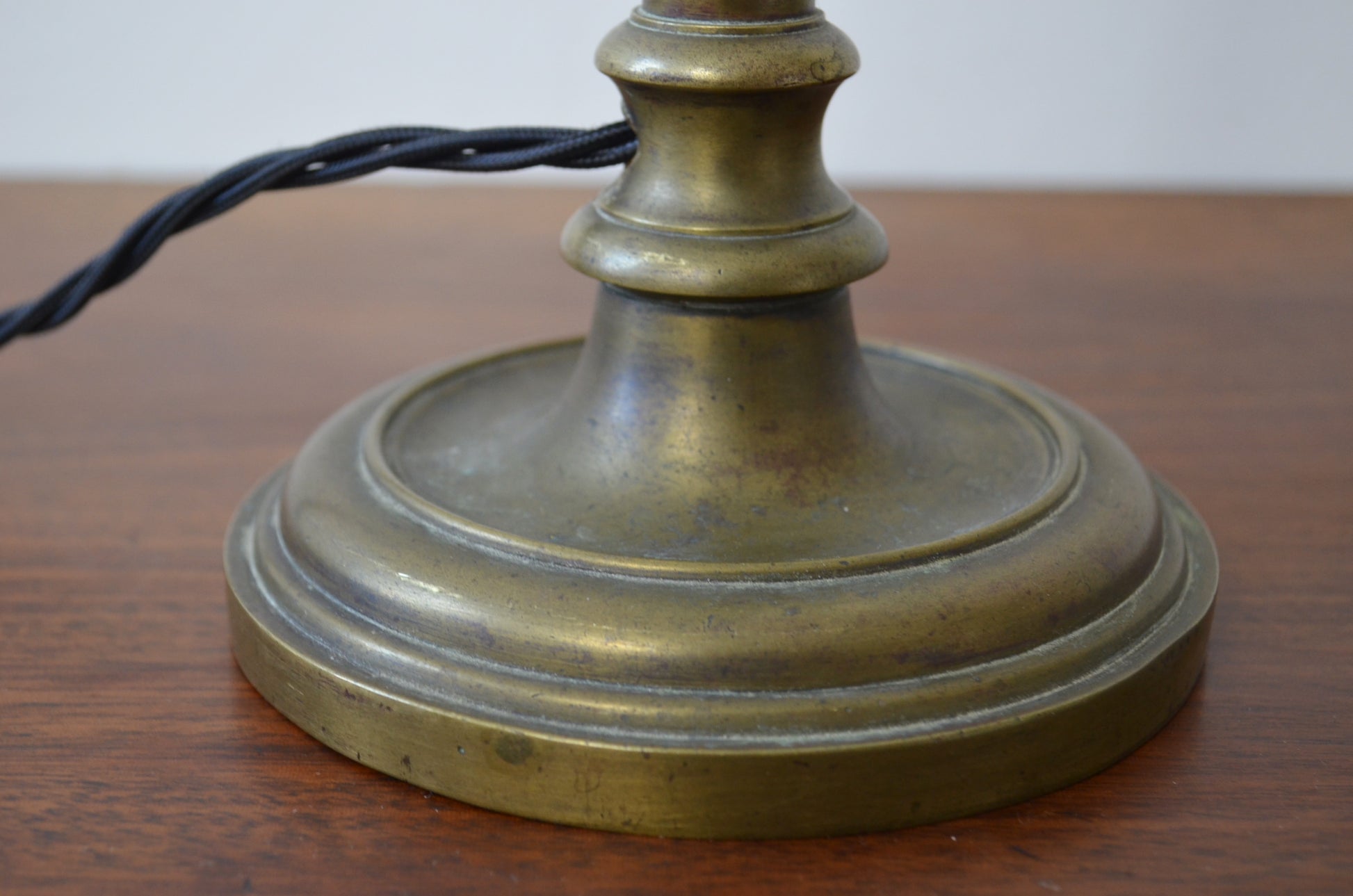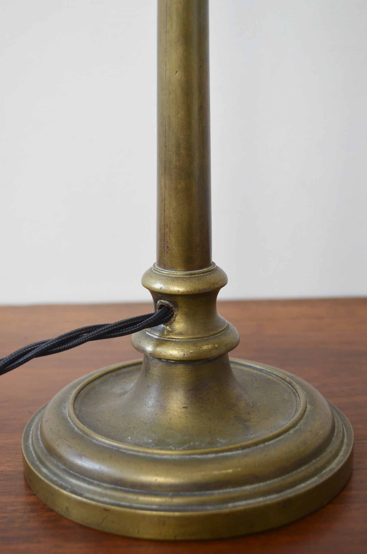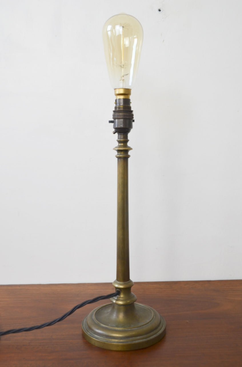 An early 20th century brass table lamp. Benefits from the sort of brass patina you would expect with age and rewired with antique style flex.
