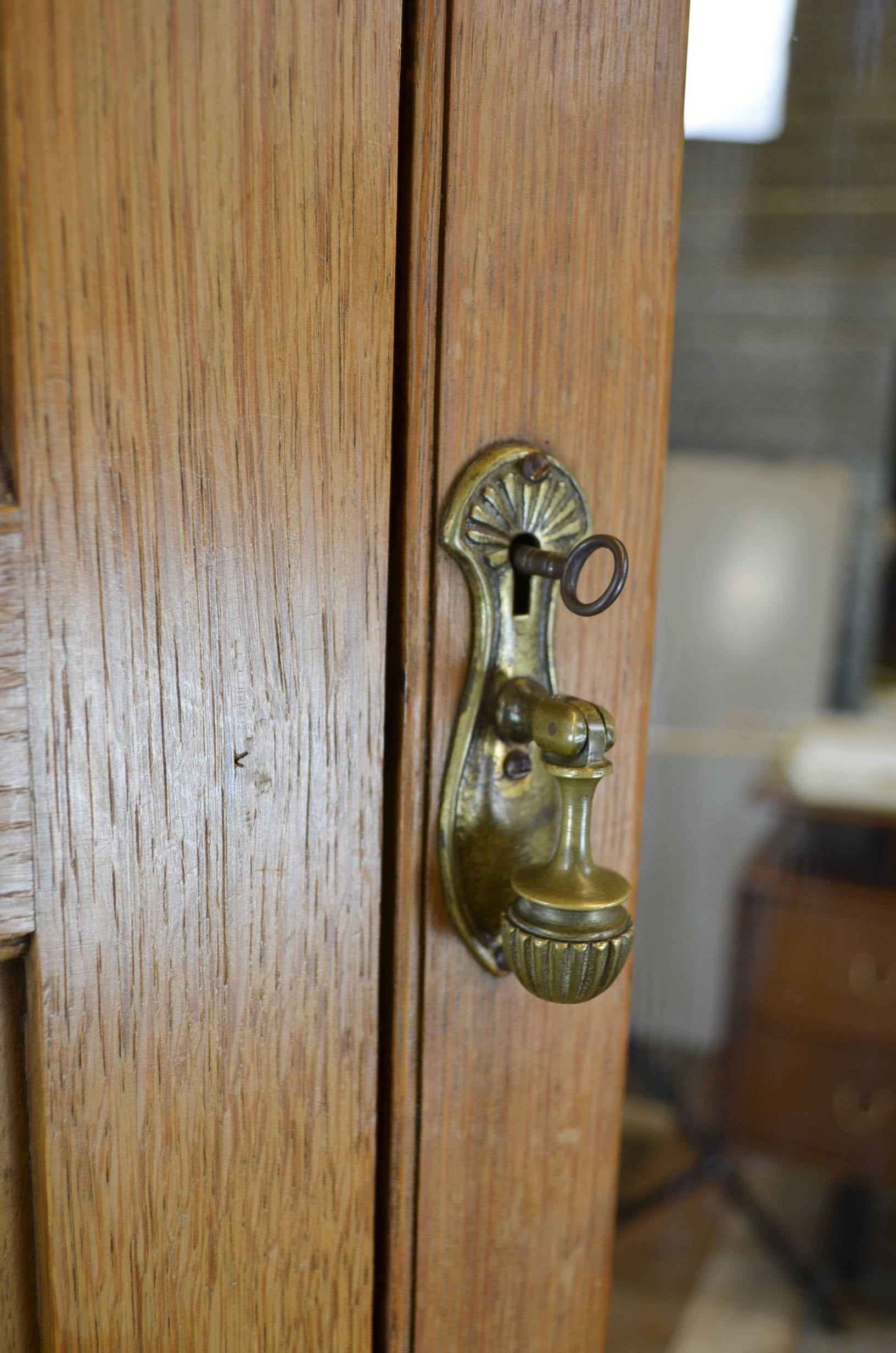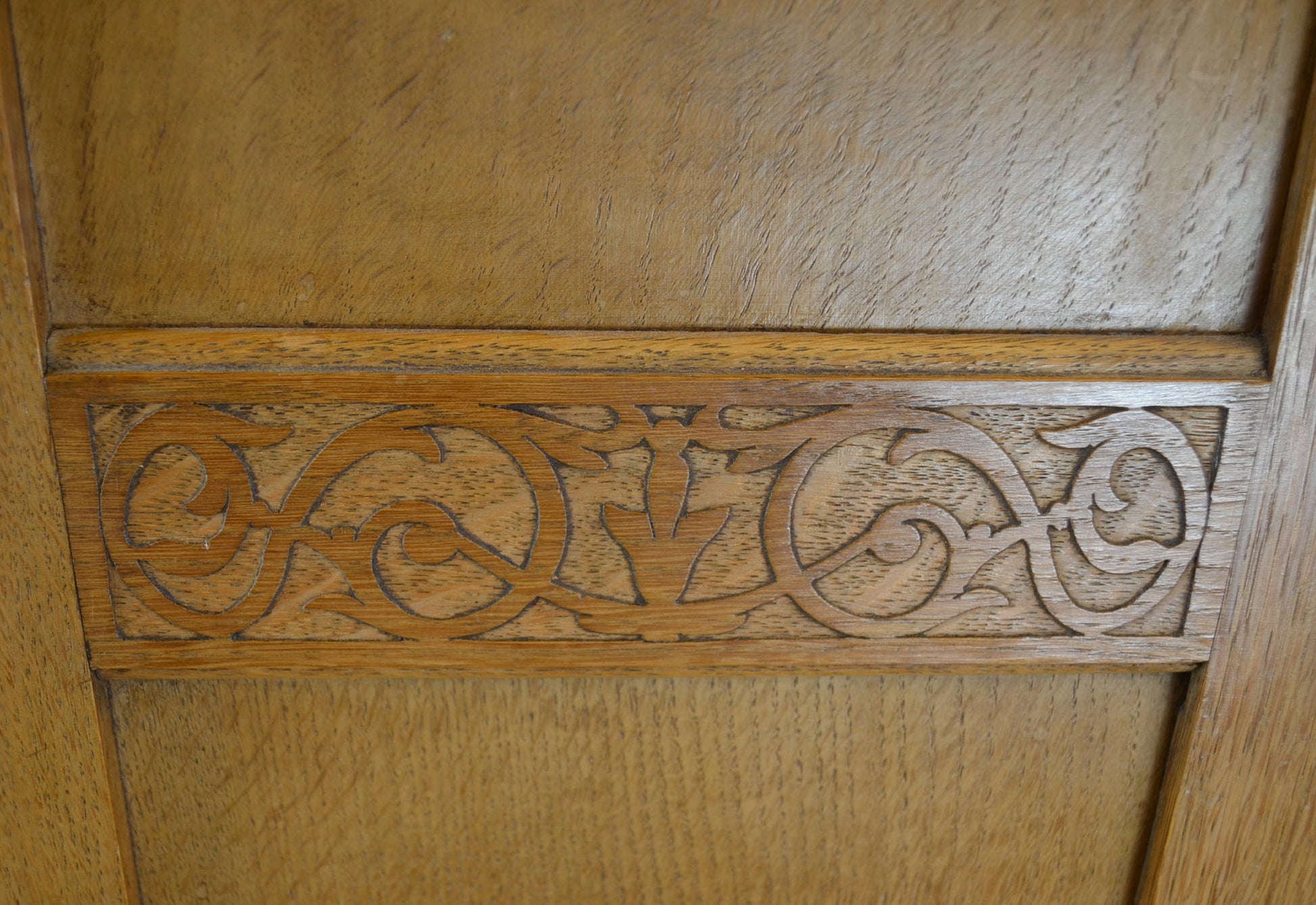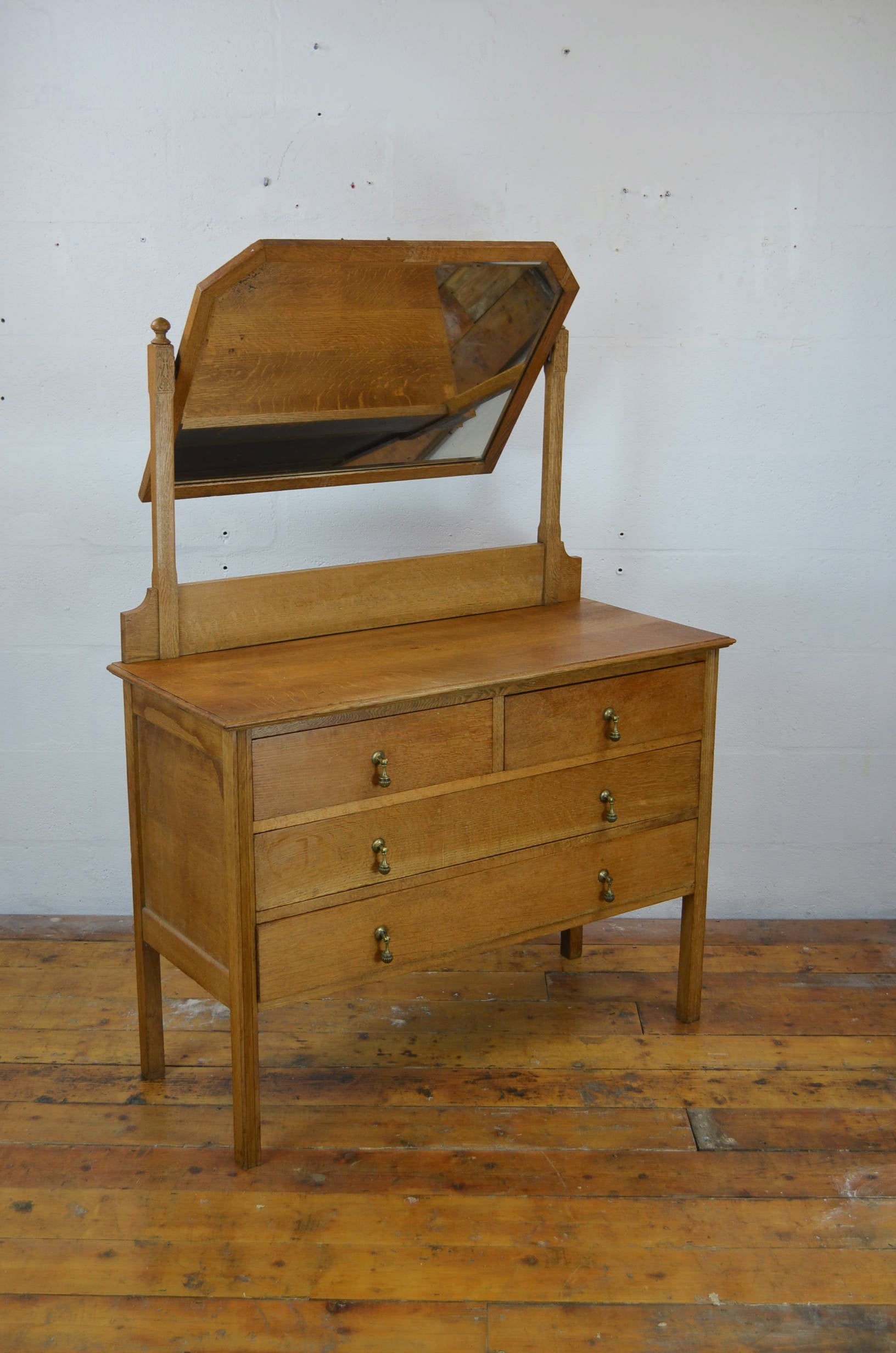 Edwardian bedroom suite consisting of a wardrobe, chest of drawers and dresser all with matching handles and carved details.  We have replaced the wardrobe mirror as this was unfortunately lost but the dressing table mirror is original and has some very desirable foxing. The wardrobe has a lock and original key included.