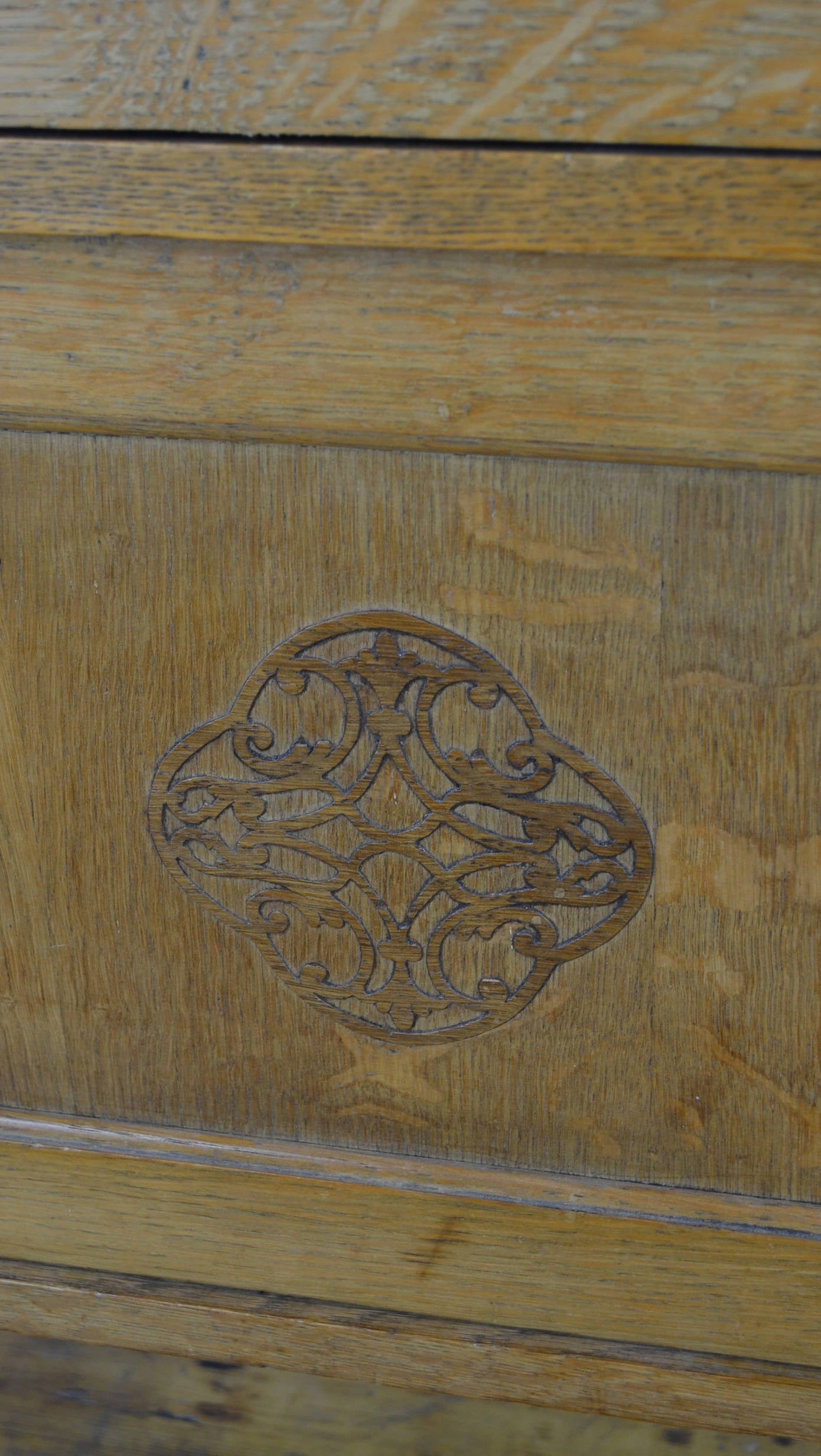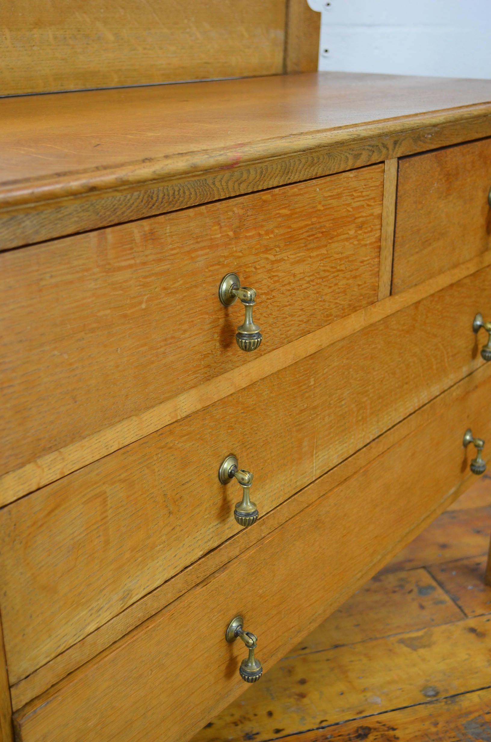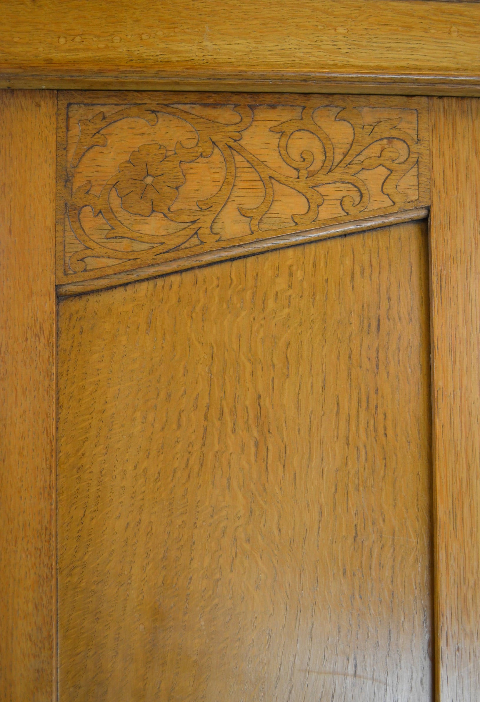 Edwardian bedroom suite consisting of a wardrobe, chest of drawers and dresser all with matching handles and carved details.  We have replaced the wardrobe mirror as this was unfortunately lost but the dressing table mirror is original and has some very desirable foxing. The wardrobe has a lock and original key included.