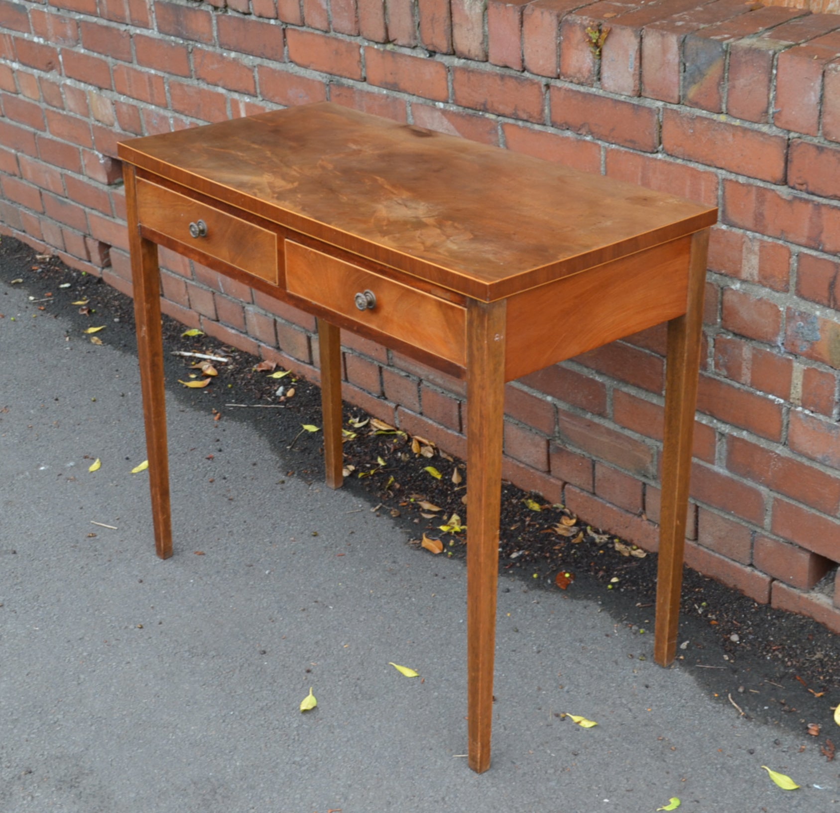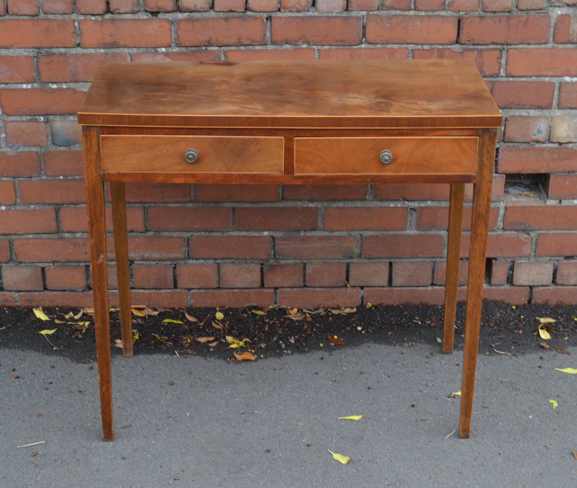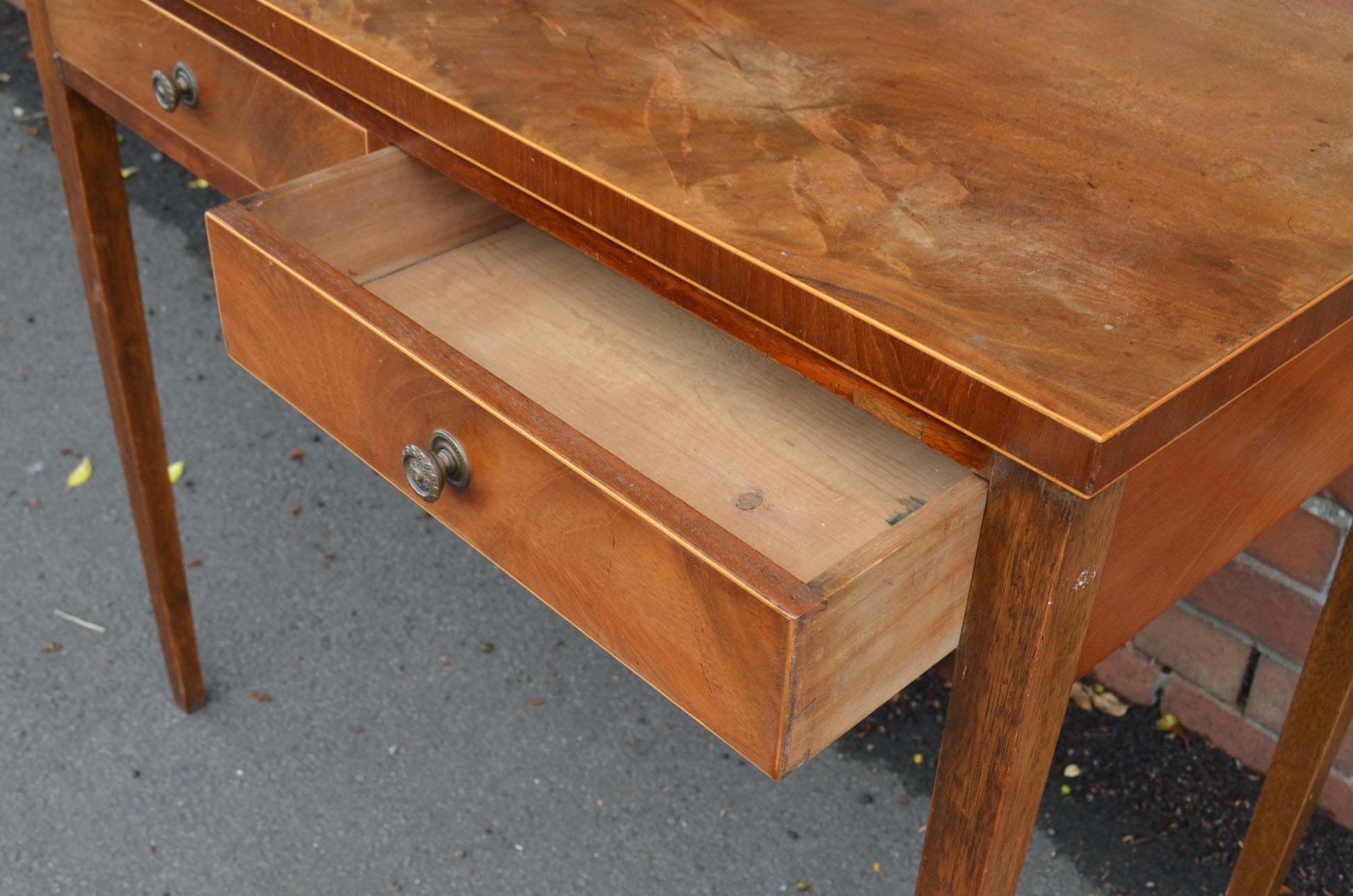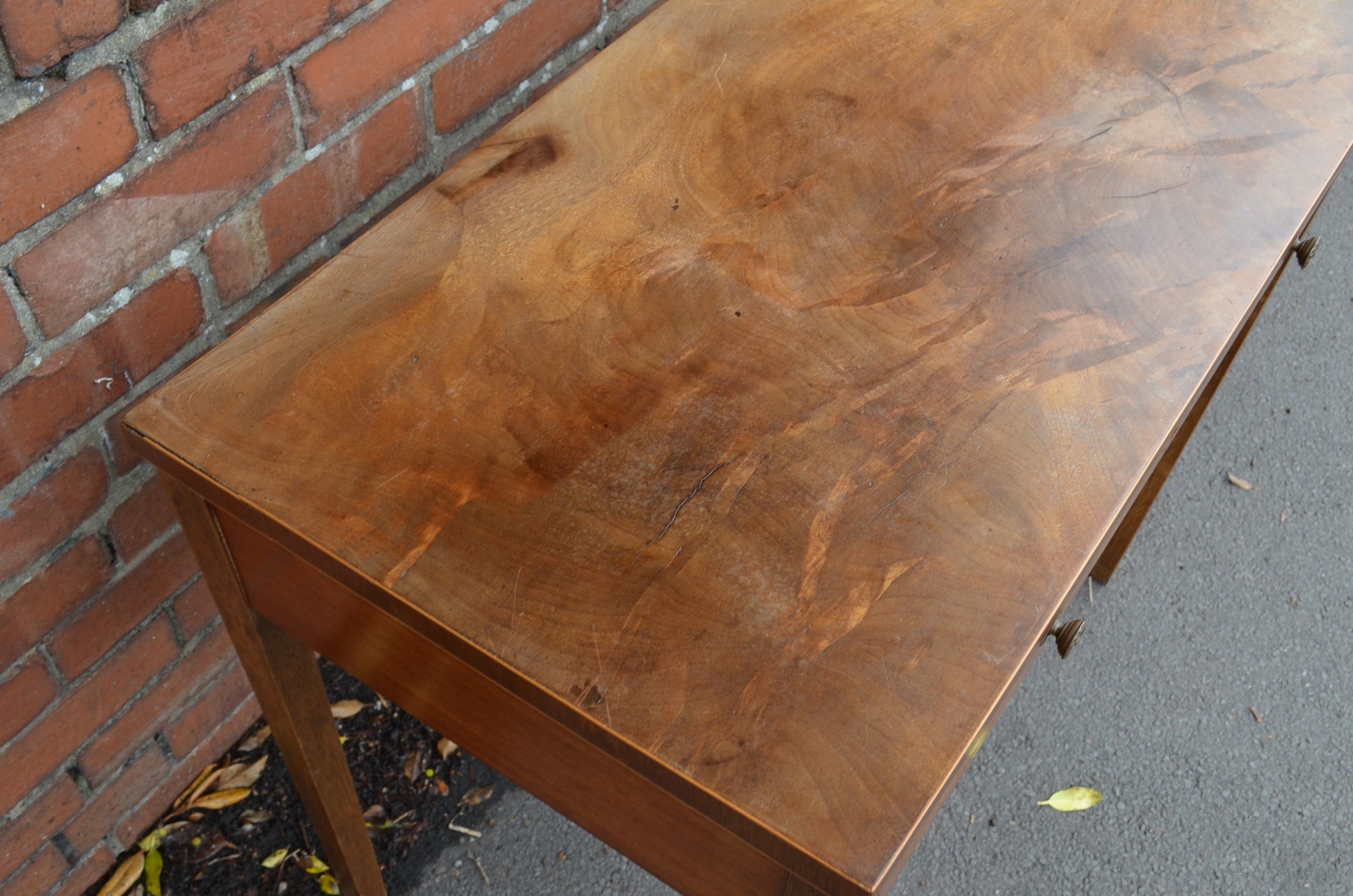 A 19th century writing/hall table Georgian mahogany and boxwood strung side table, two frieze drawers. Benefits from a great patina, and details as well as original handles.