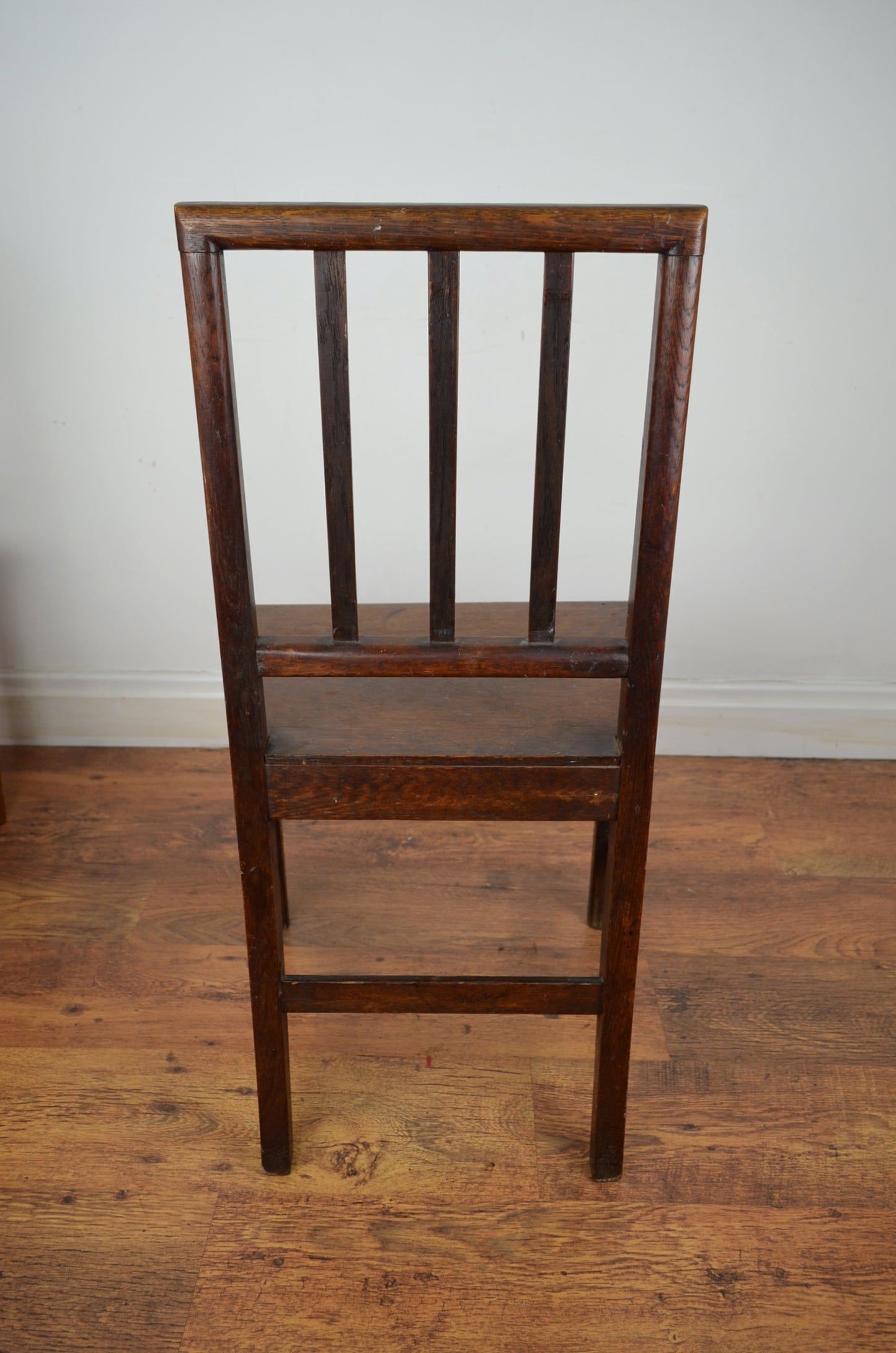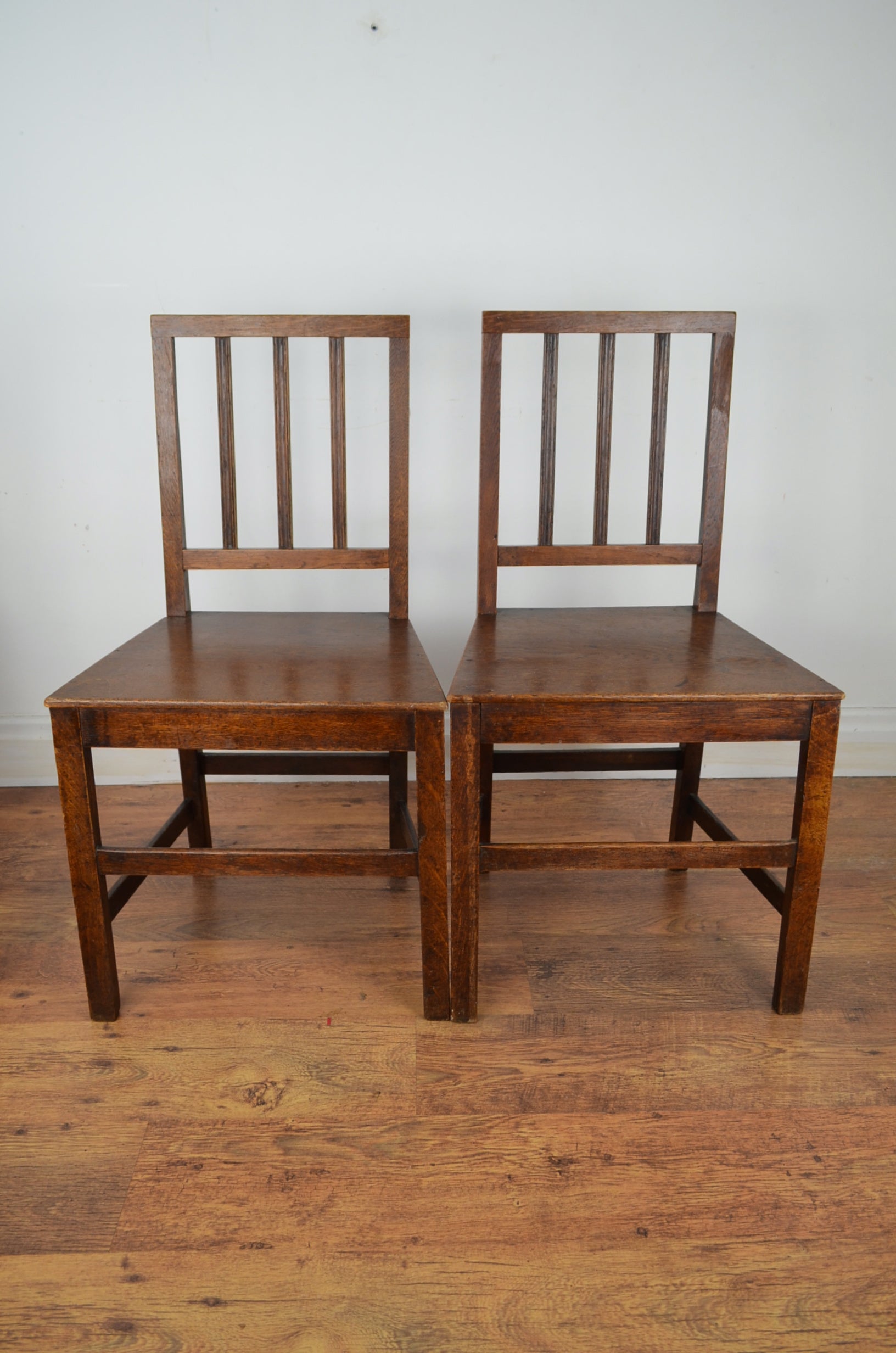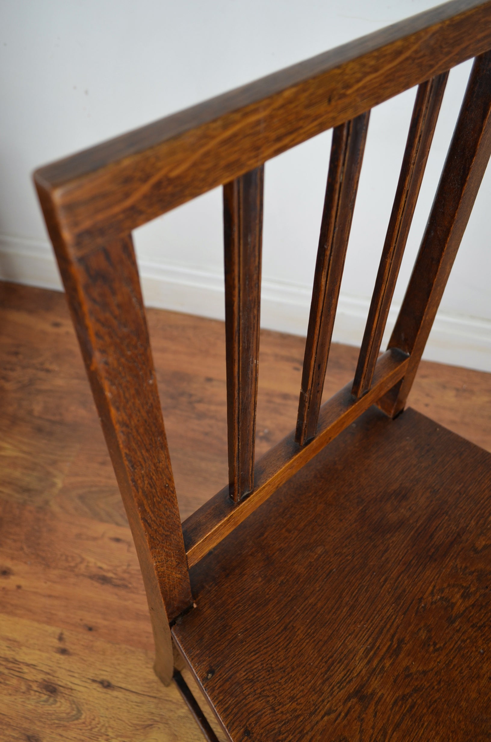 Welsh antique oak country house dining chair. Bar backrests with really good detail to centre on tapered legs and stretcher supports.