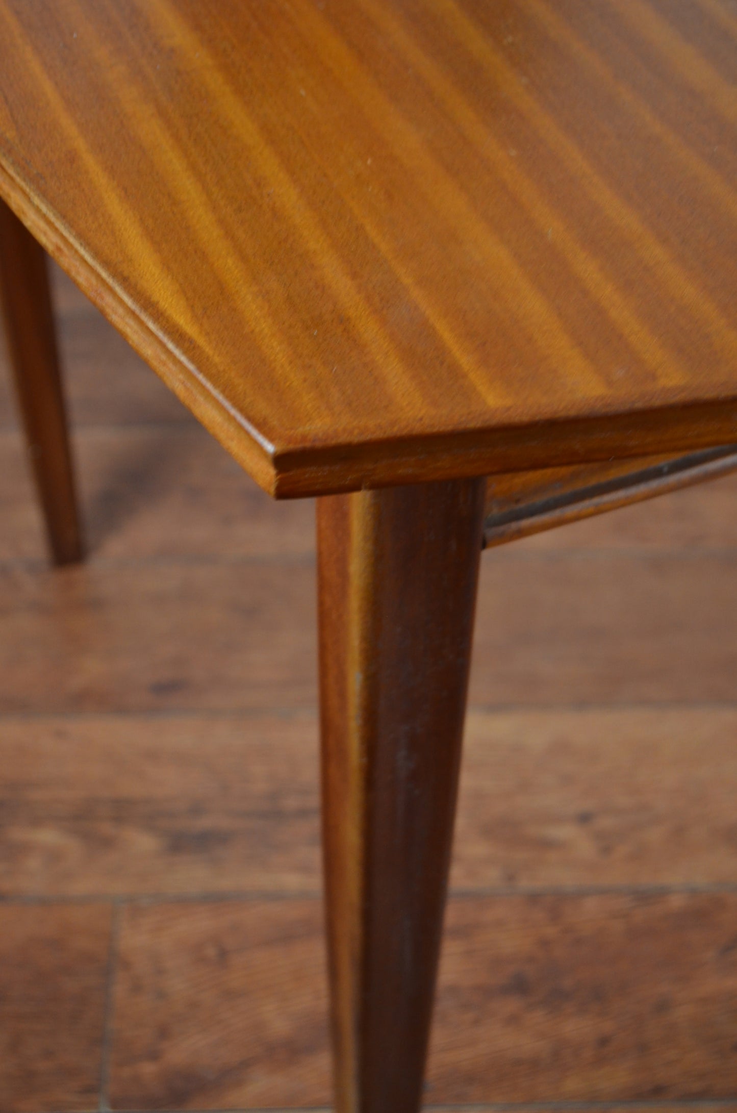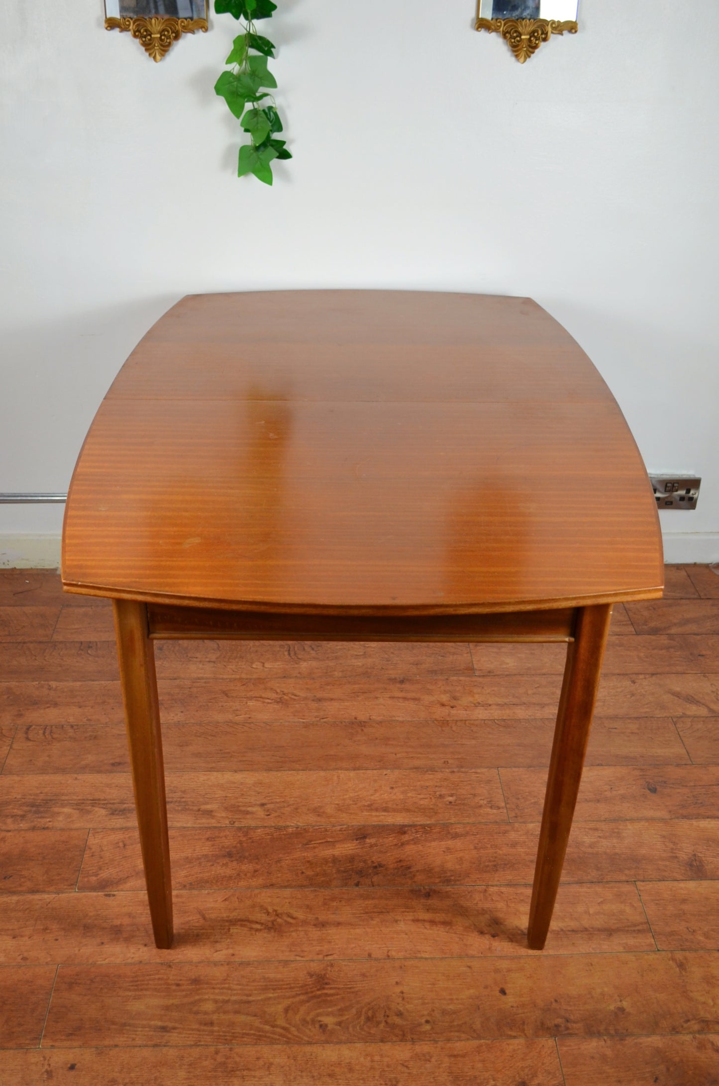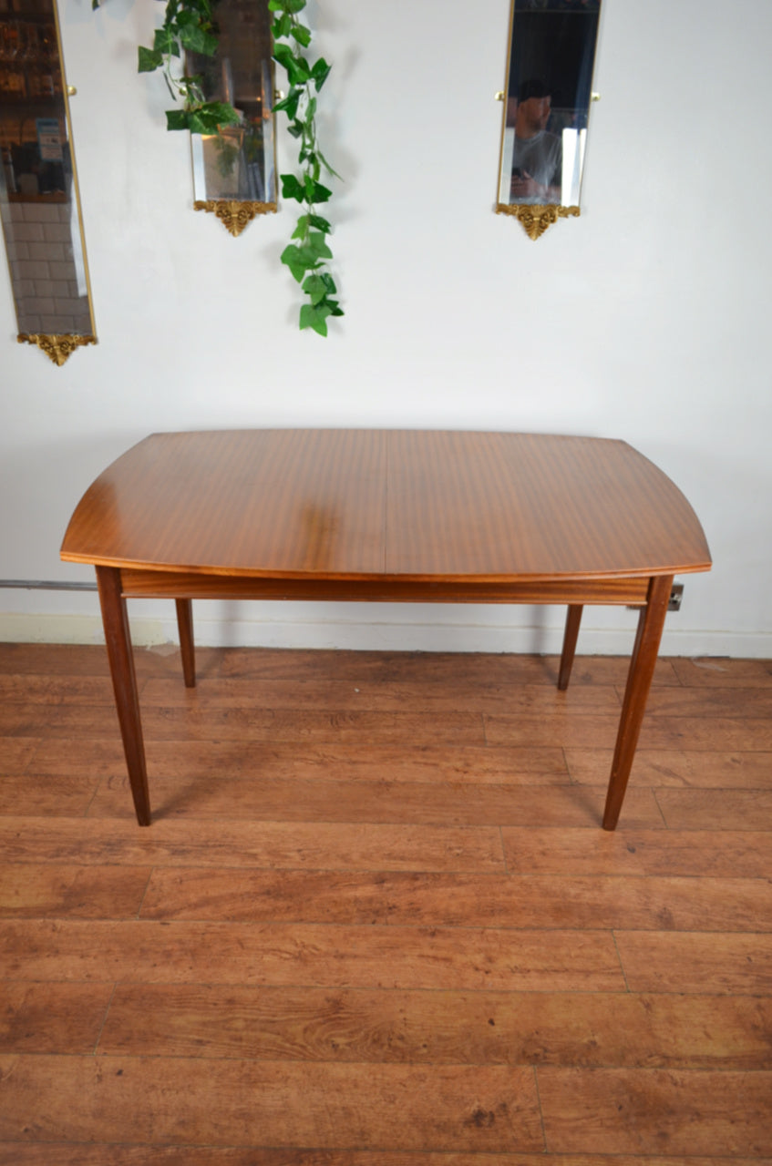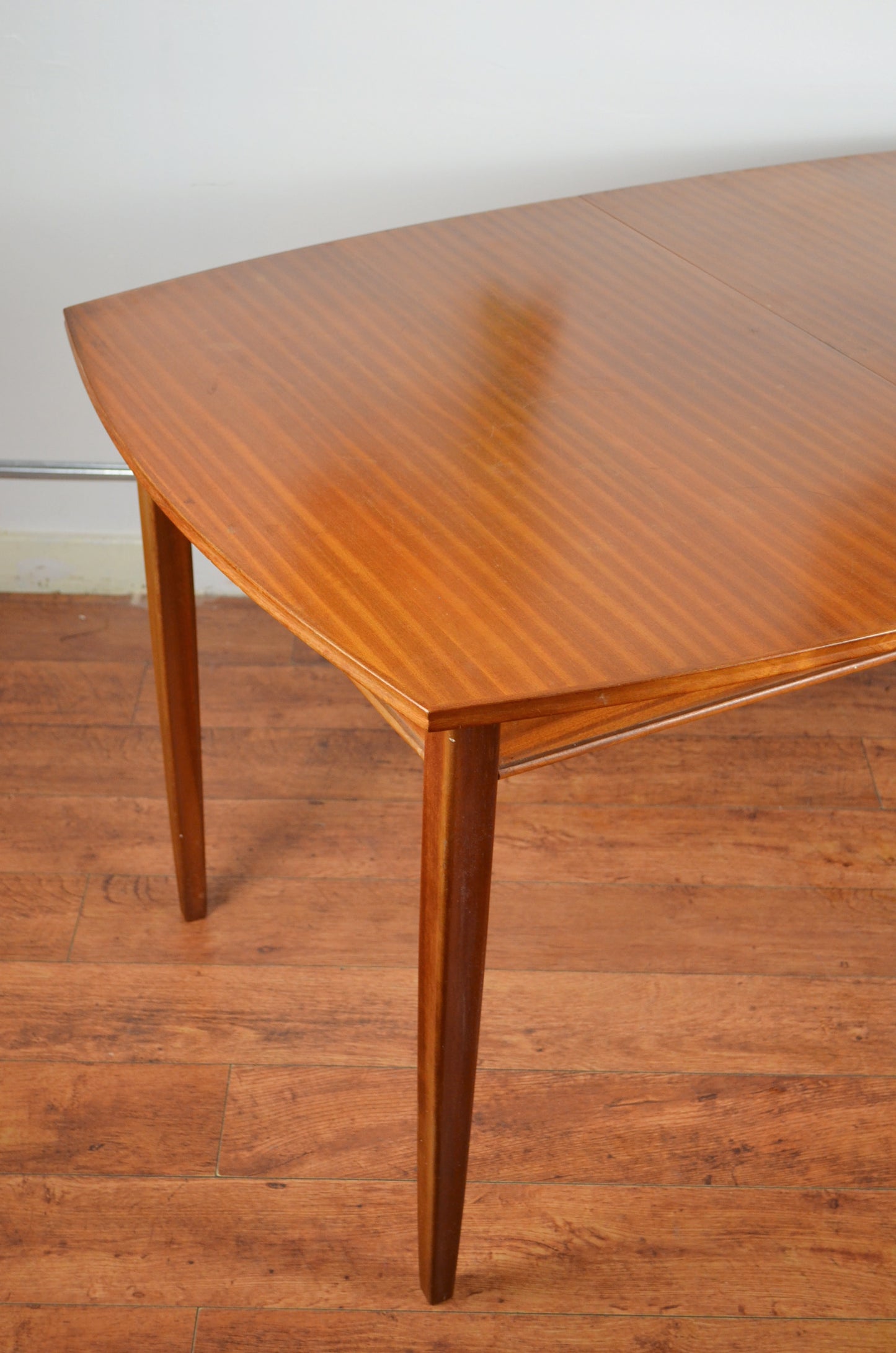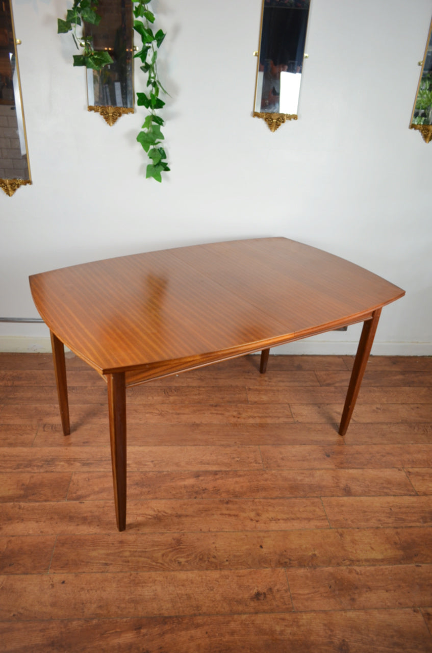 A mid-century extending dining table designed by Peter Haywood for Vanson. Stunning grain to the top raised on square legs.