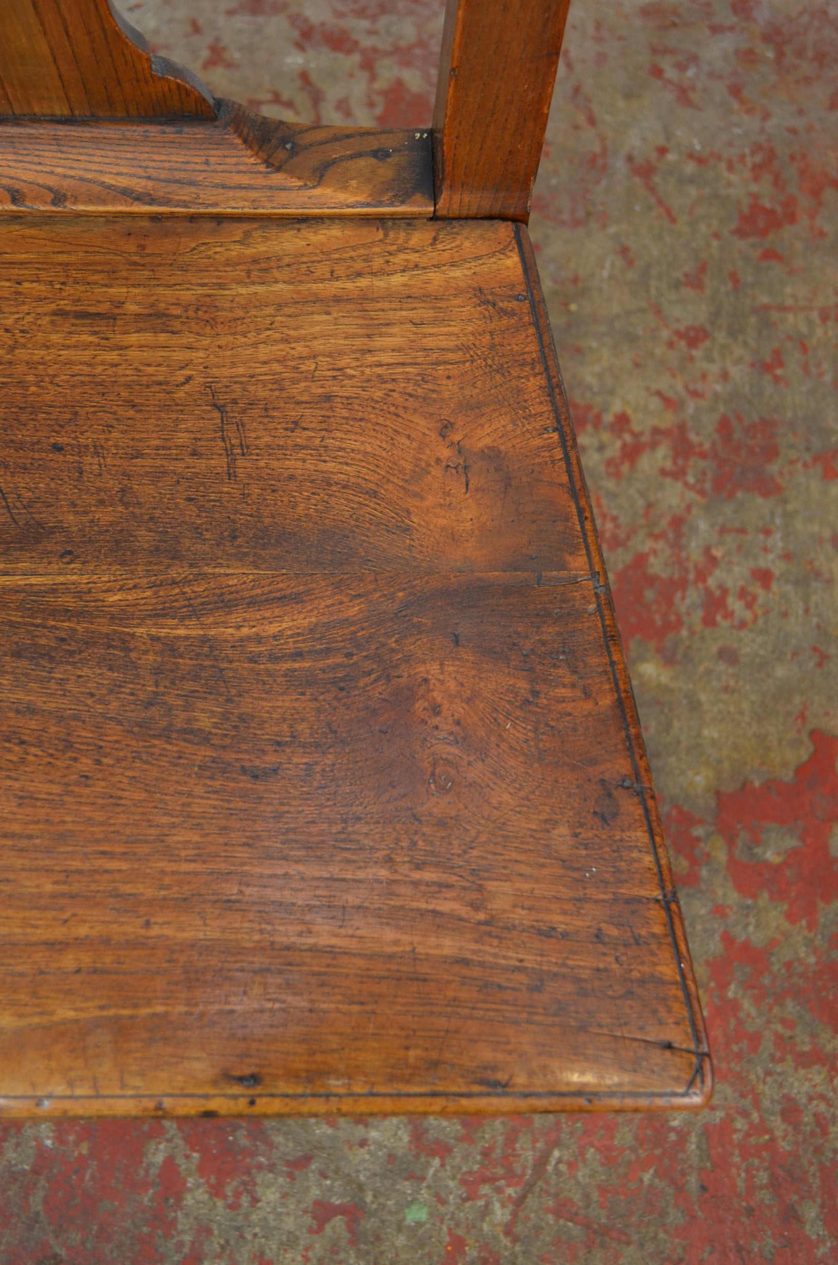 An antique oak country cottage/house Georgian dining chair with splat back over solid seats and square cut and moulded supports united by stretchers. I have another one in stock with the same unusually tall back also available.