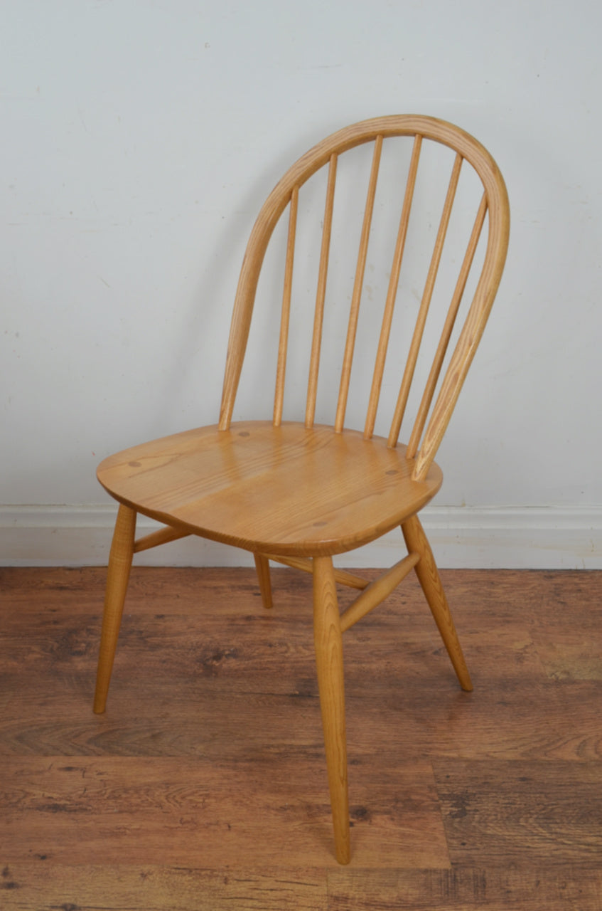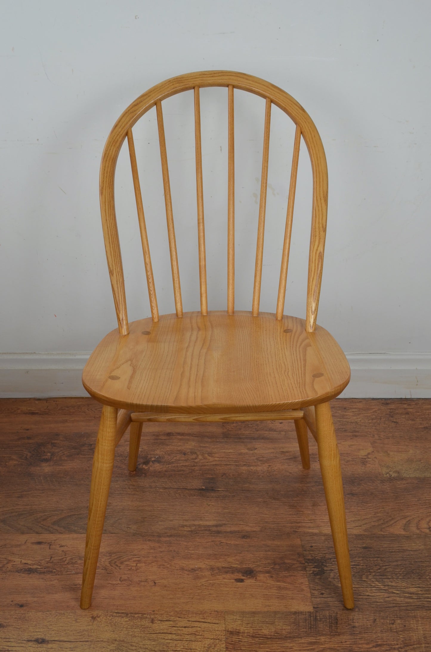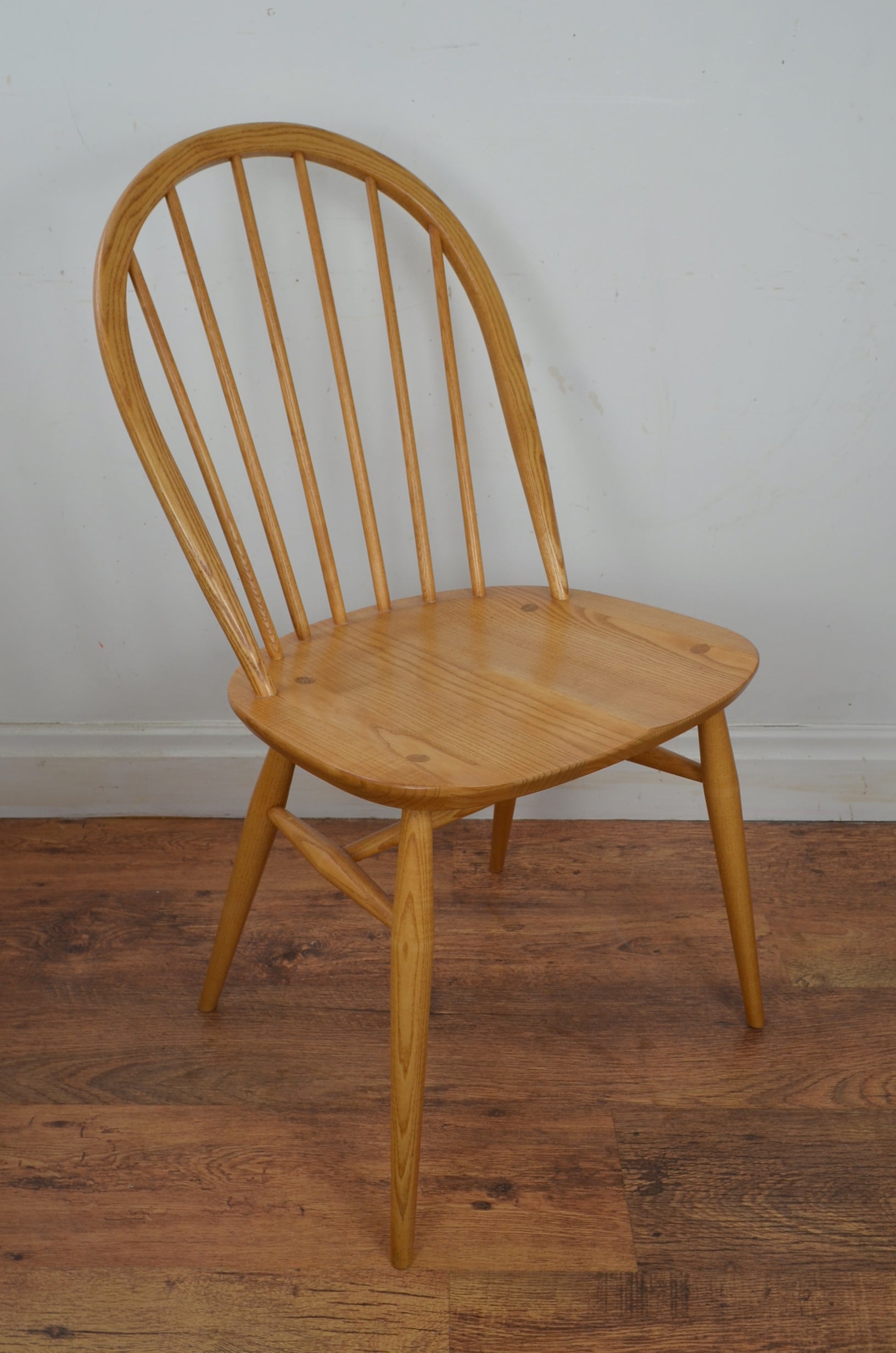 A mid-century design inspired by the Windsor Chair by Ercol, carved from solid wood with ergonomic shaping.