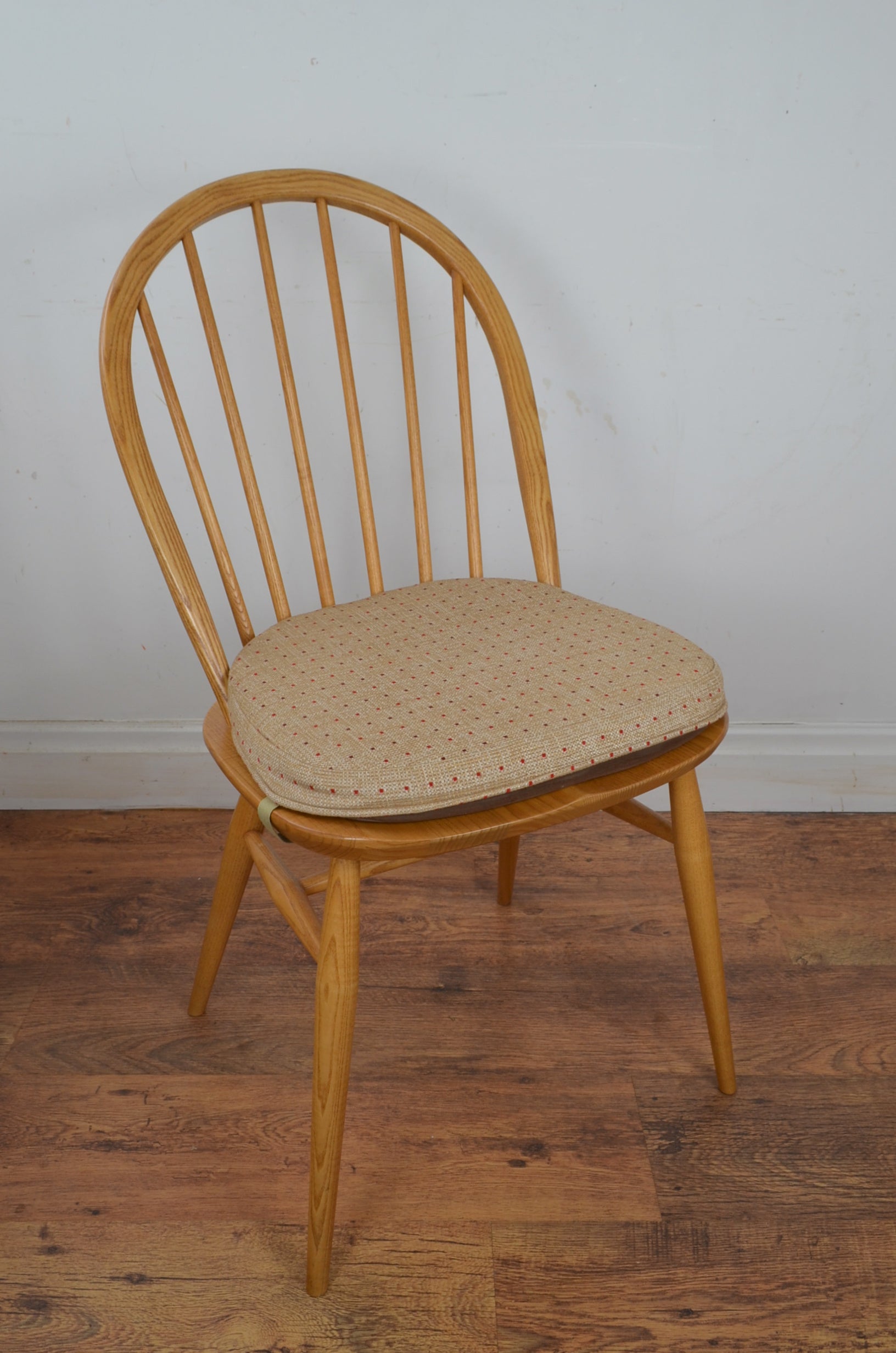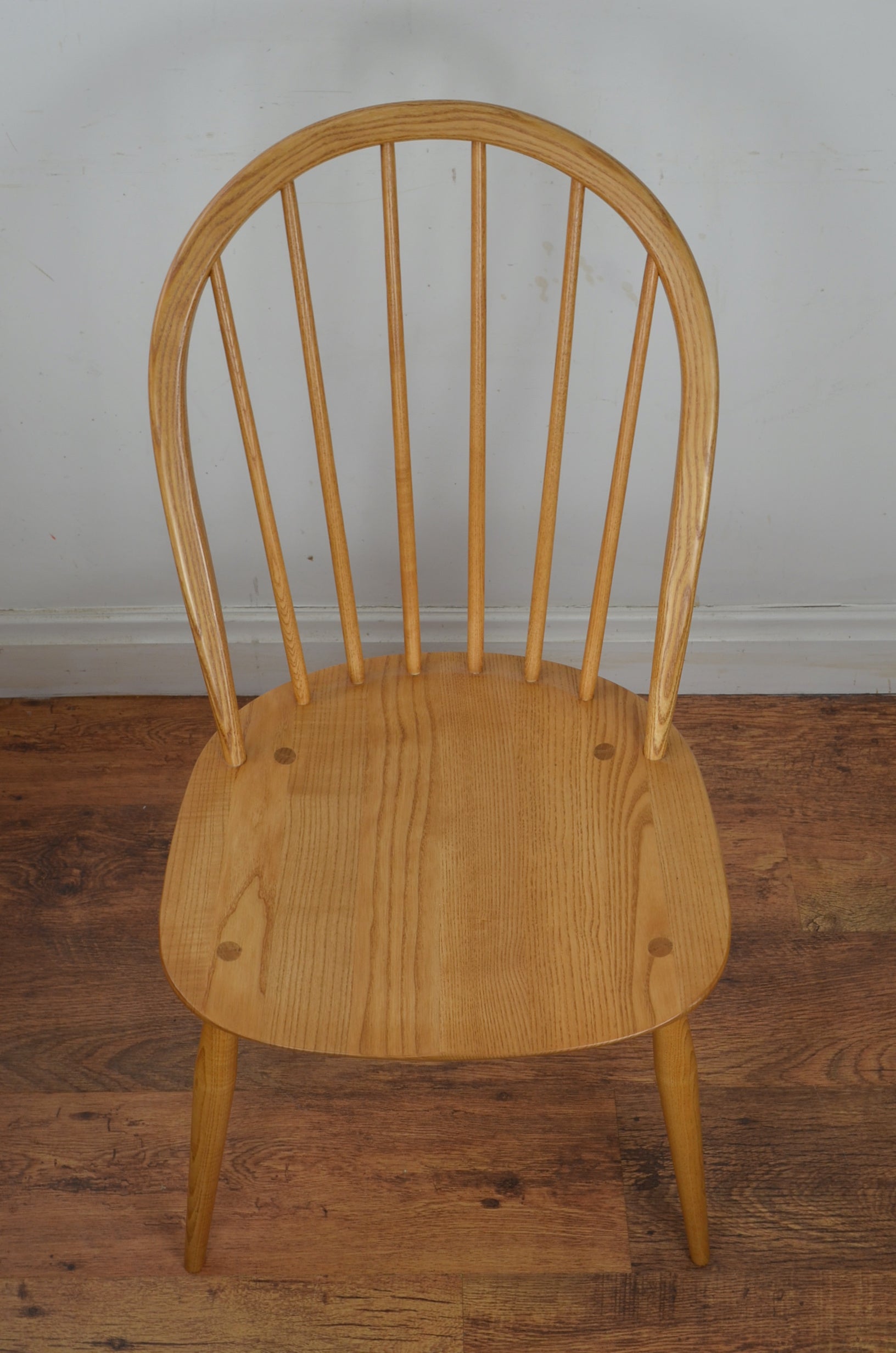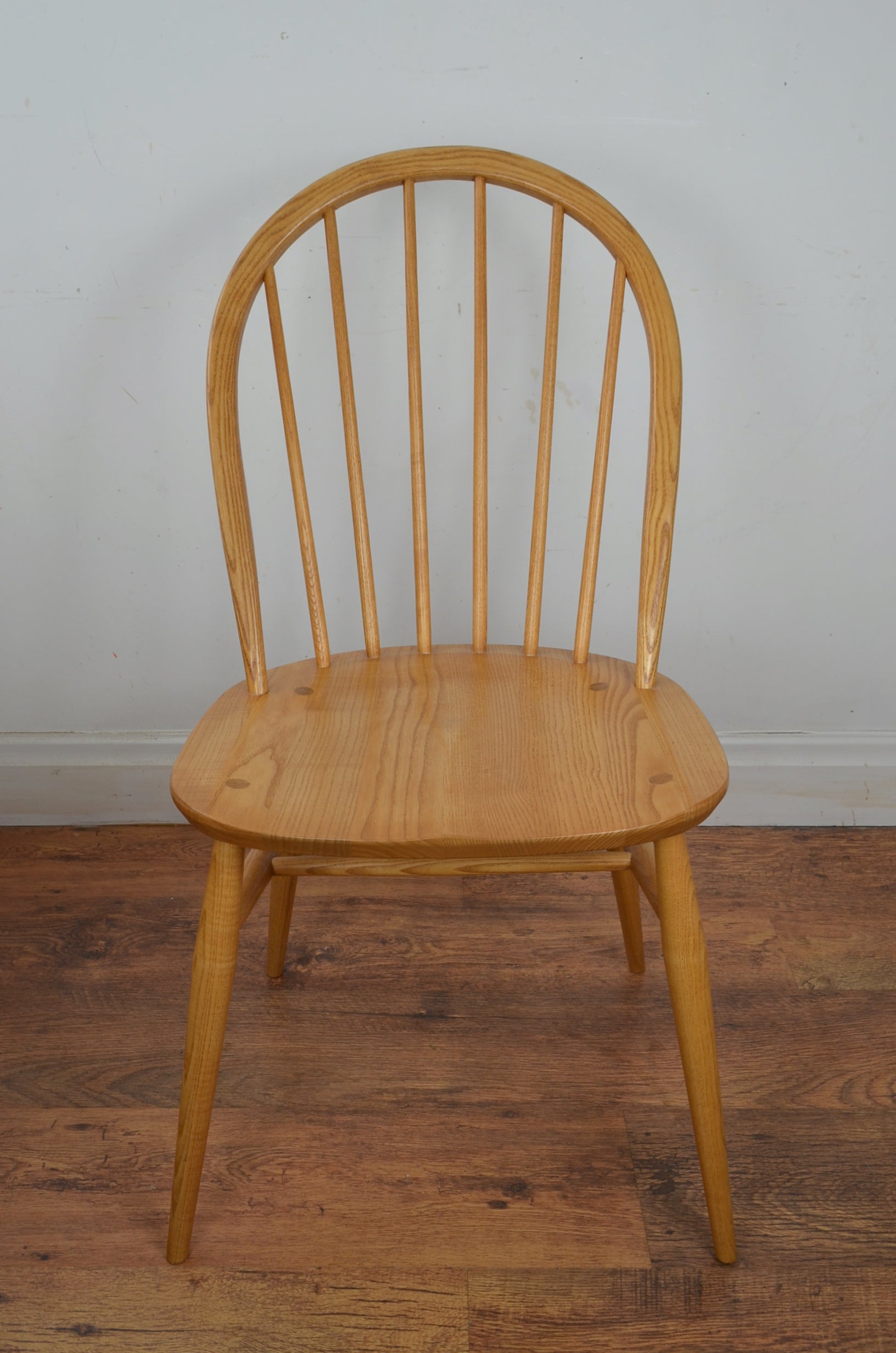 A mid-century design inspired by the Windsor Chair by Ercol, carved from solid wood with ergonomic shaping.