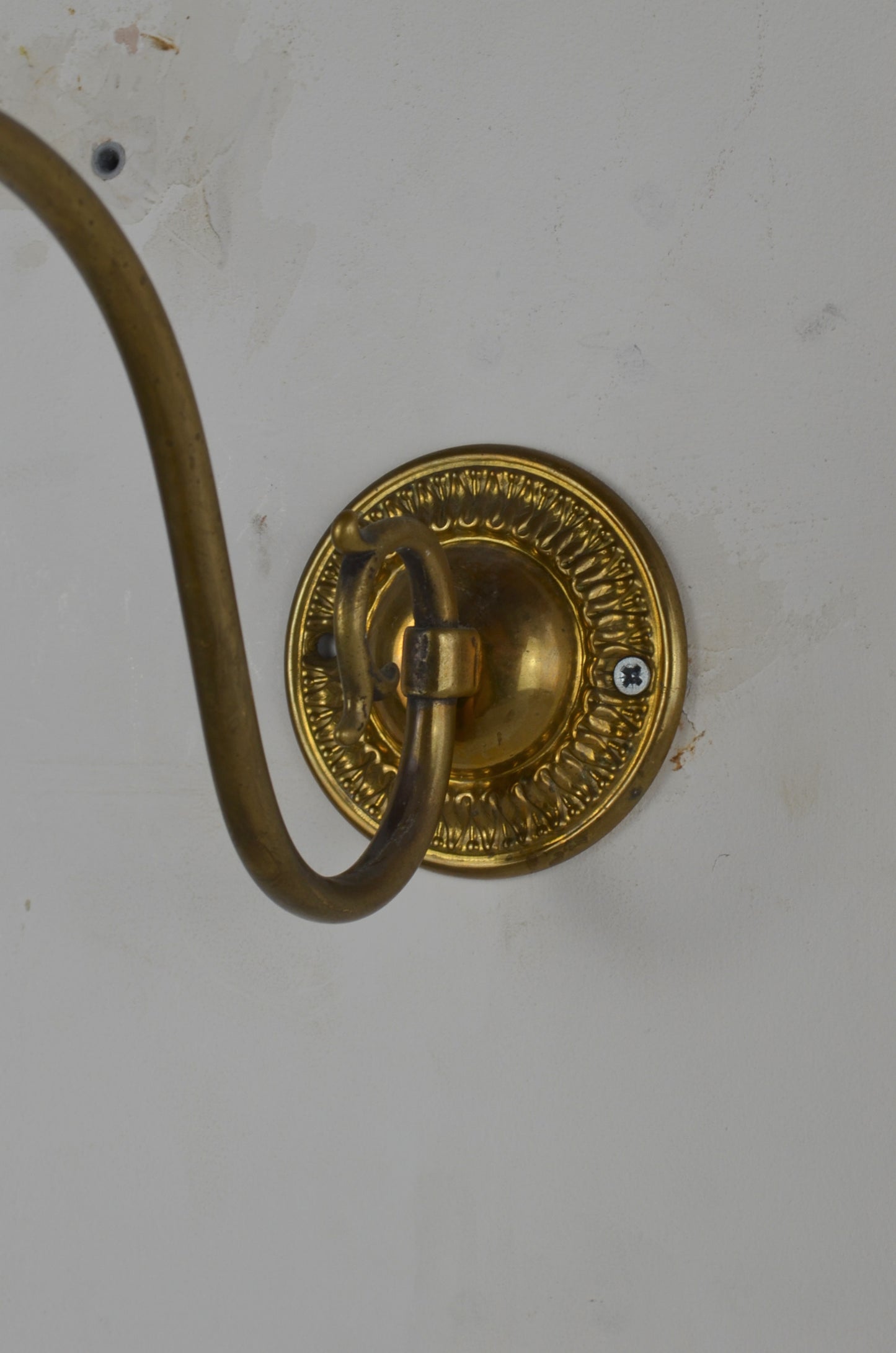 A set of six vintage antique brass light fittings with scalloped shades in good condition but with nice signs of age.