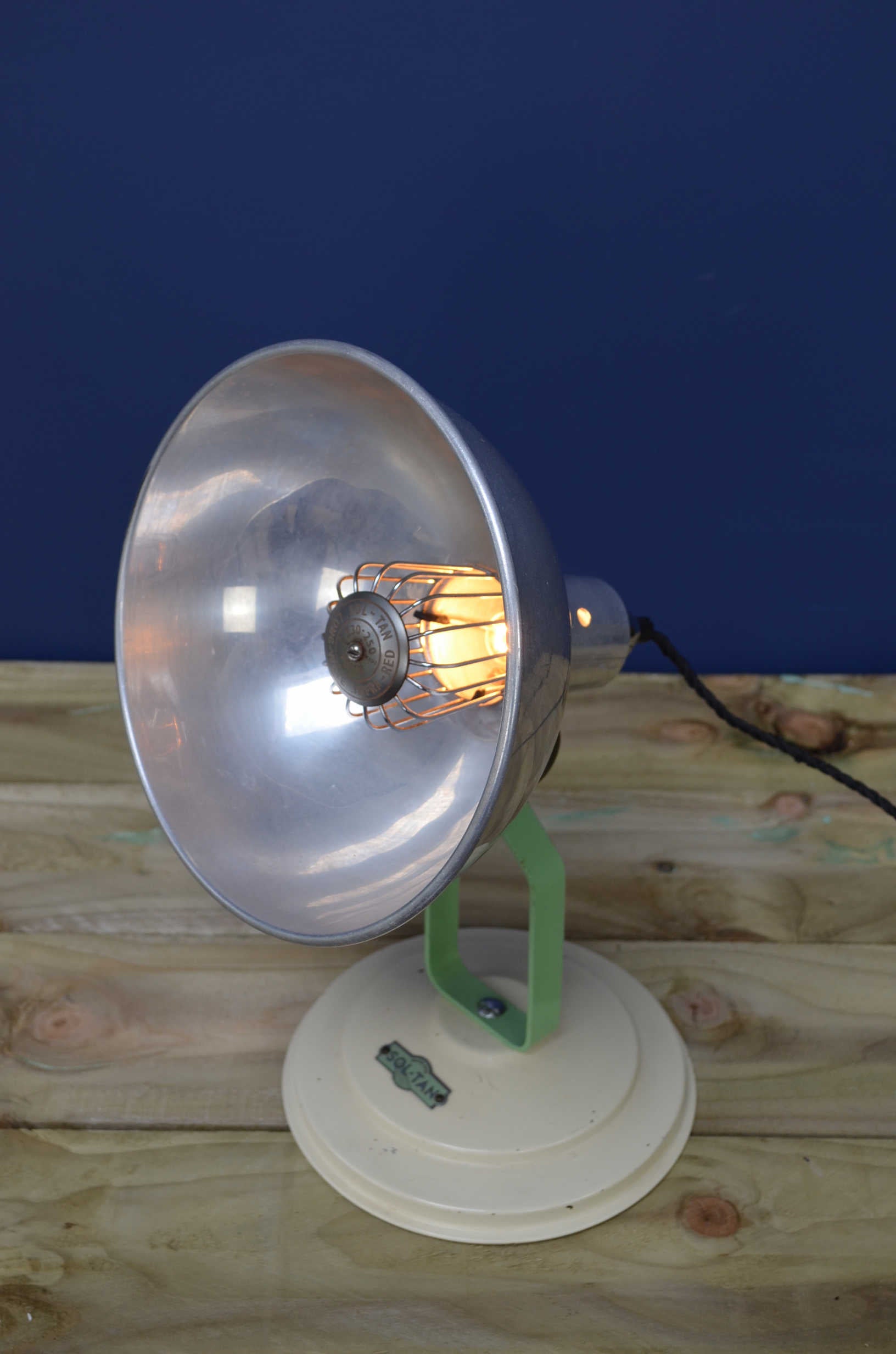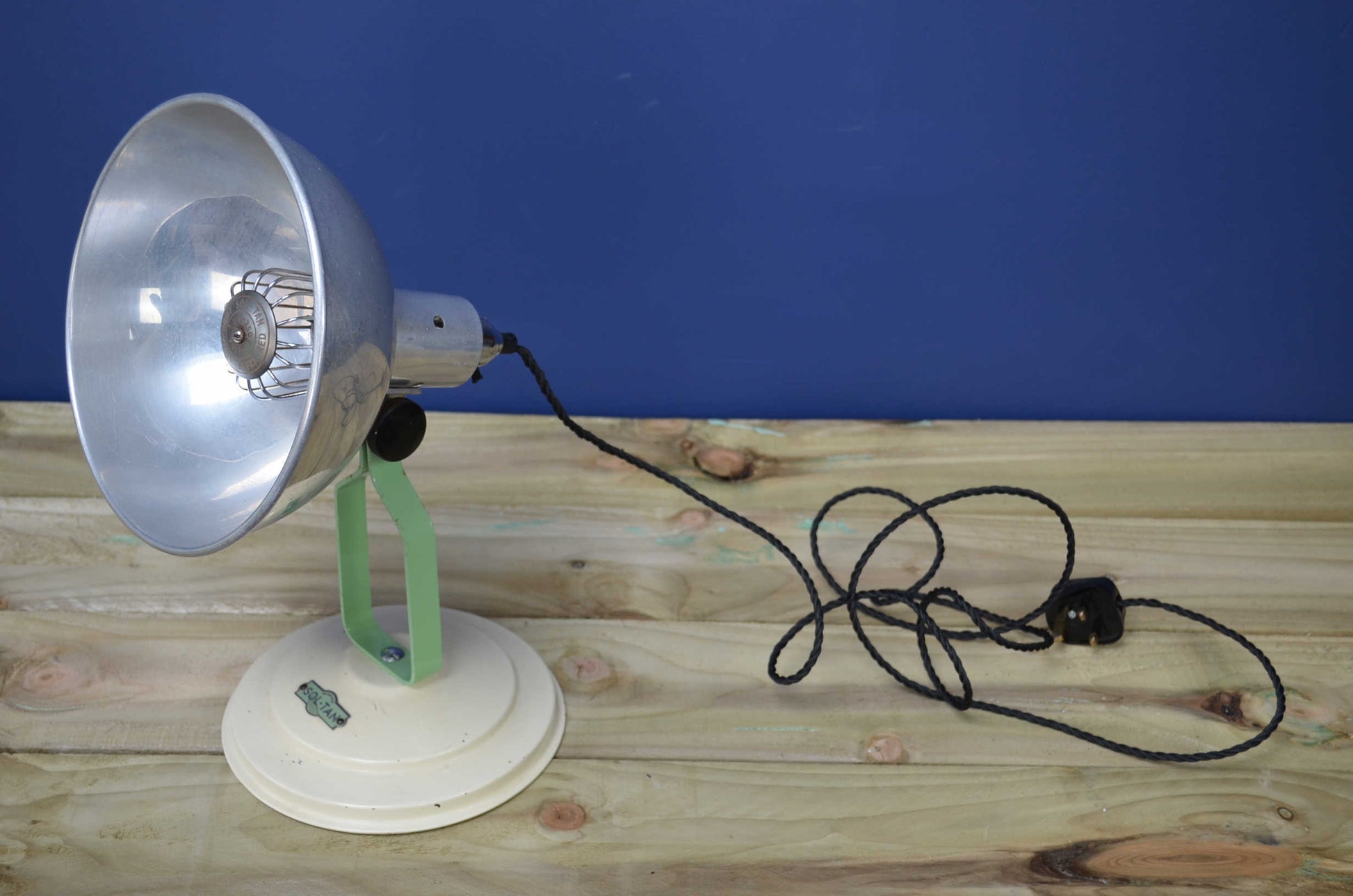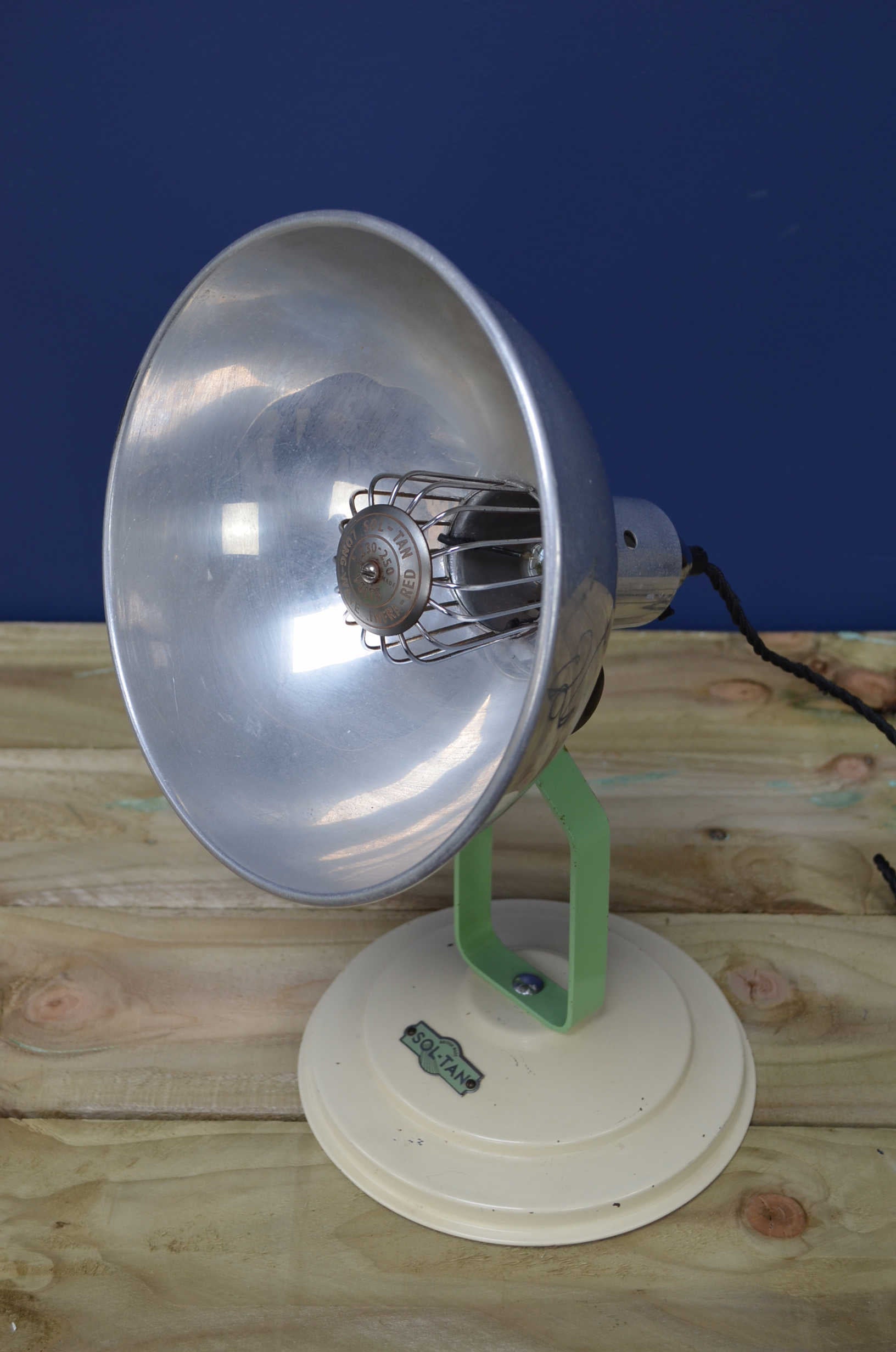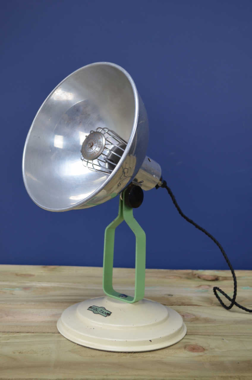 British made Sol-Tan sun lamp converted into a desk lamp. Vintage design with a wonderful coloured neck and original manufactures plaque.