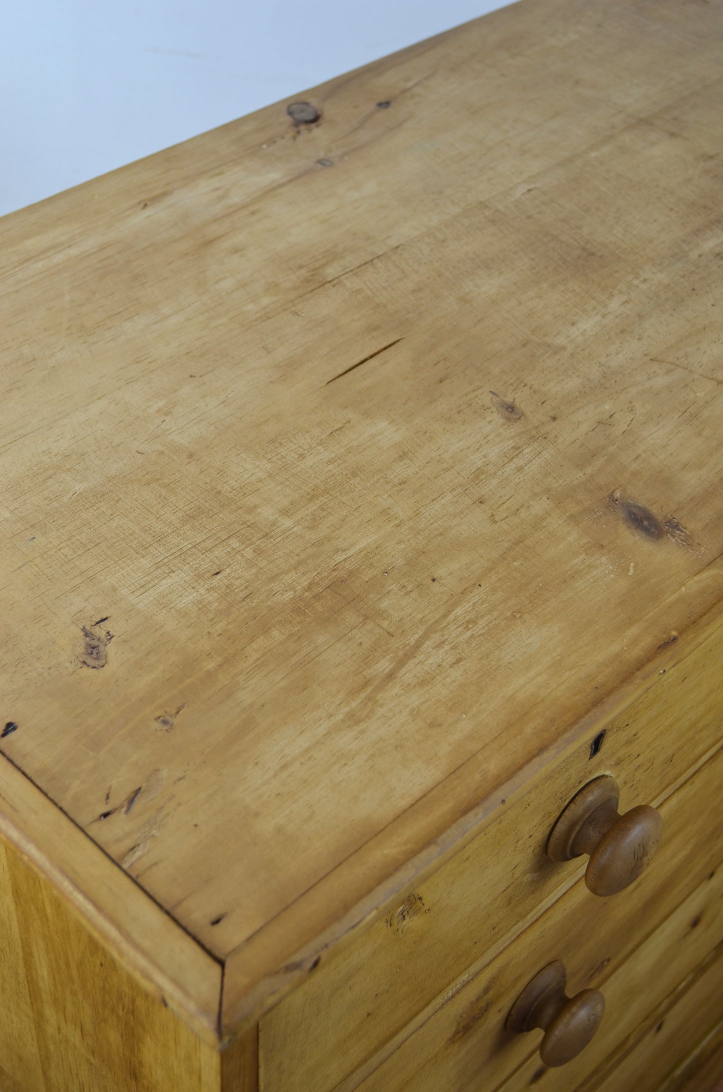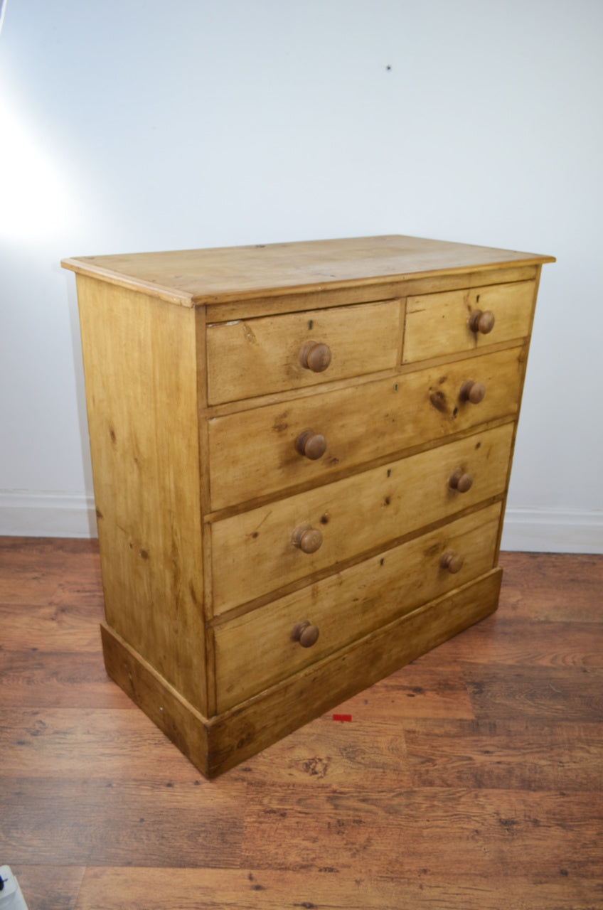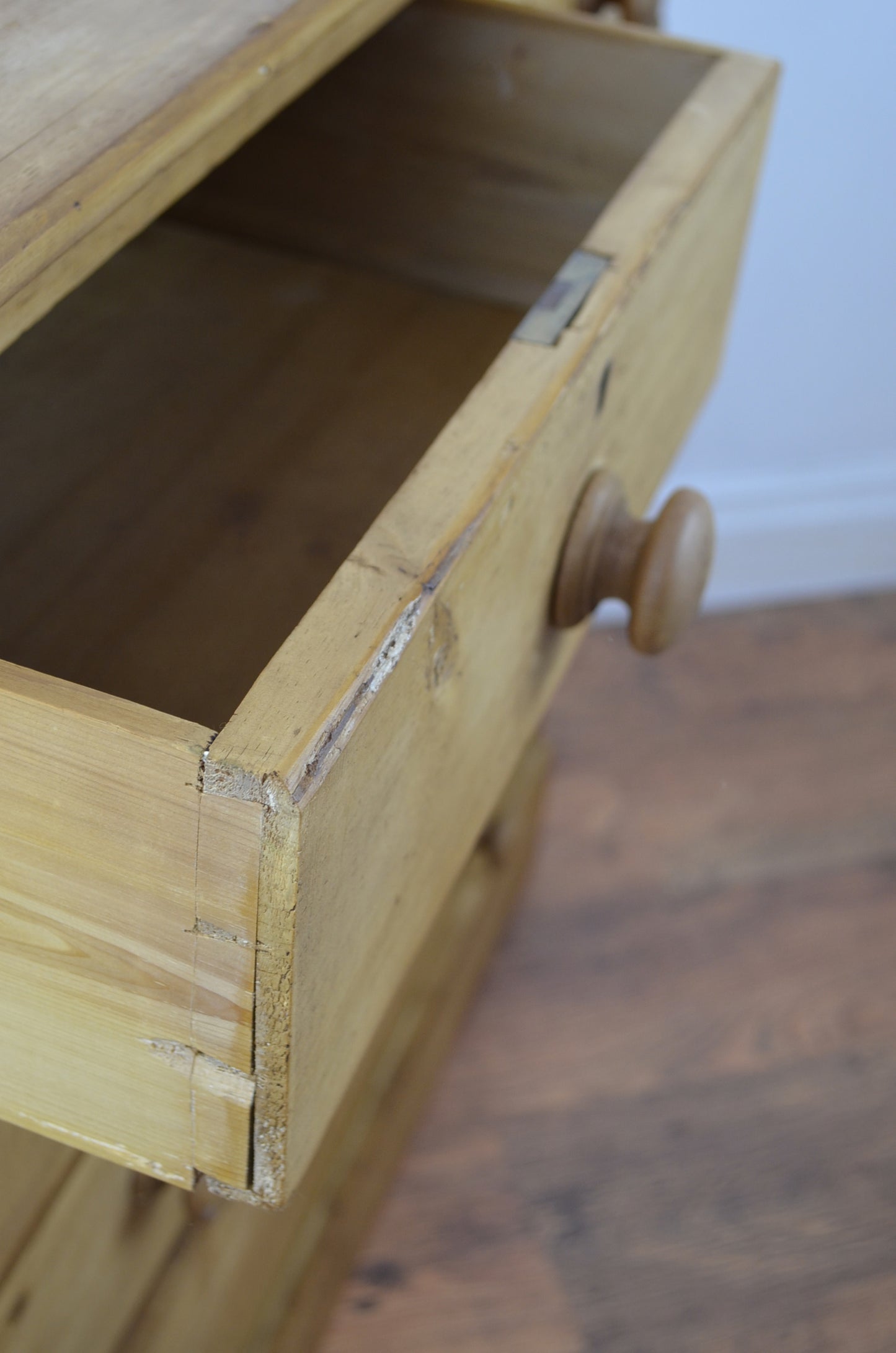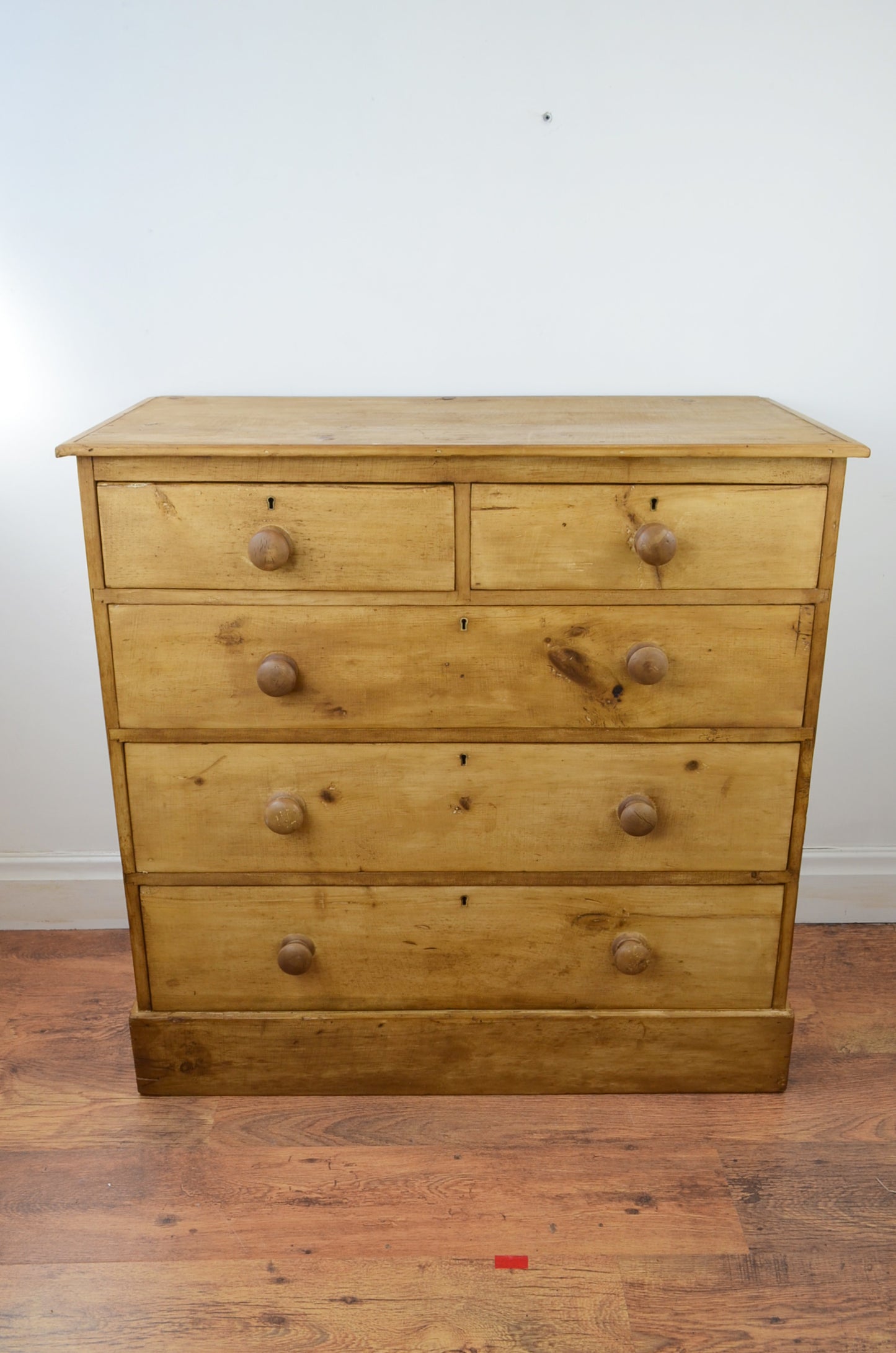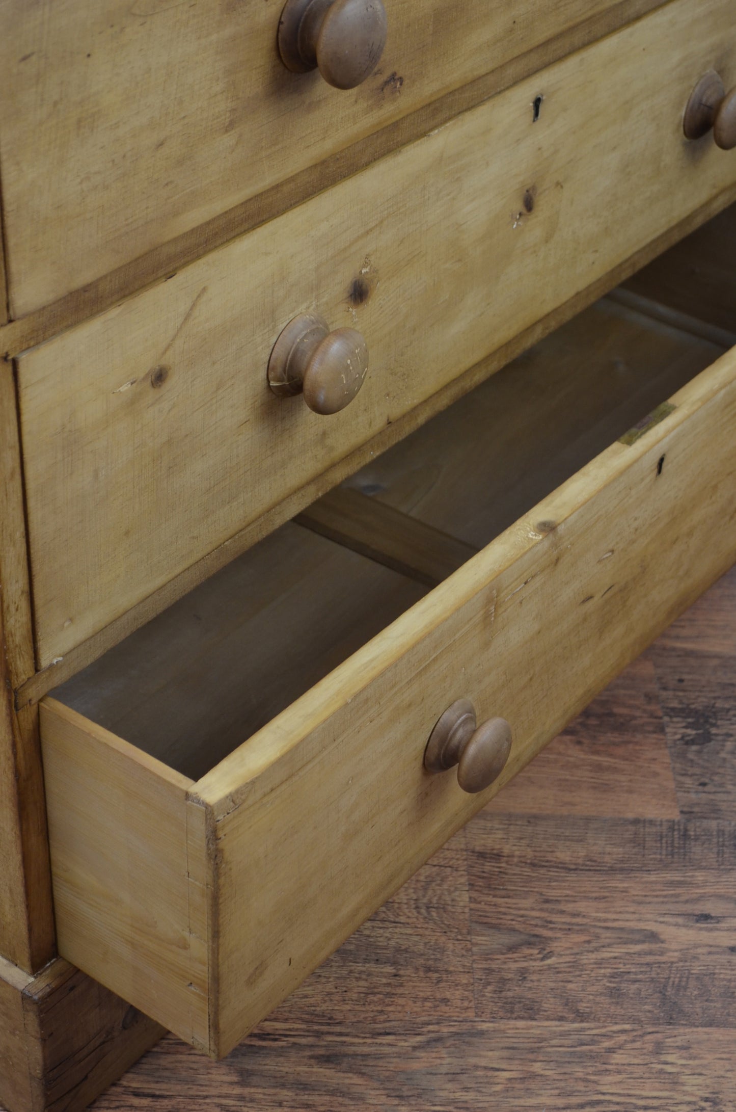 Country house style Victorian chests of drawers. Antique stripped pine, two over three drawers with pine handles.