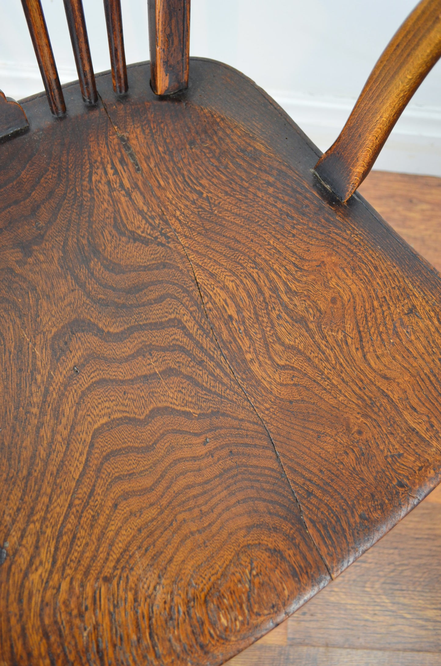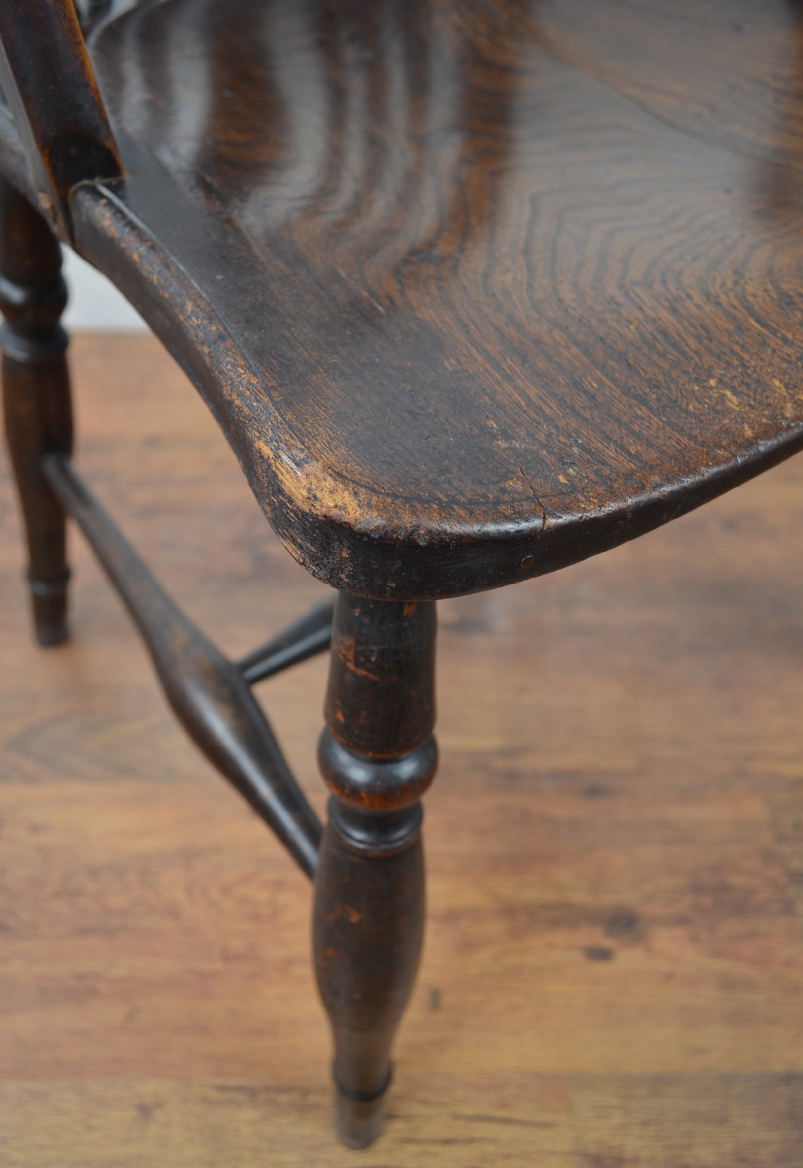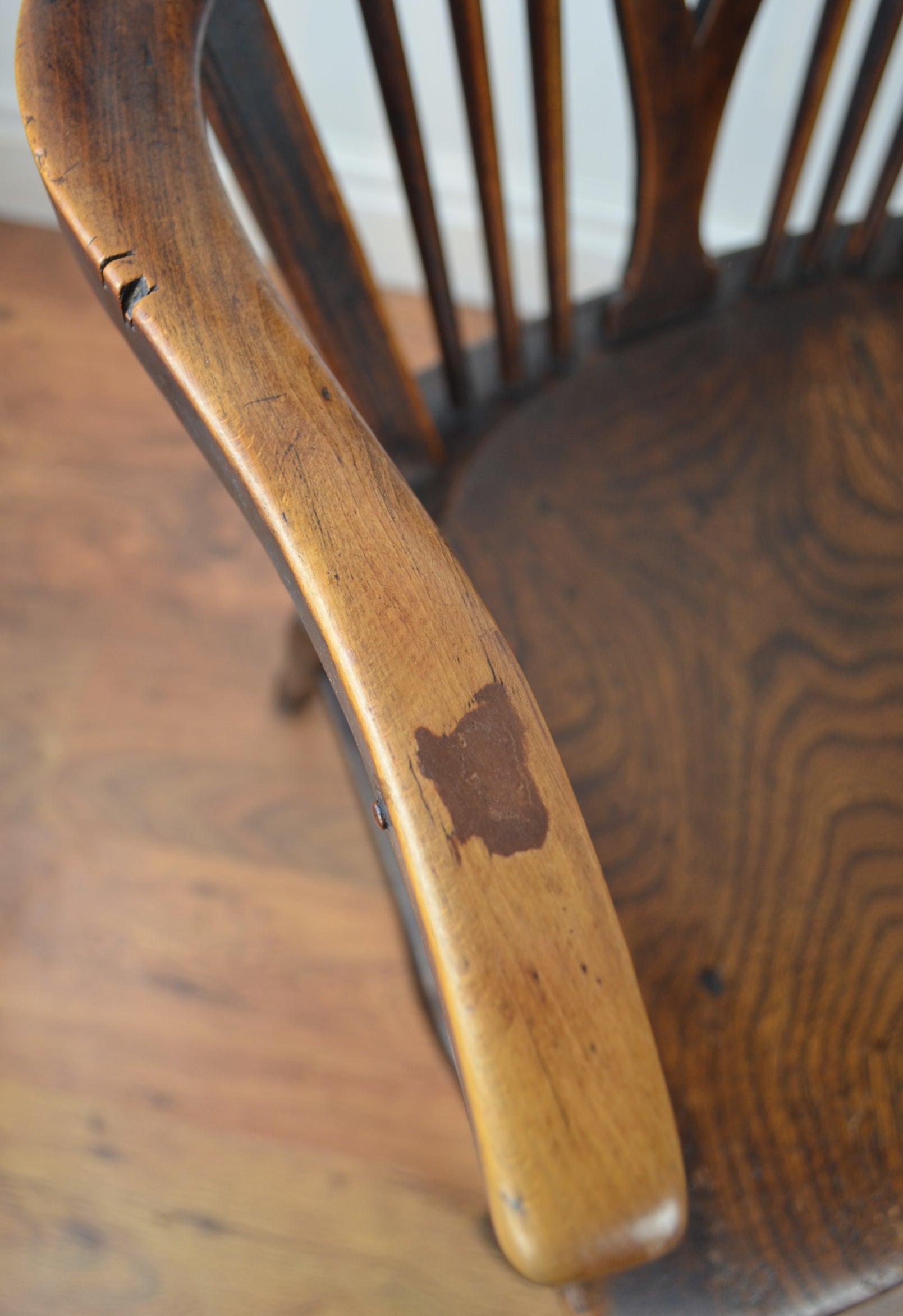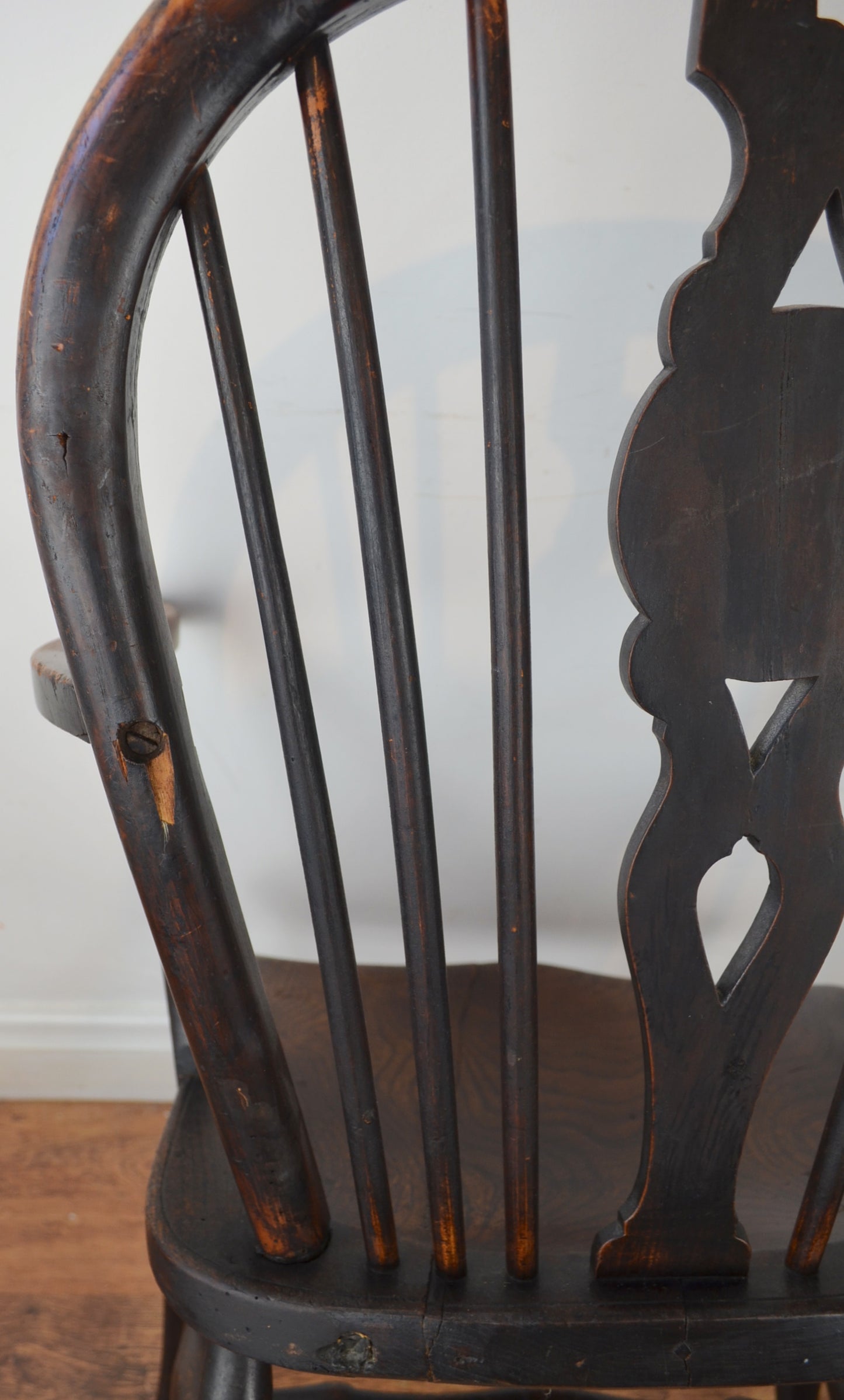 A Victorian beech and elm wheel back carver chair made in a traditional Winsor style. Great patina, with lots of the signs of use and character you would expect with age.