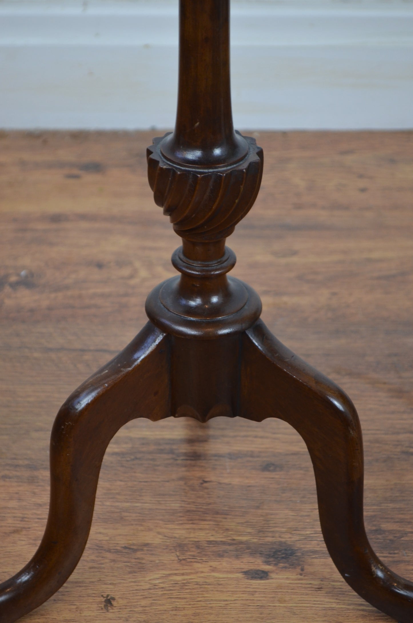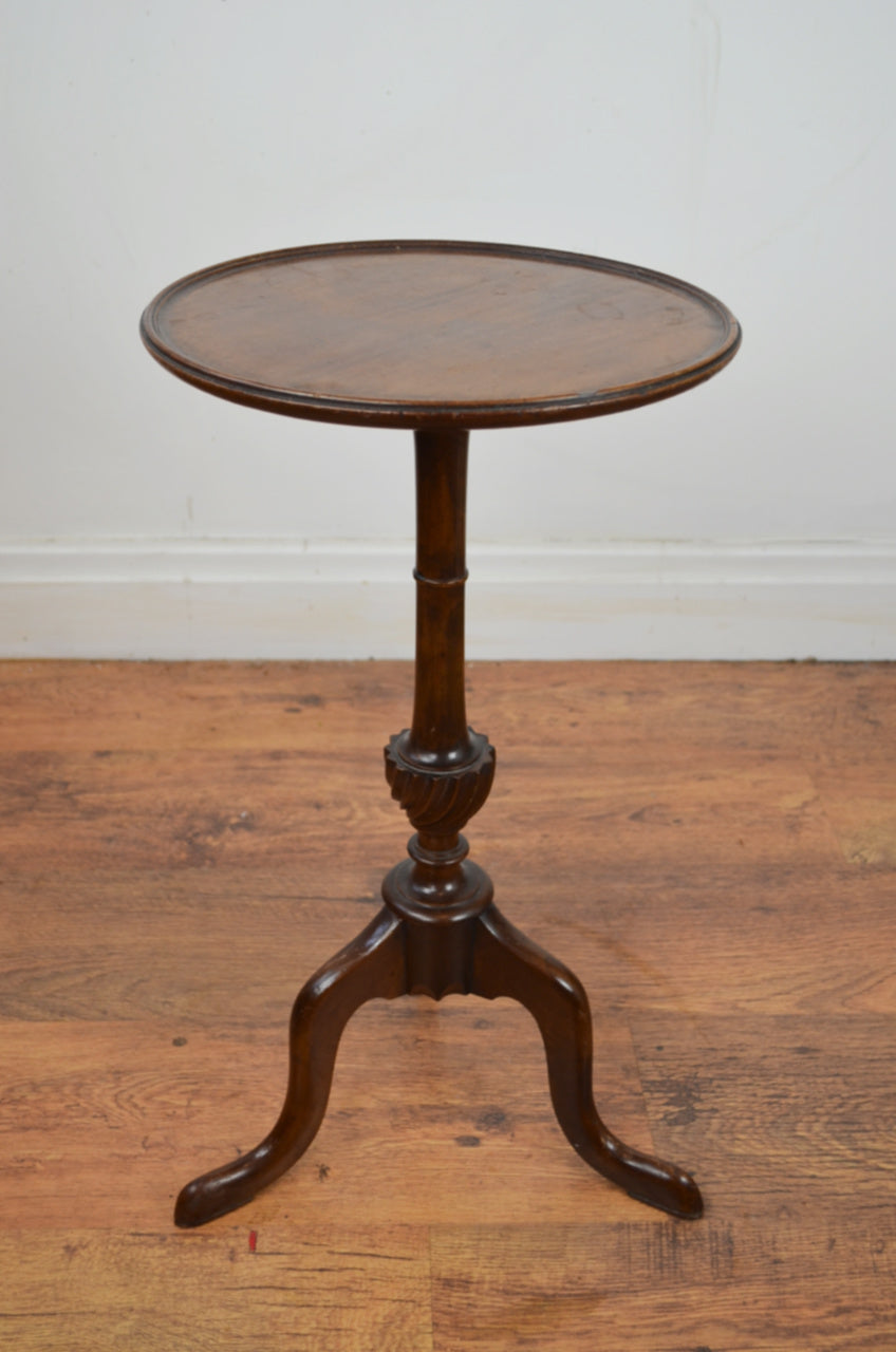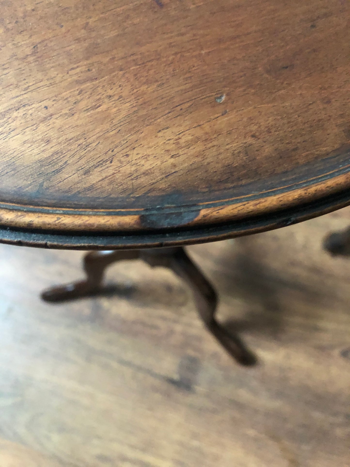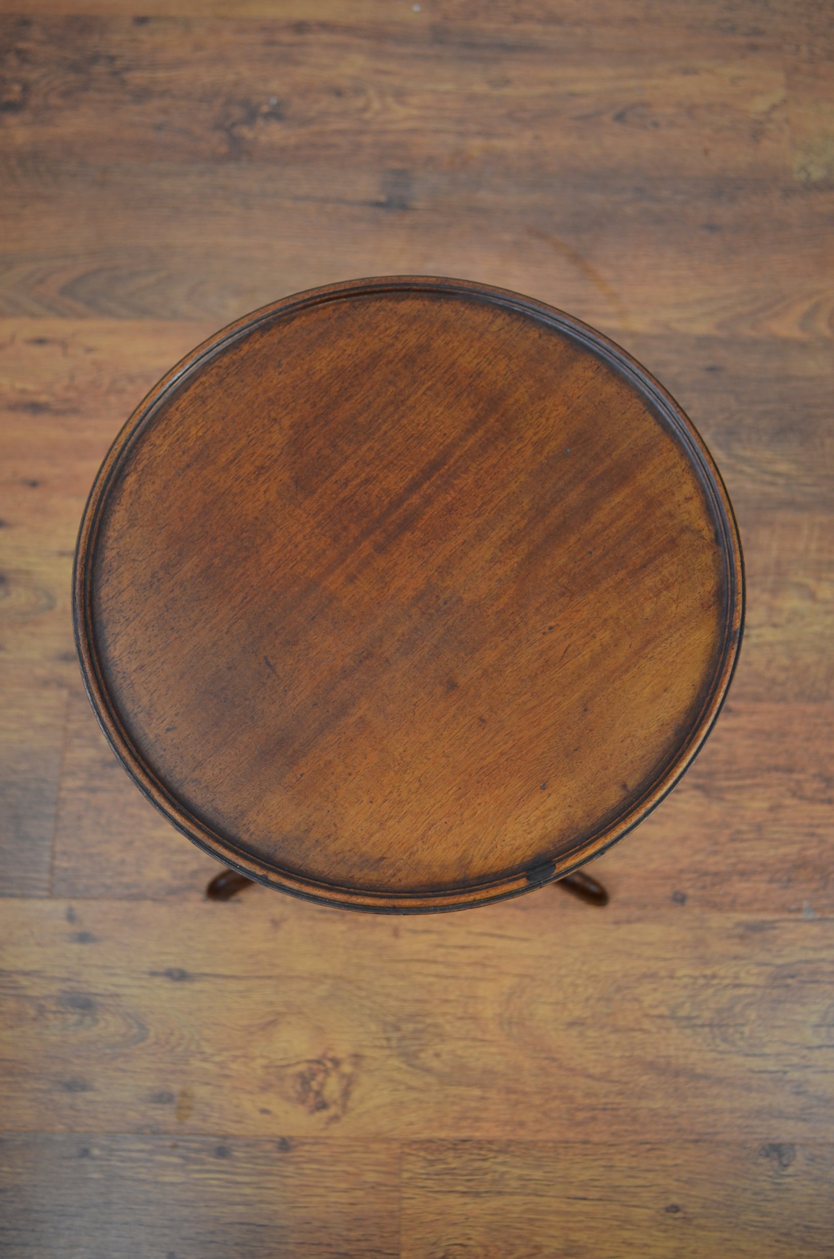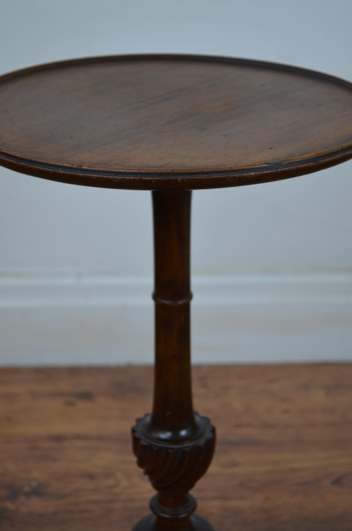 Victorian style vintage mahogany wine table of small proportions comprising of a decorative trim top on turned support, splayed legs.