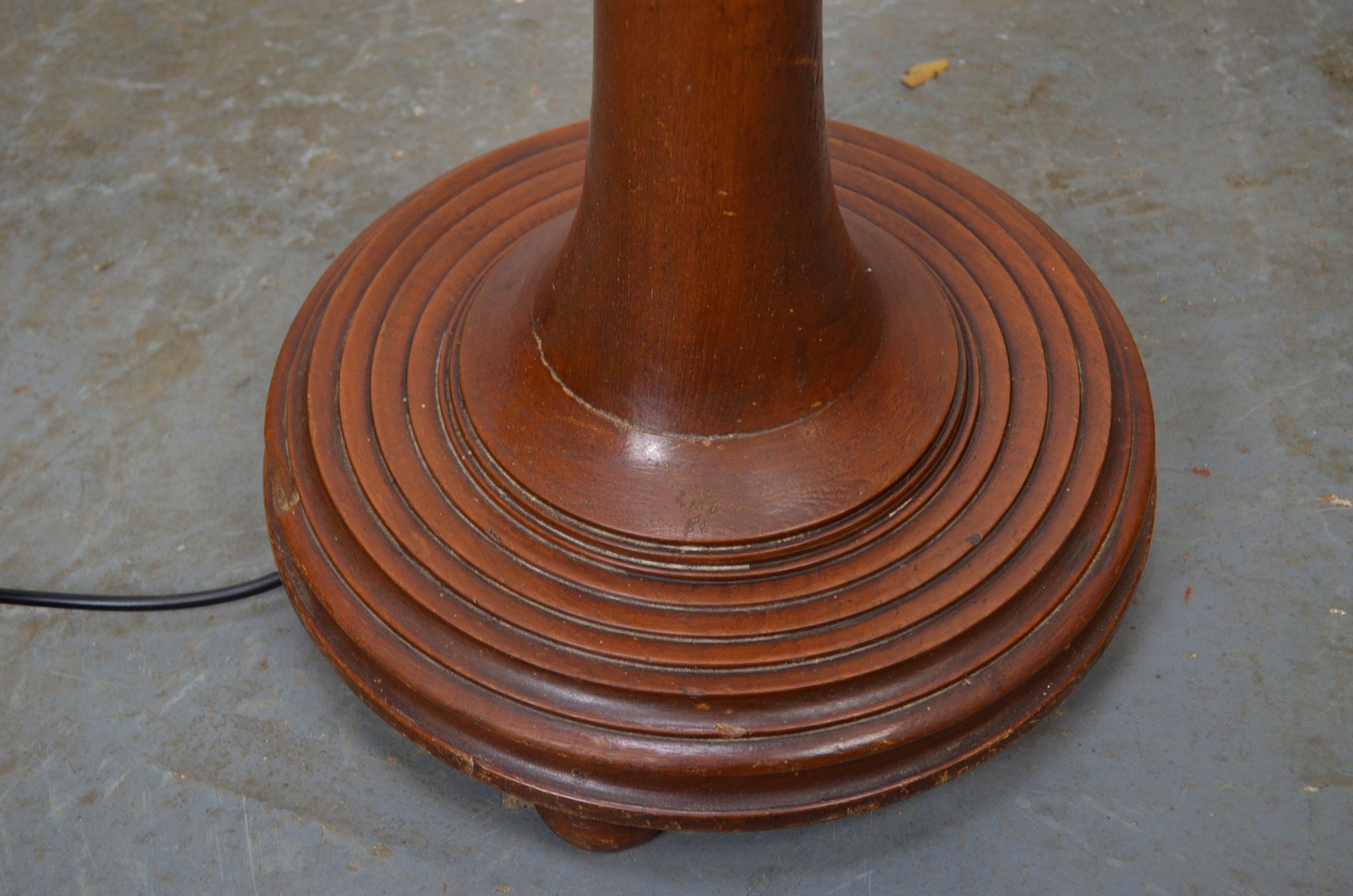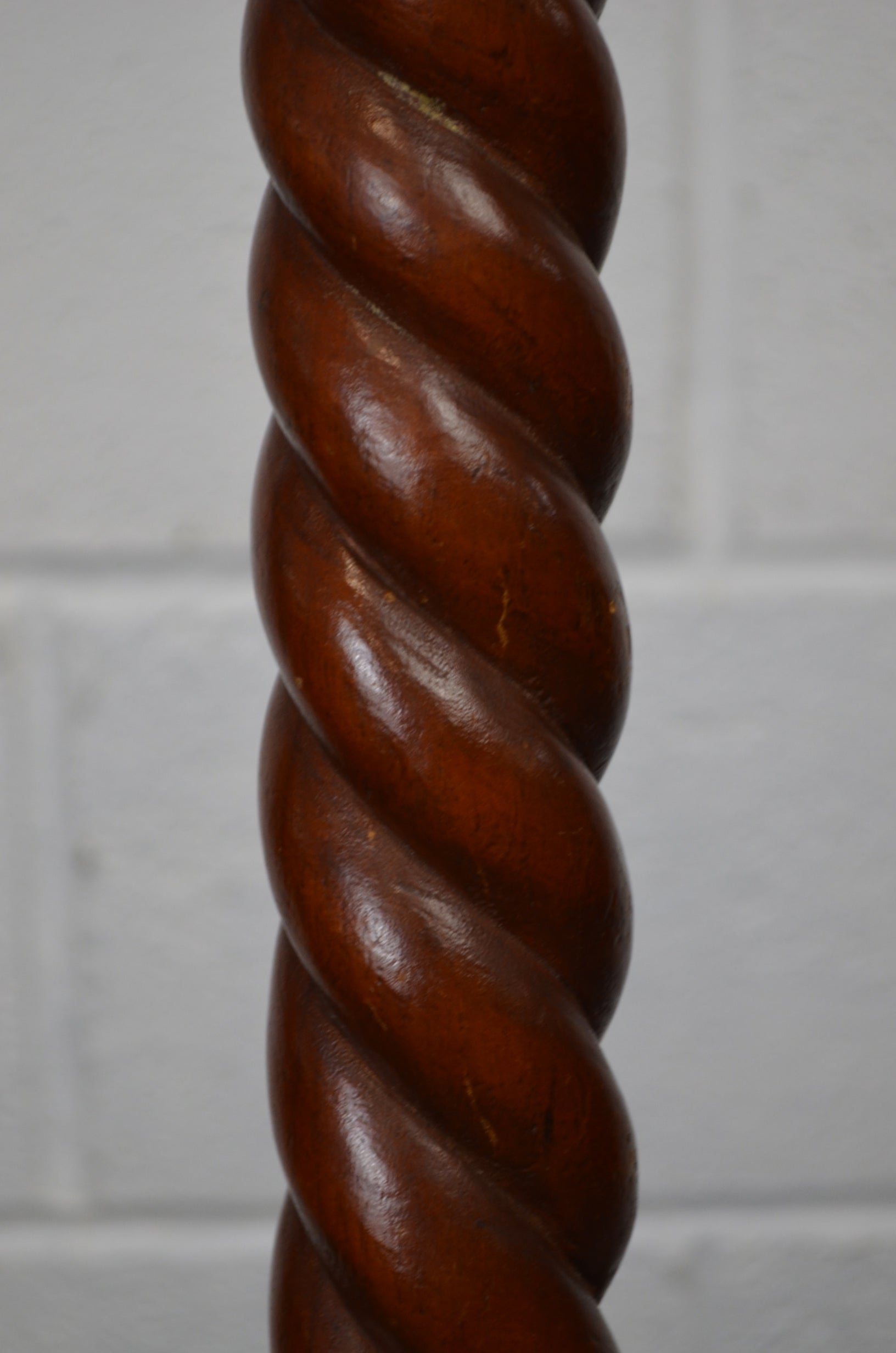 A fantastic quality early 20th century barley twist standard lamp. The lamp raised on a turned base with tapered geometric faceted central column.