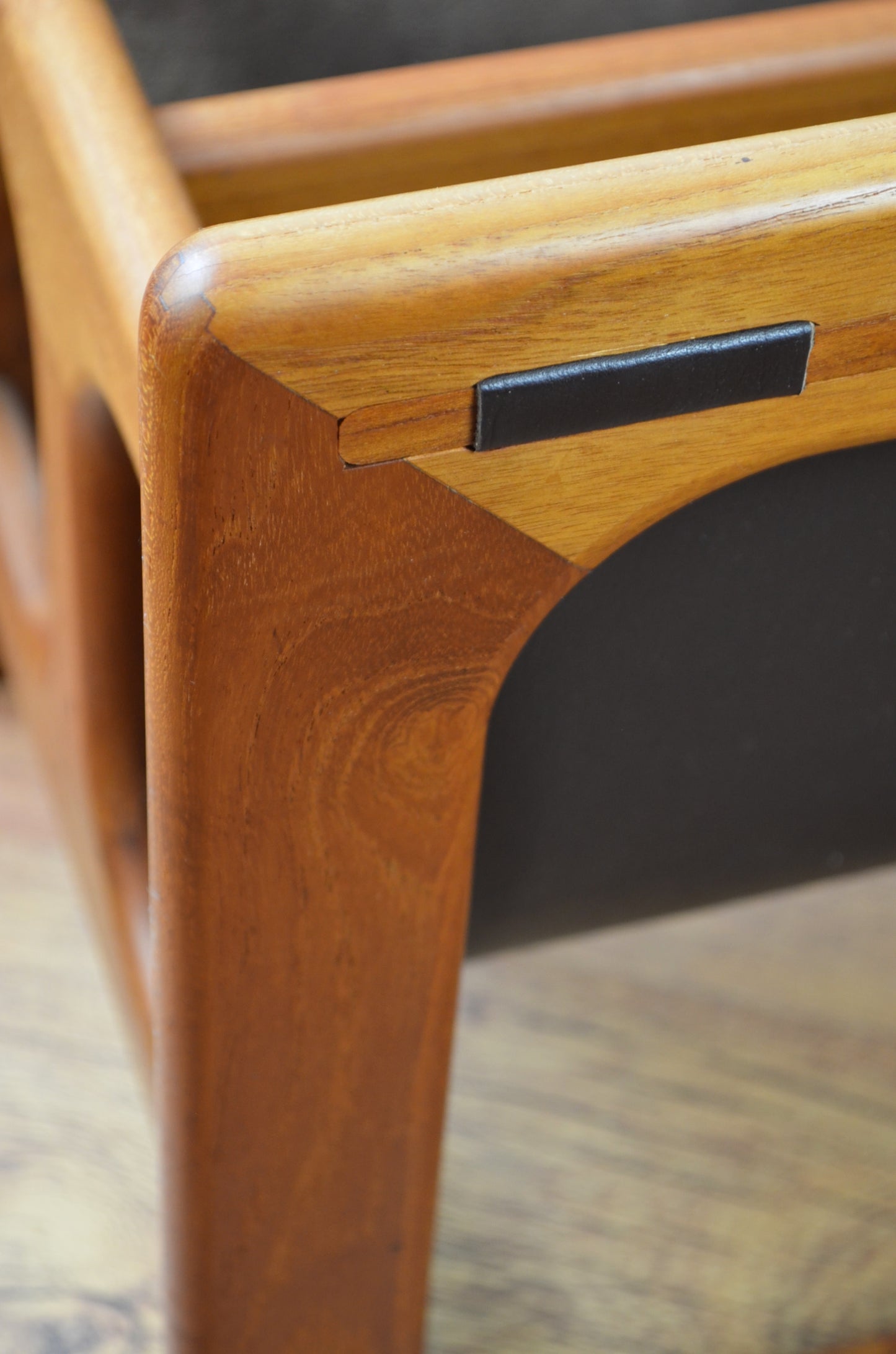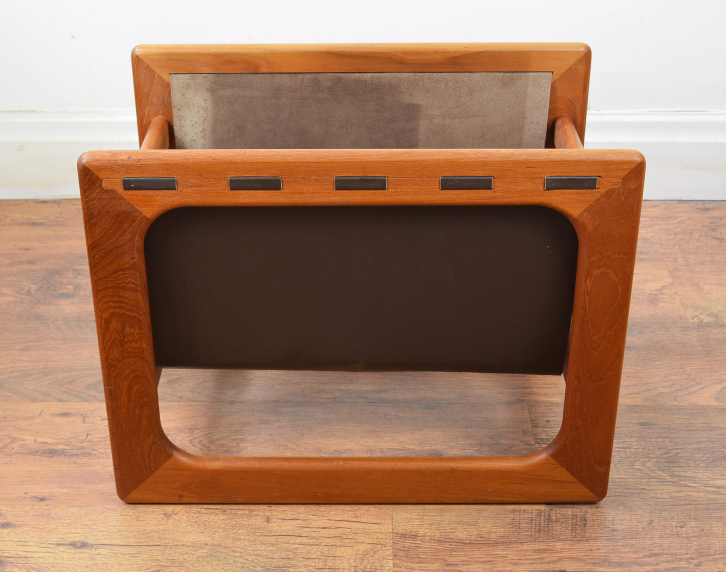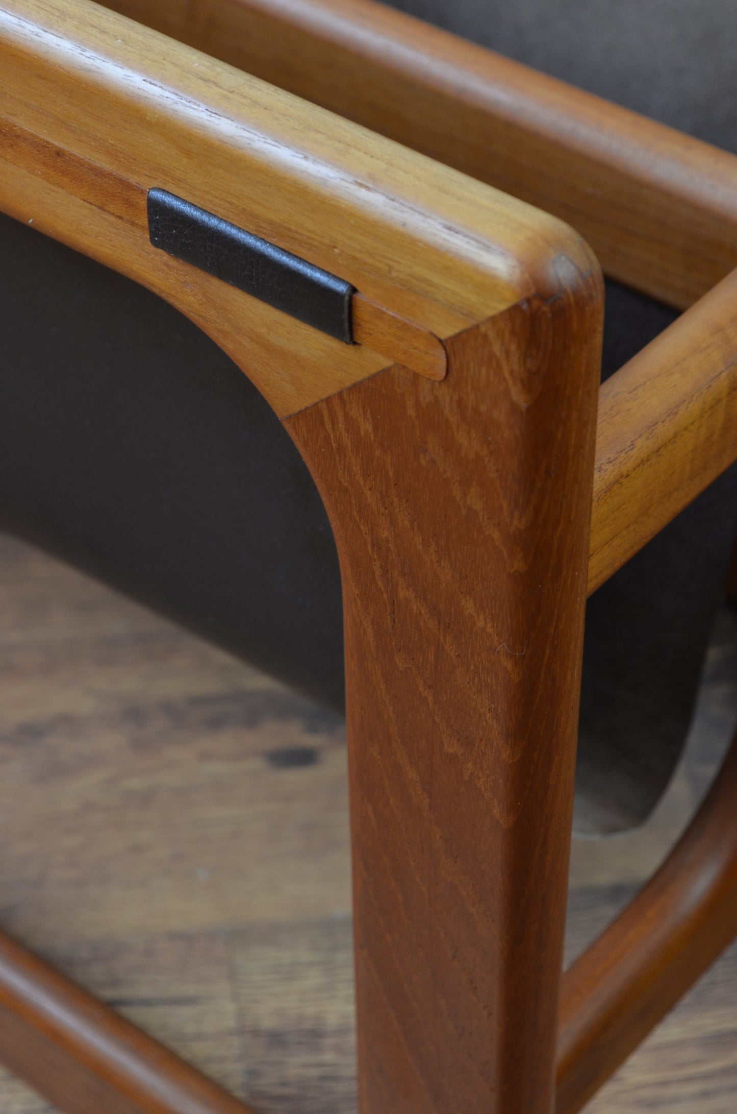 A mid century Aksel Kjersgaard for Salin Moblers magazine rack made of teak and suede leather made in Denmark in the 1960s.