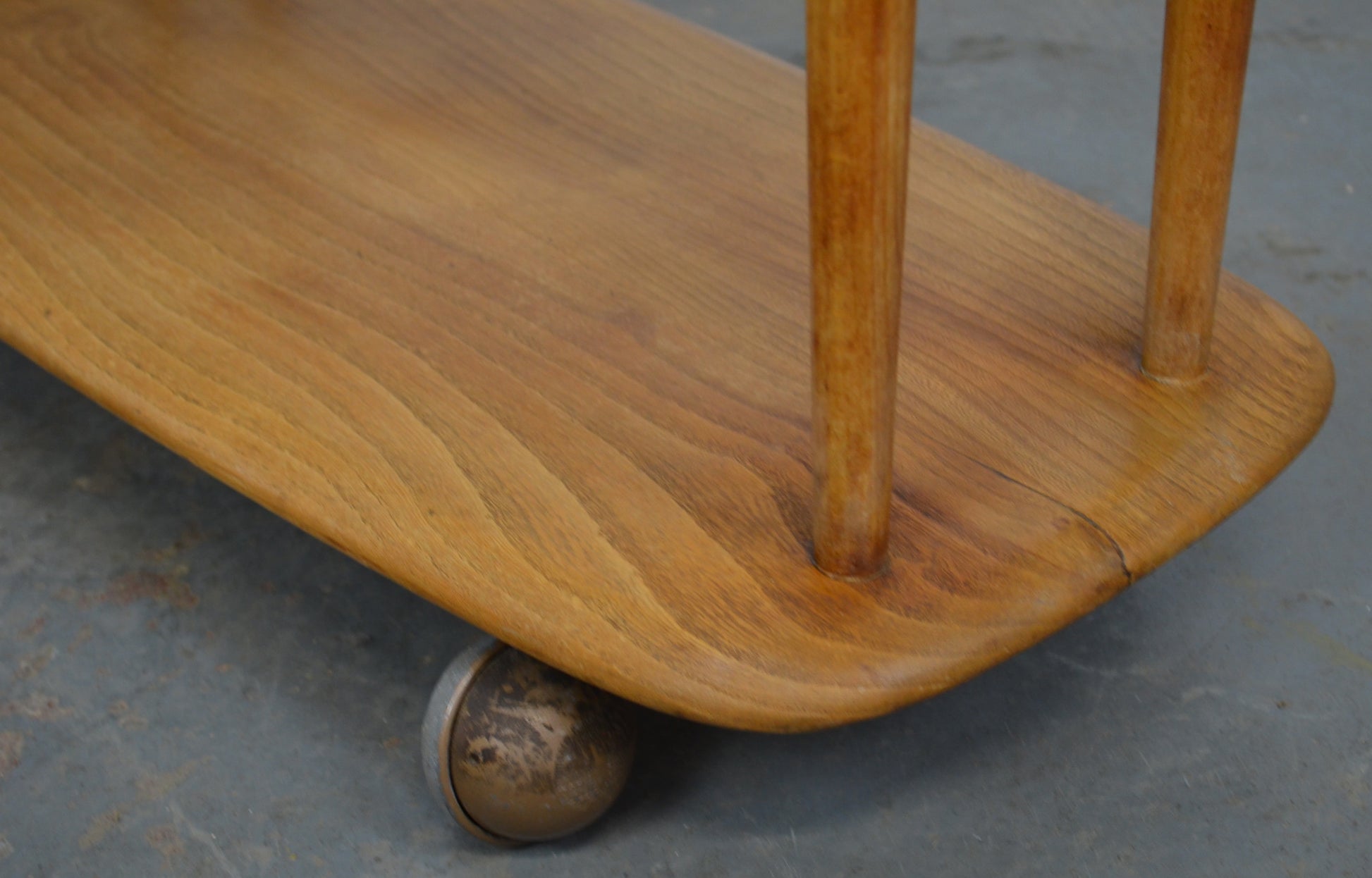 A vintage Ercol beech and elm baby giraffe three tiered bookcase or drinks/serving trolley. Strong design and functionality all quintessentially Ercol and not many of these around.