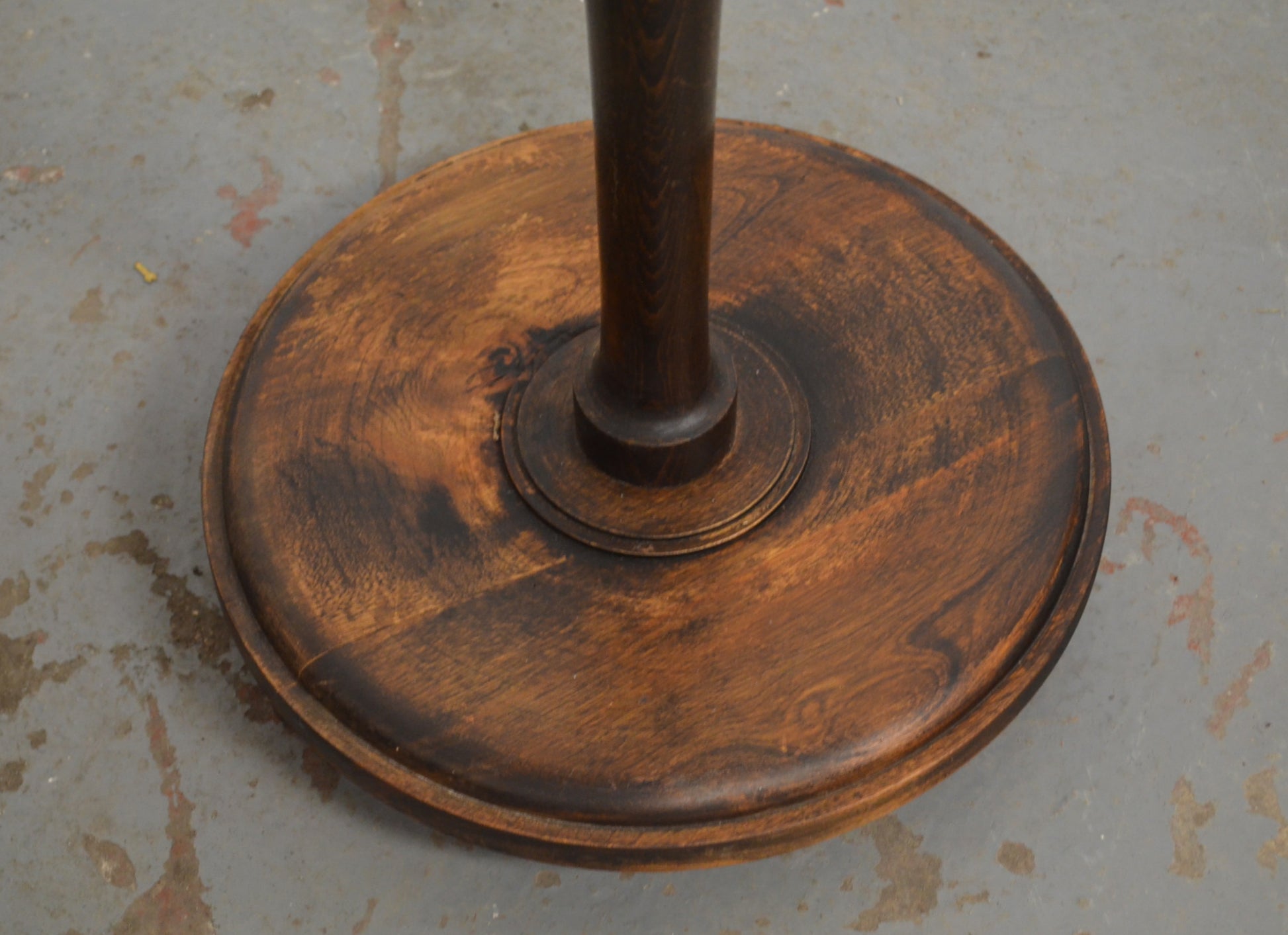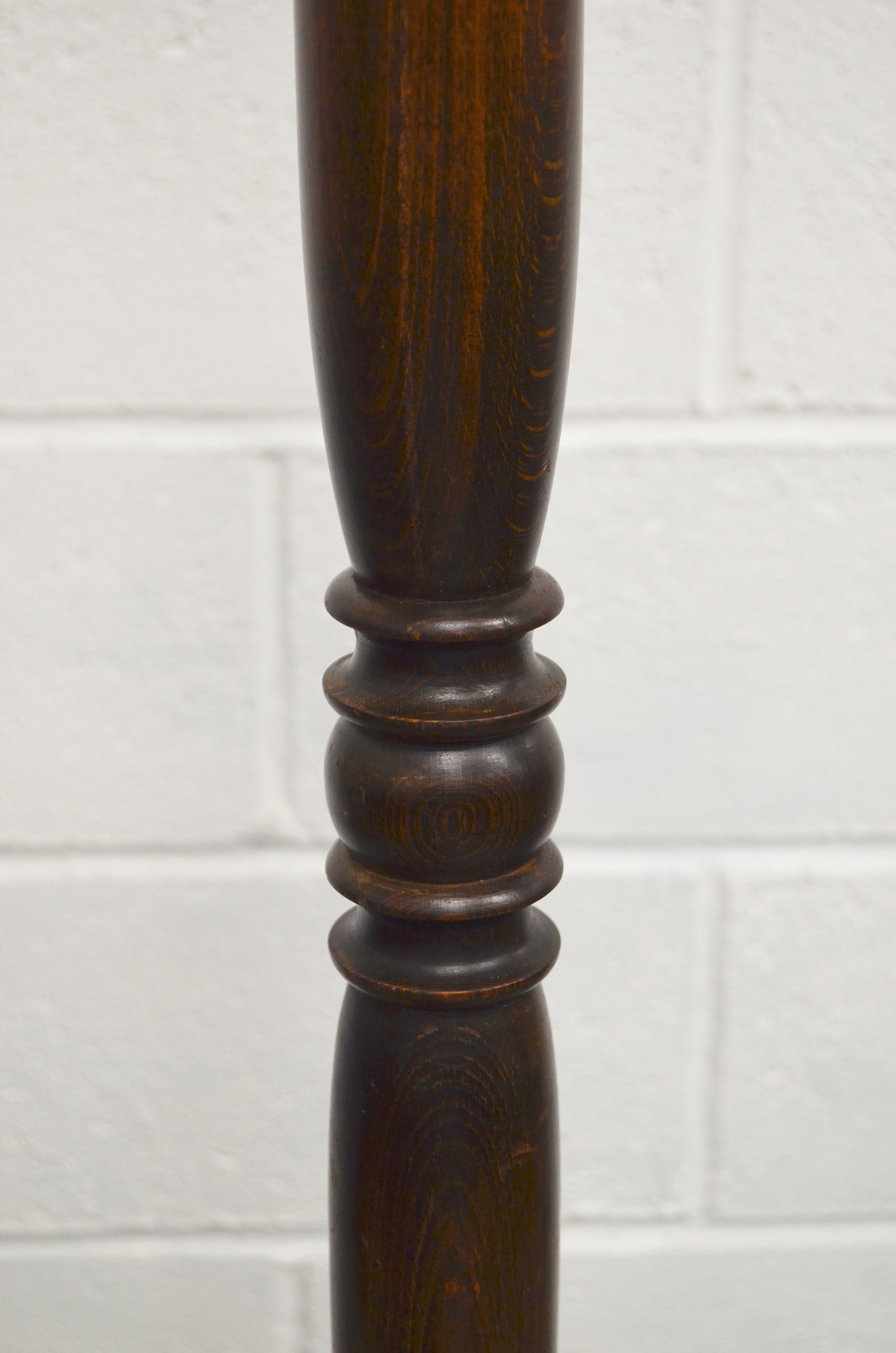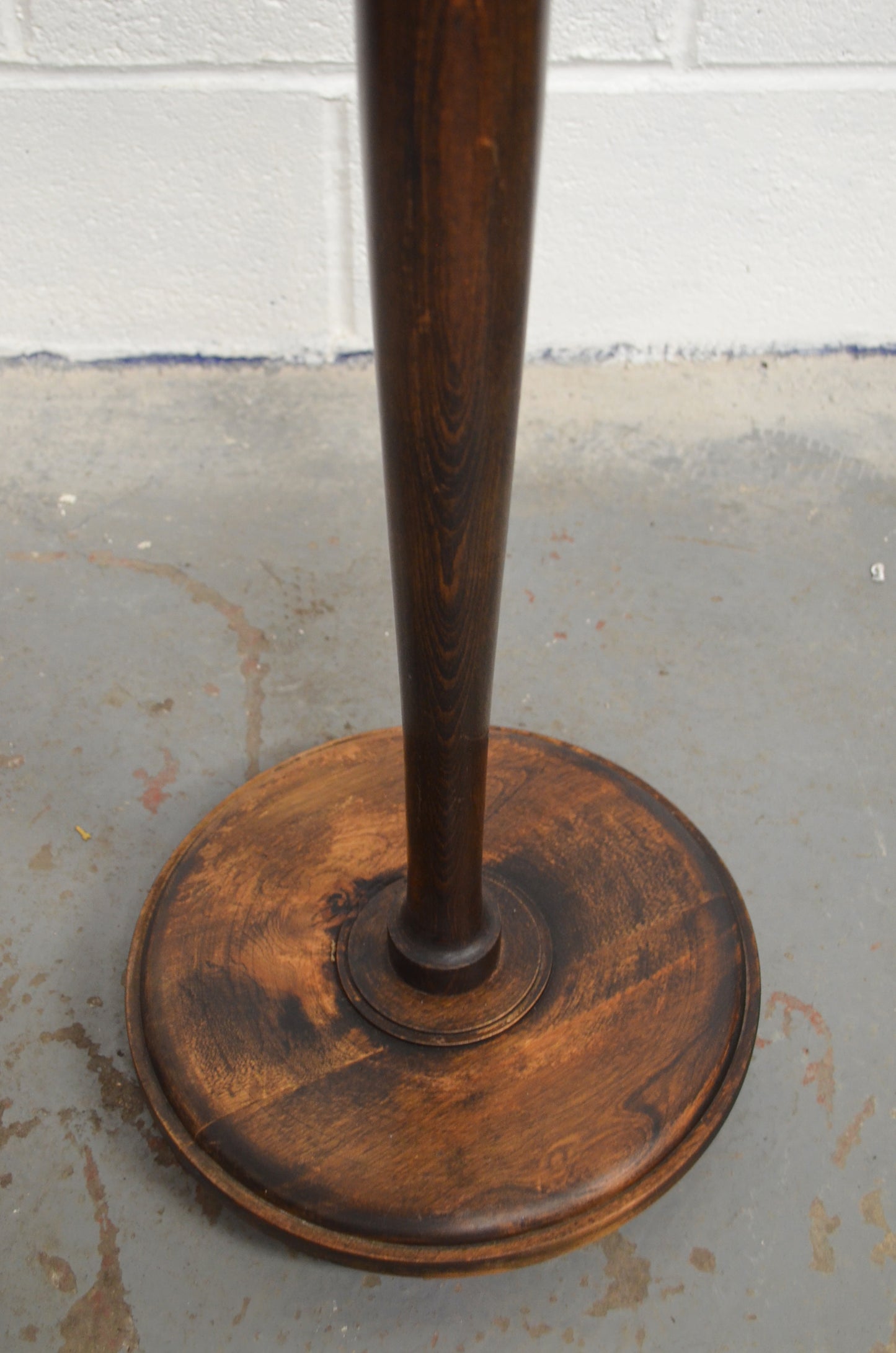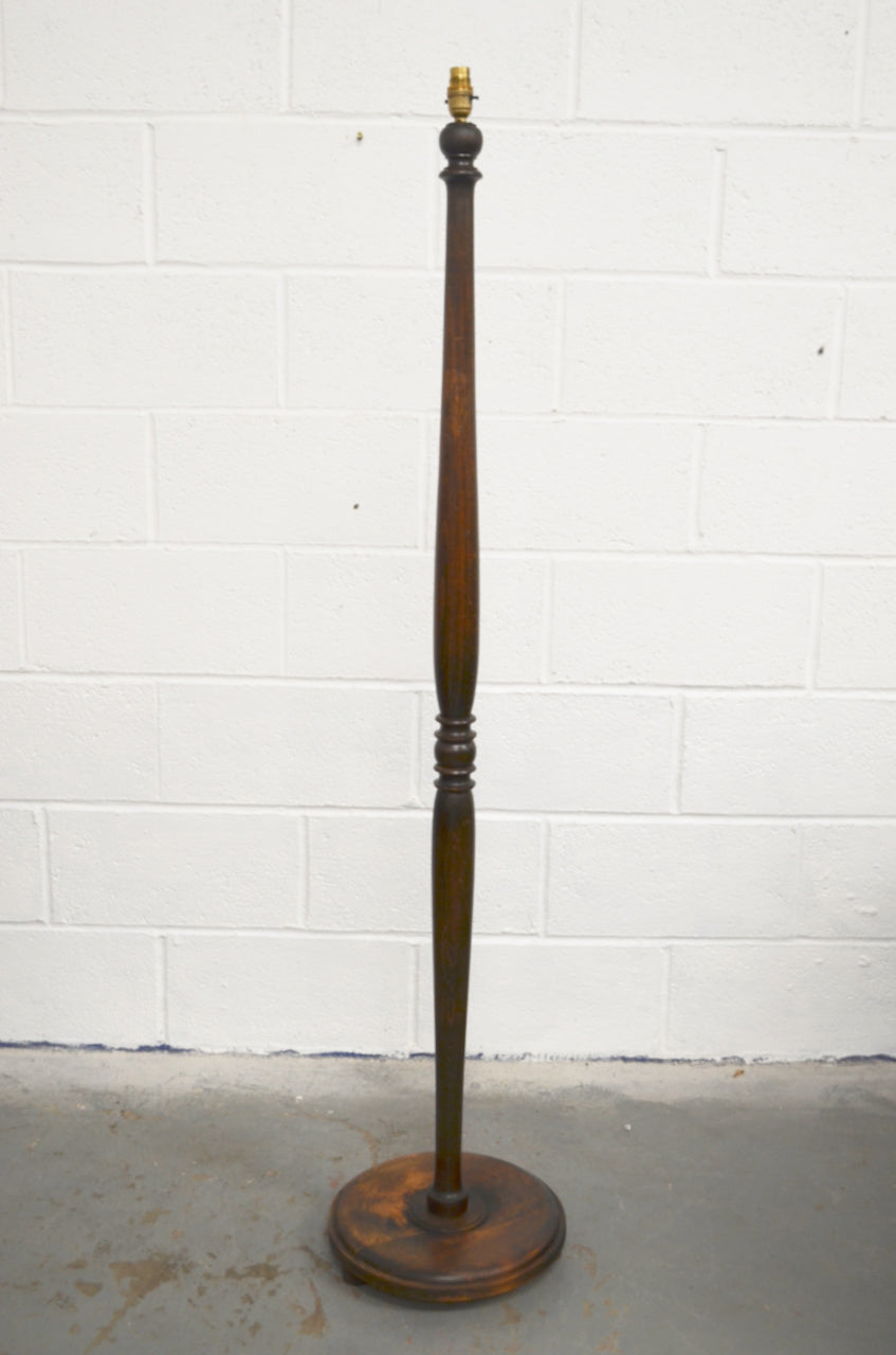 A vintage oak 20th century floor lamp with turned column, great colour and raised on a circular base.