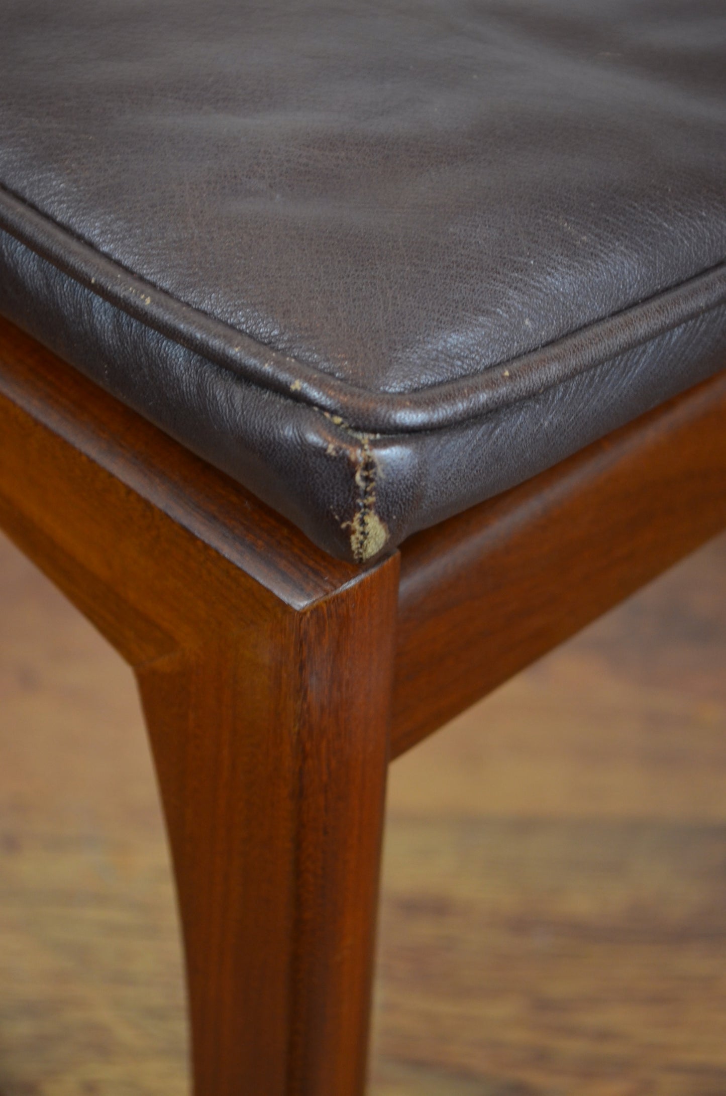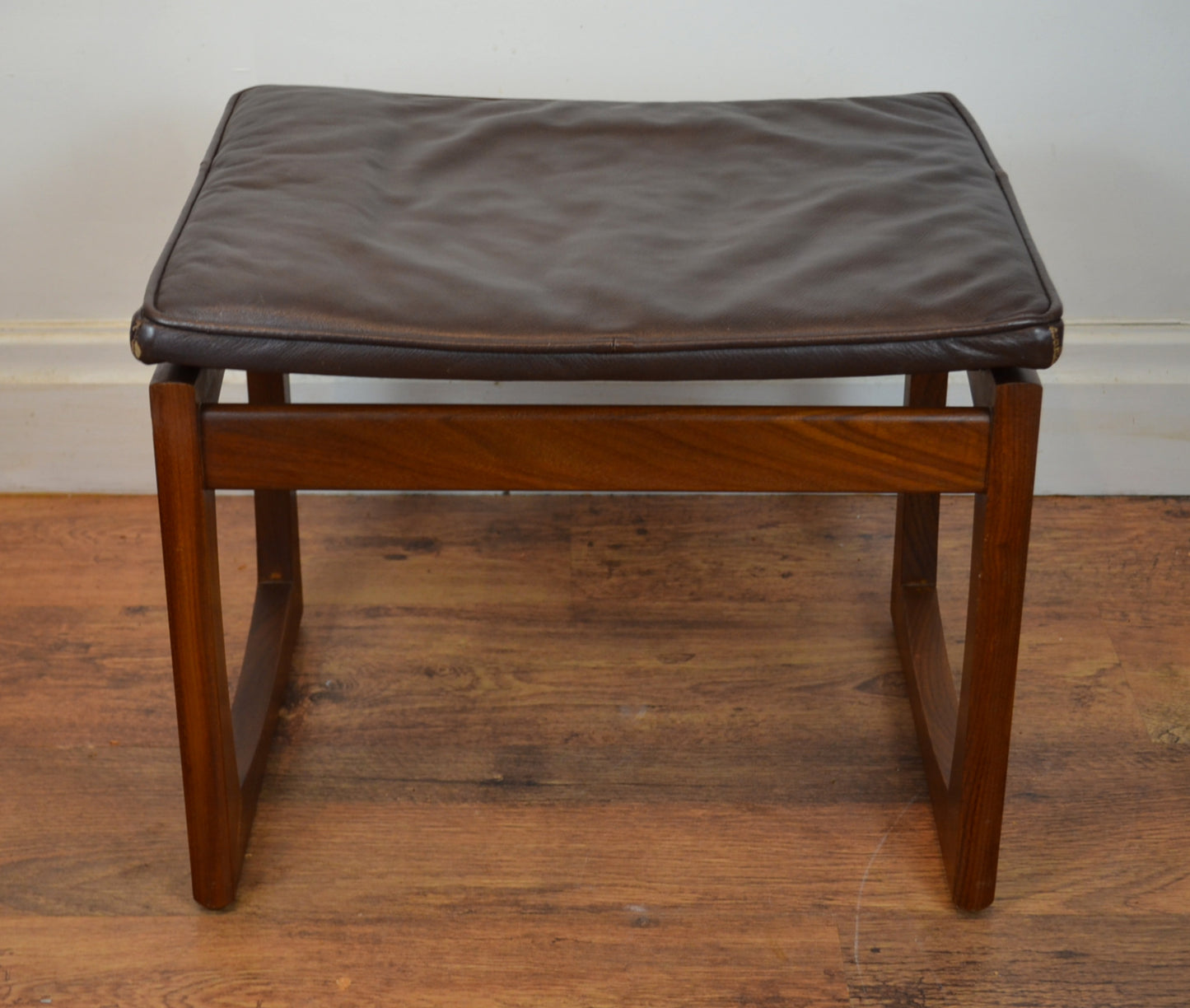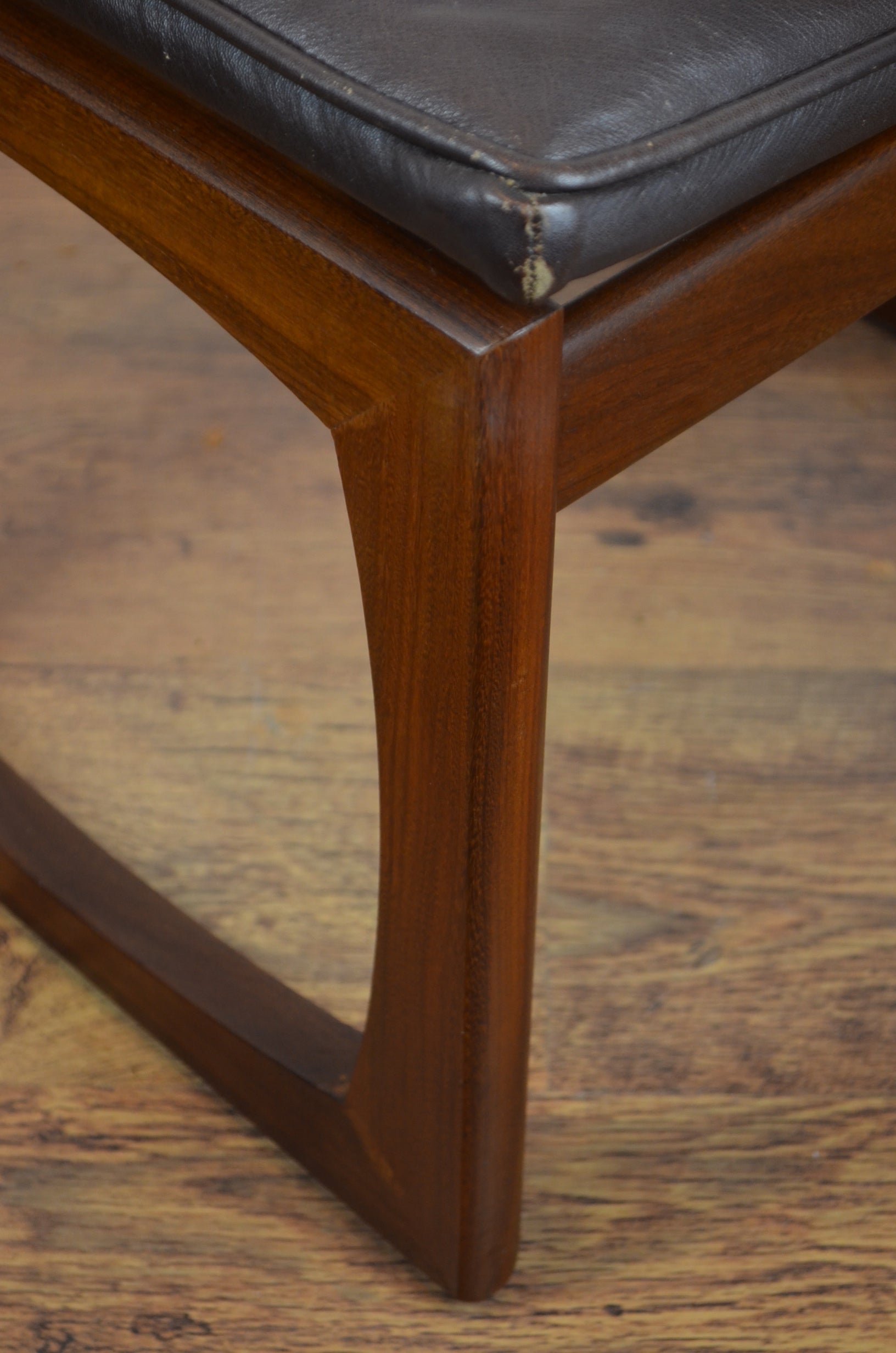 G Plan - Quadrille - A vintage mid 20th Century dark teak stool. Rectangular form with leather cushioned top on quadrille legs with stretcher supporting.