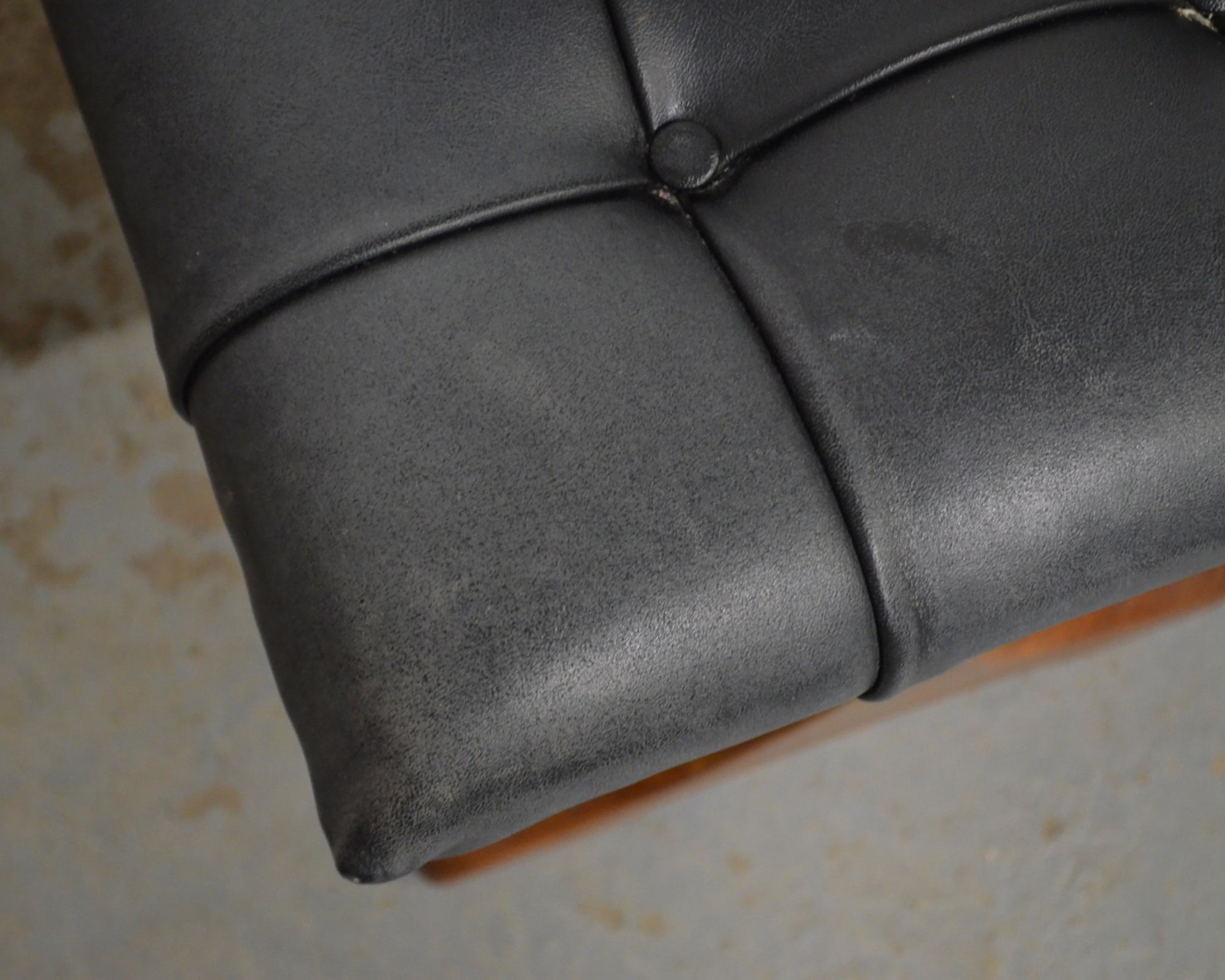 Mid Century G Plan Vintage Teak Dressing Table Stool designed by V B Wilkins comprising of a solid teak frame and black leatherette buttoned seat. Will function well as either a seating or foot stool.