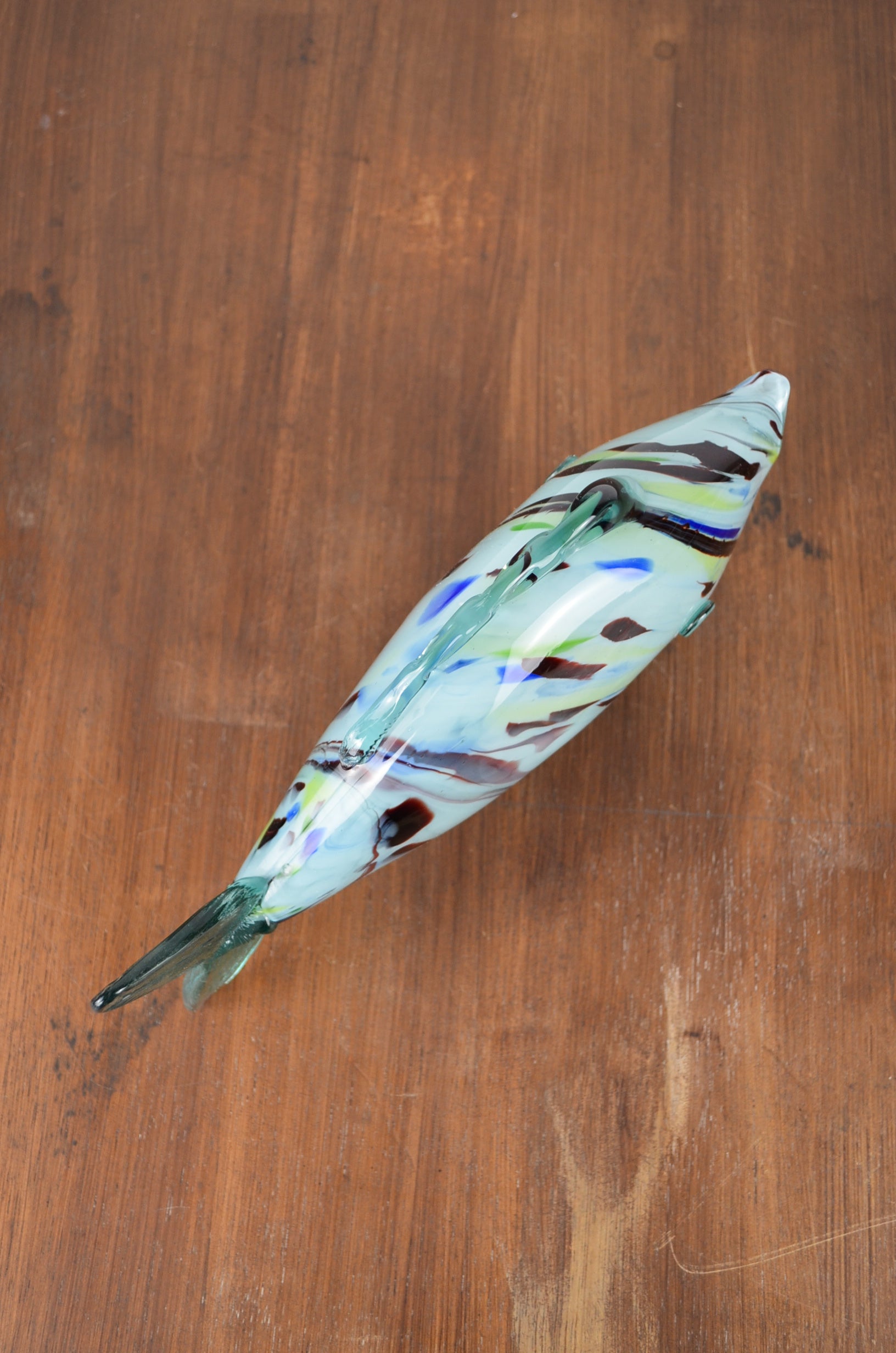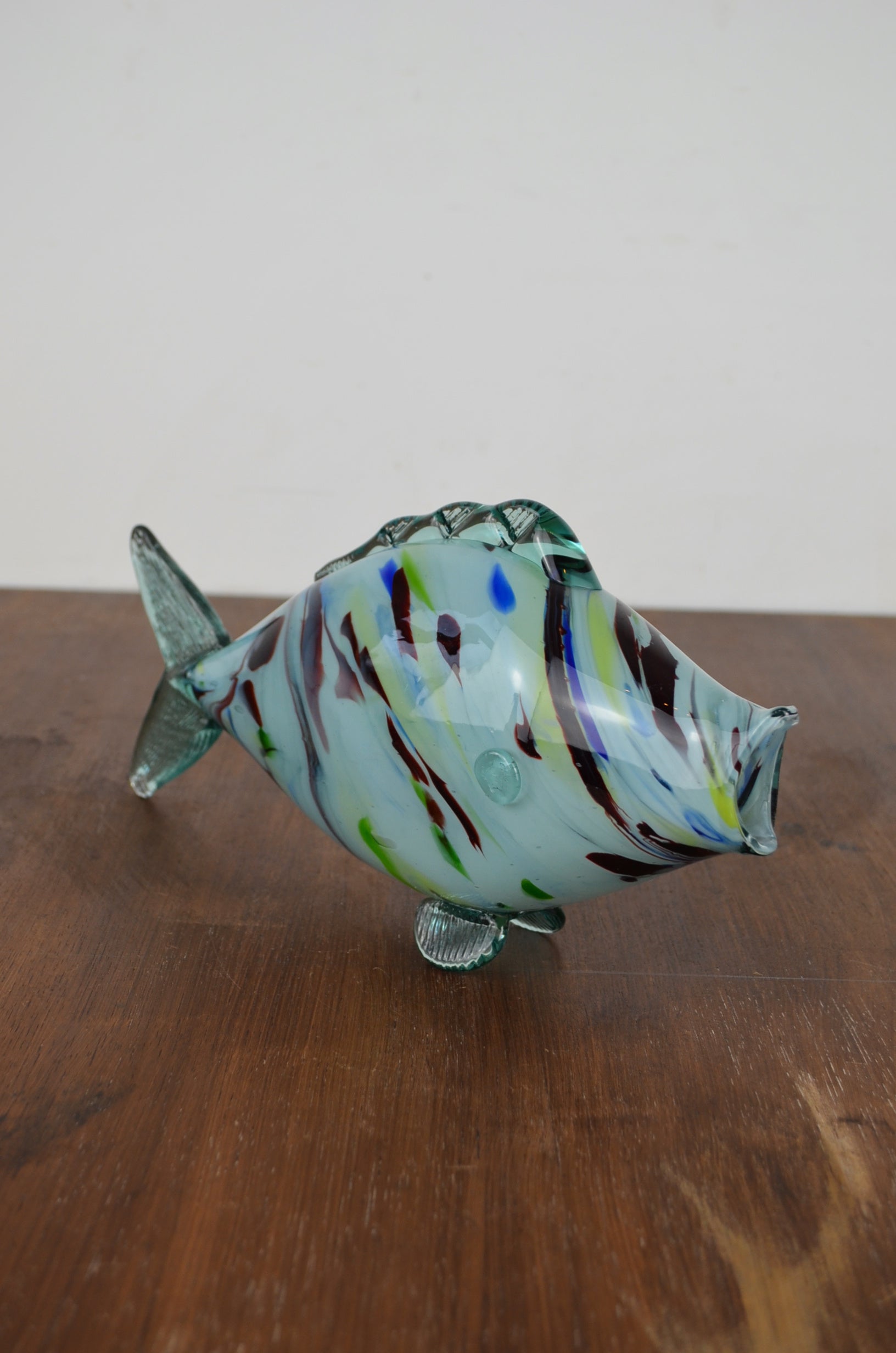 A vintage art glass, Murano end of day carp fish a quintessential piece that everyone seems to remember seeing in homes at the time. Charming features and very tactile with flowing colours and detailed fins, look great in living rooms and of course bathrooms.