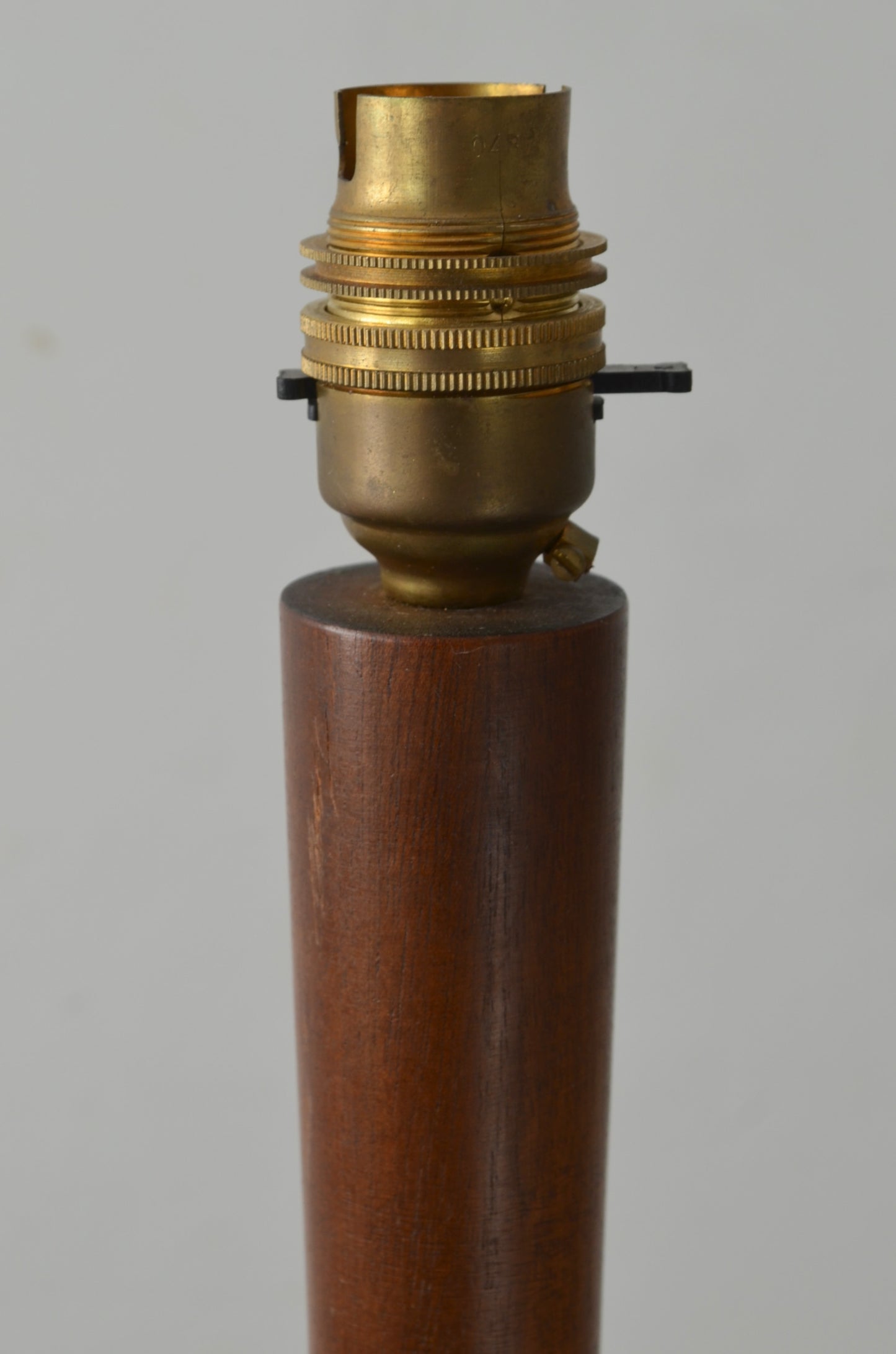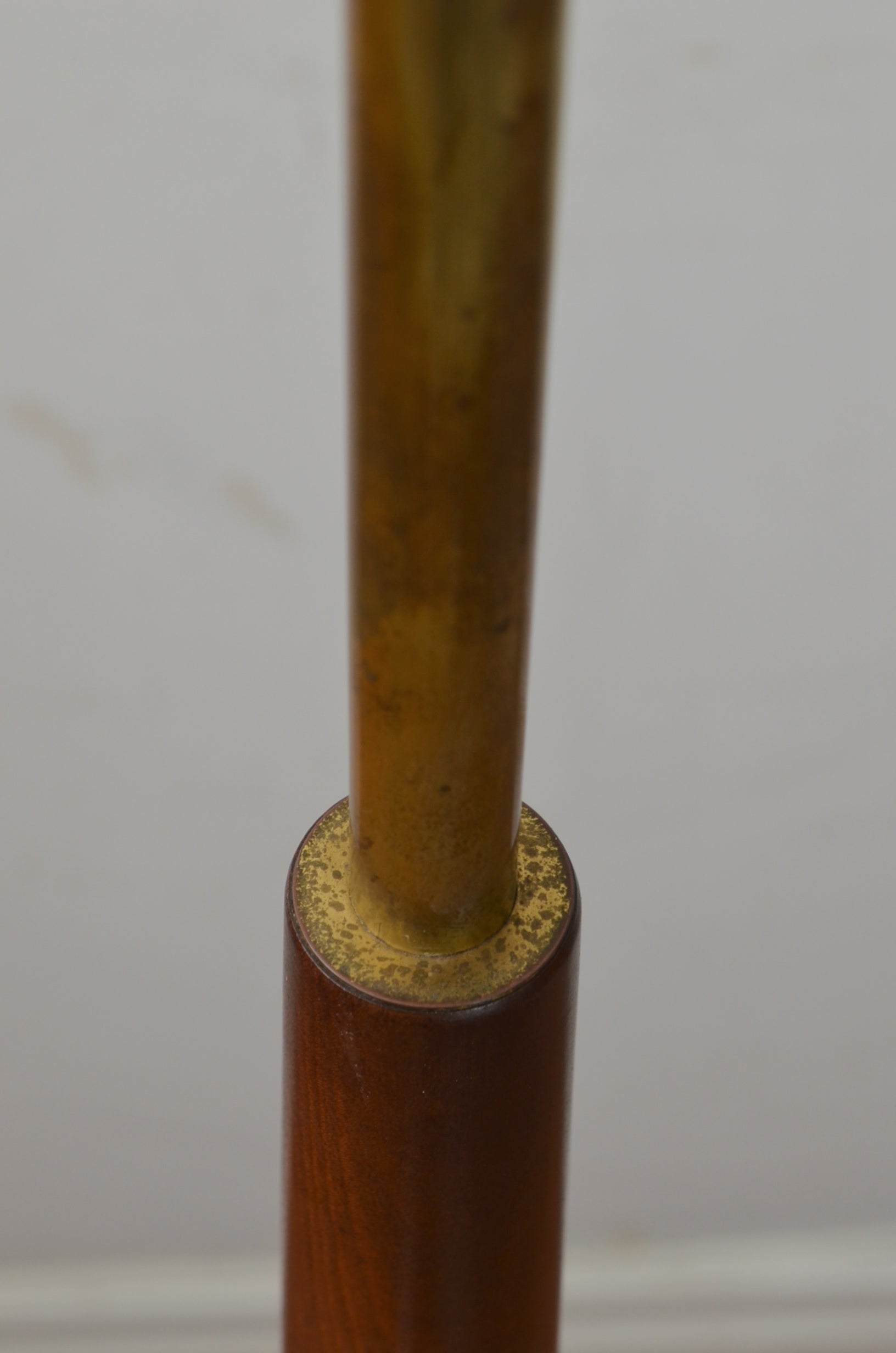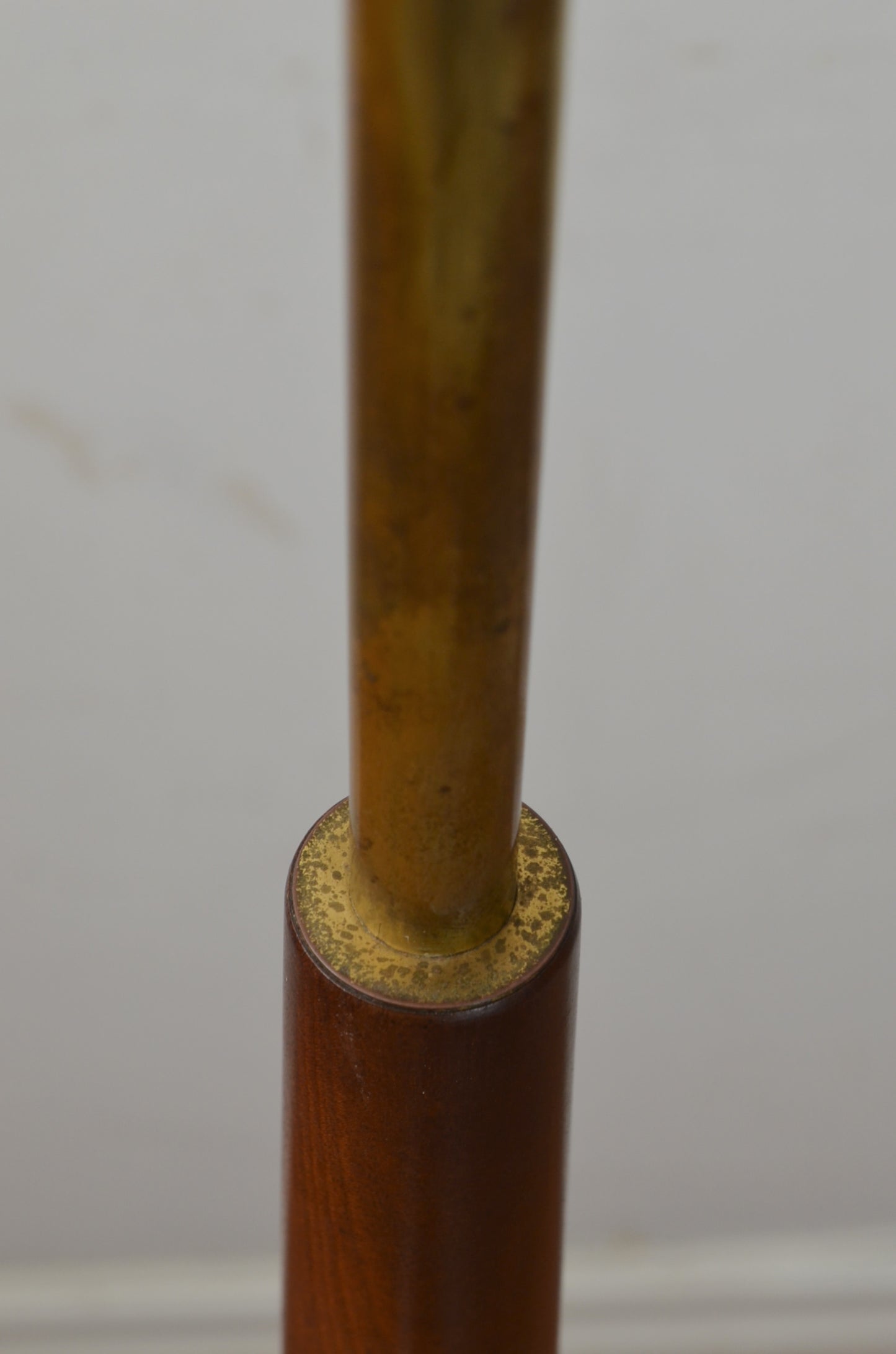 A vintage mid century teak floor lamp with graduating column consisting of teak wood and tubular metal. A taller than normal version.