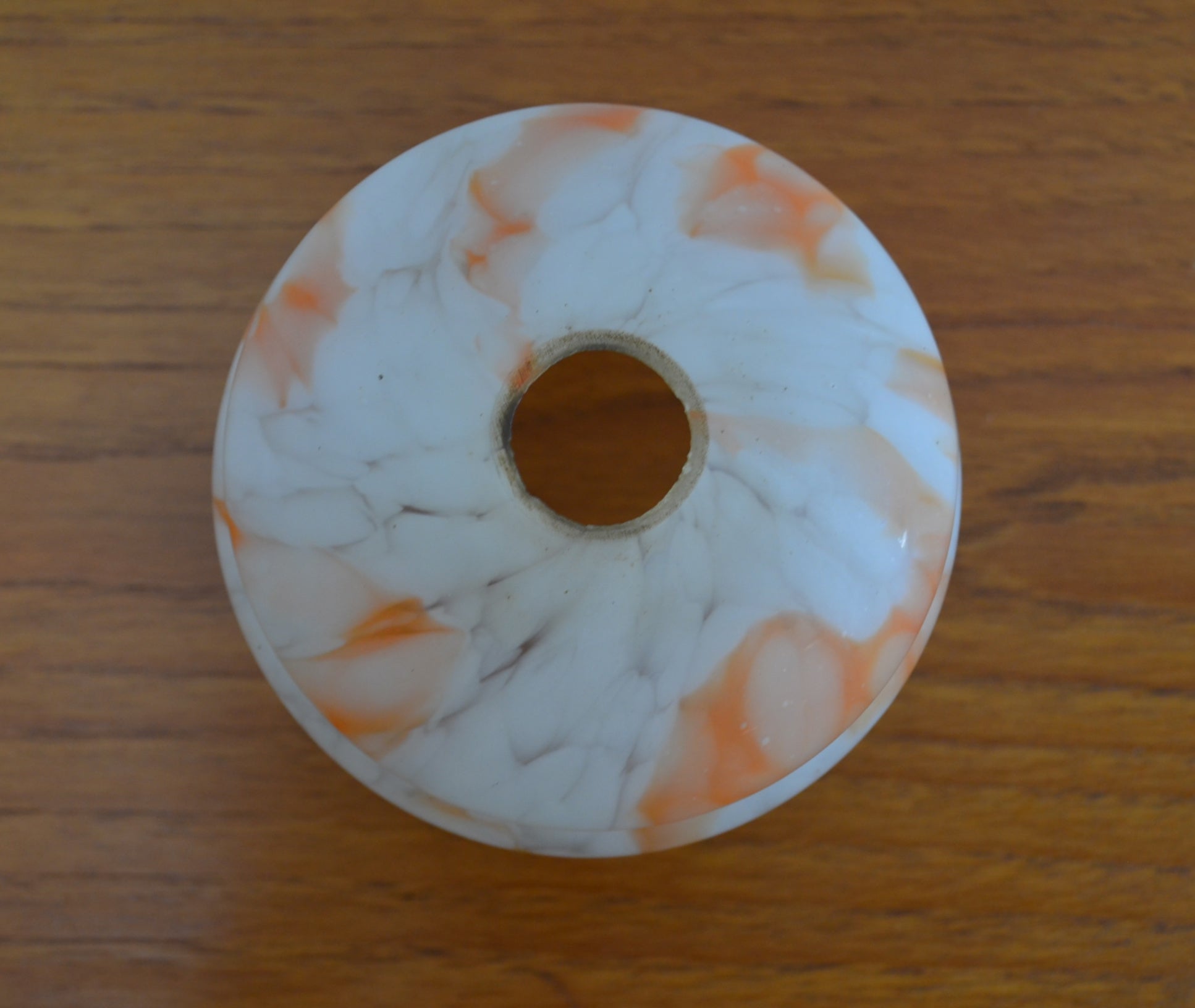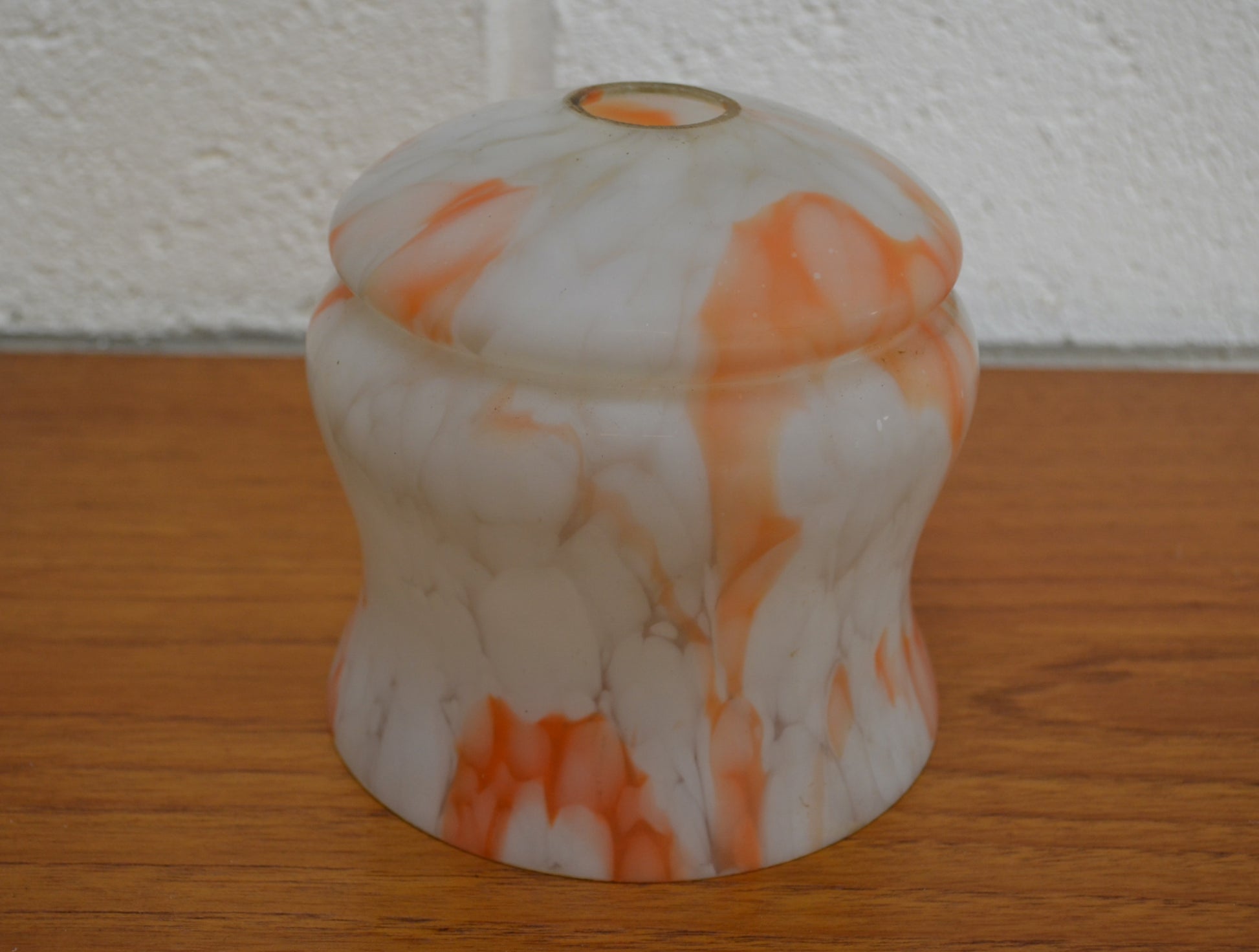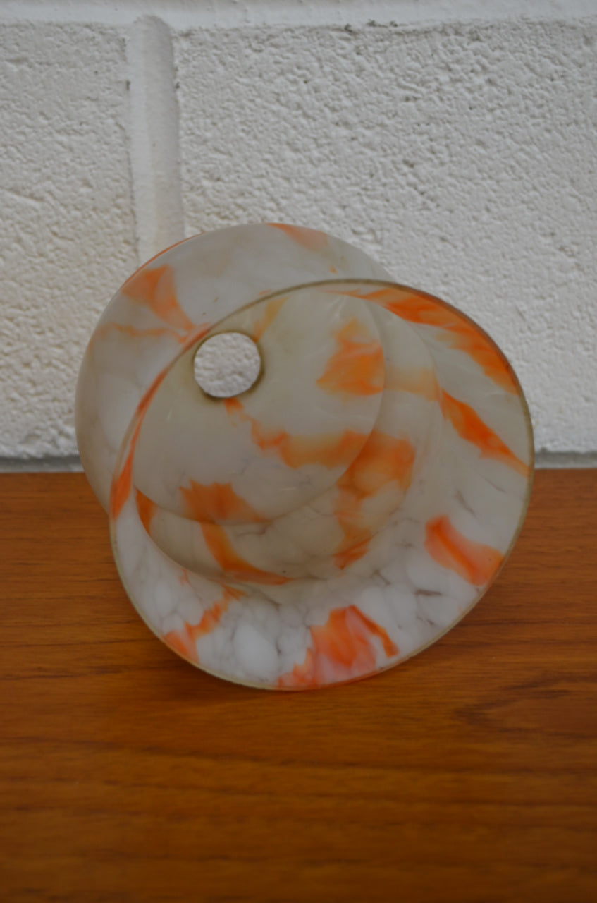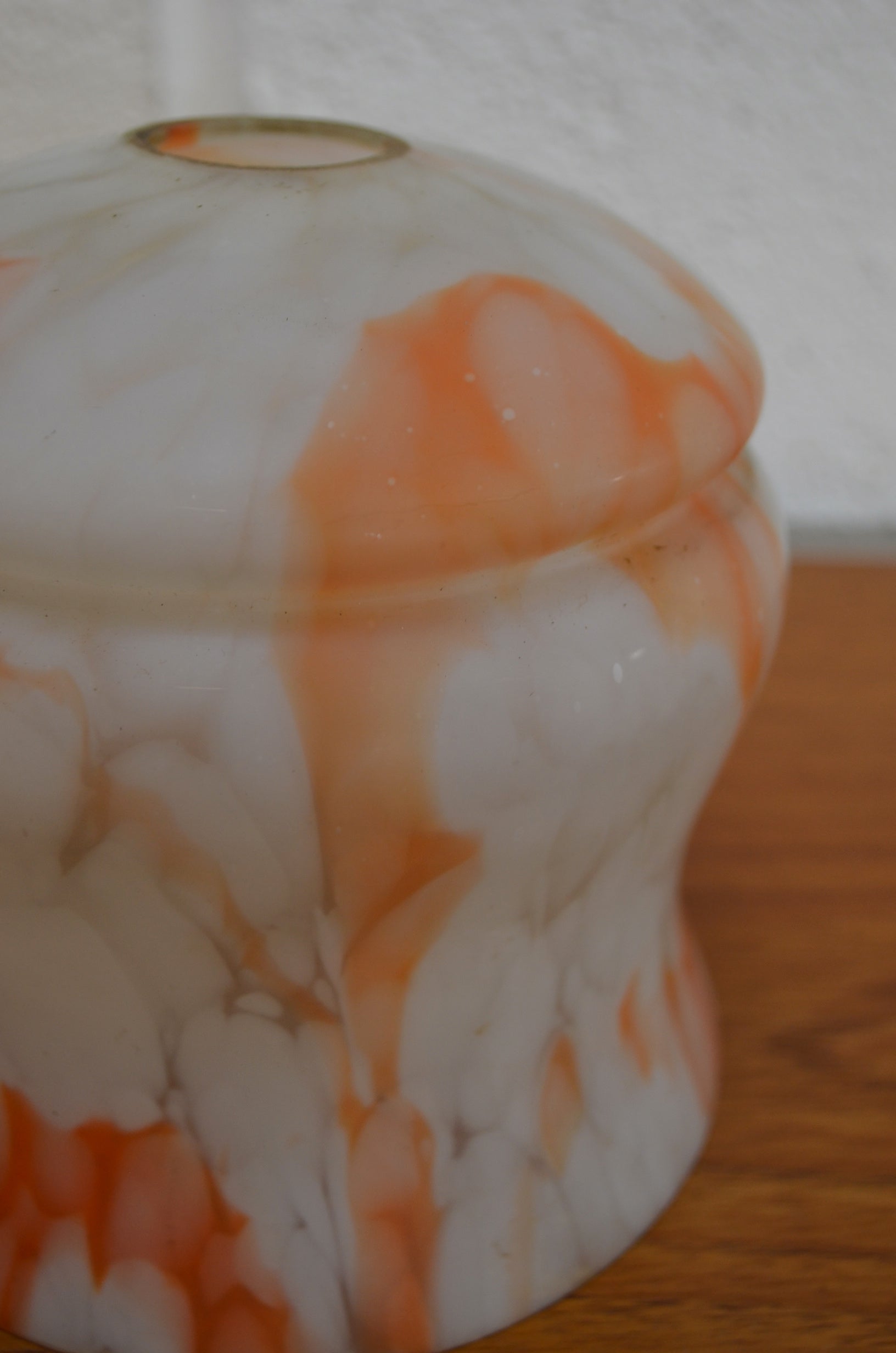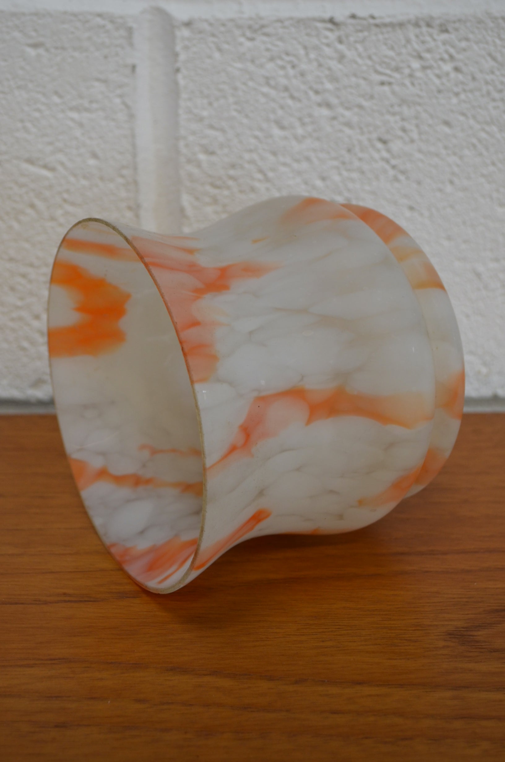A vintage glass pendant light/lamp shade with bulbous form with marbled / mottled orange effect. Priced each and for the glass pendant only but if you would like bulb holder and a gallery please send me a message to discuss.