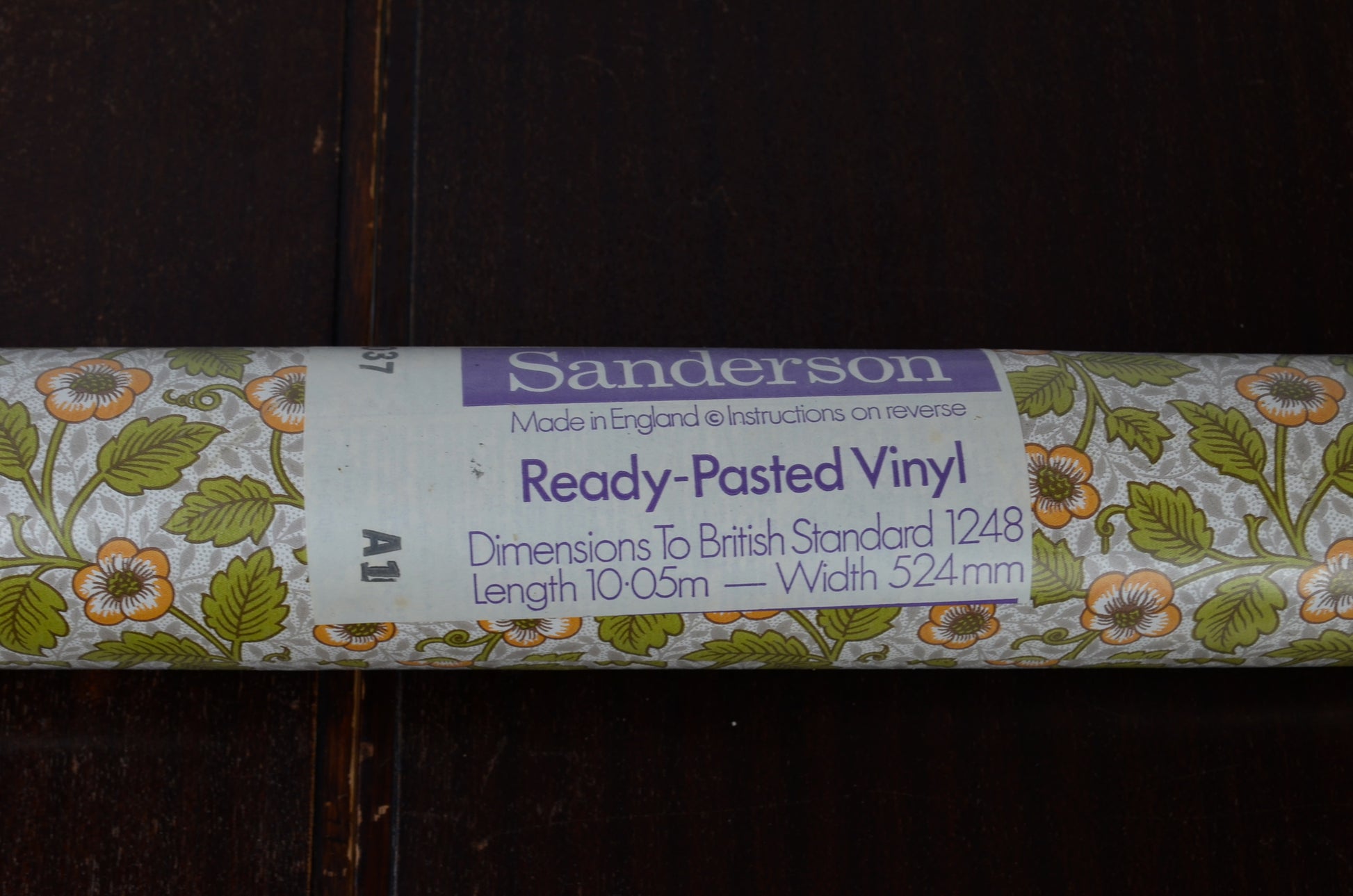 Vintage Sanderson floral vinyl wallpaper. Ready pasted version but due to age it's unlikely the pre paste will be sufficient on its own. In good condition and enclosed in original protective wrapping.