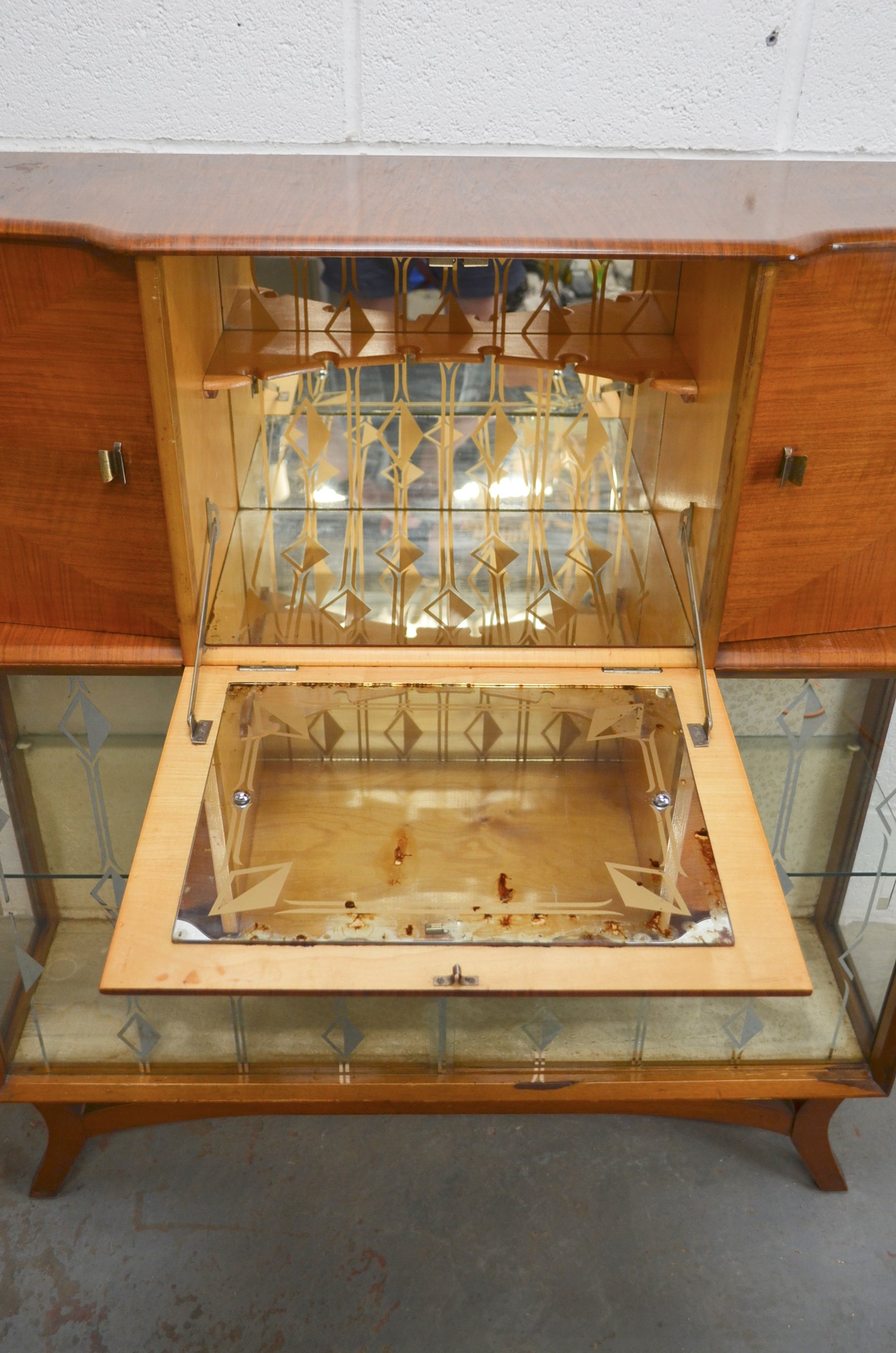 There will be a modern internal lamp fitted to the inside which is rechargeable and movement activated. Most drinks cabinets of the time had a light but they were mains powered and so this is a much better and safer option today.